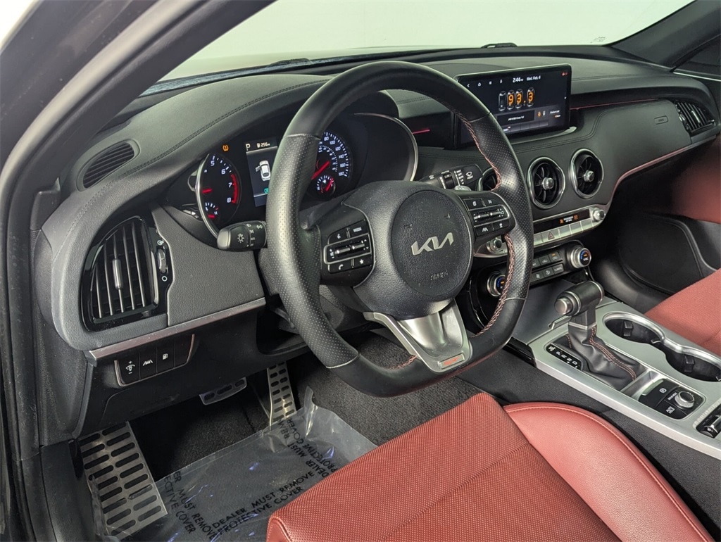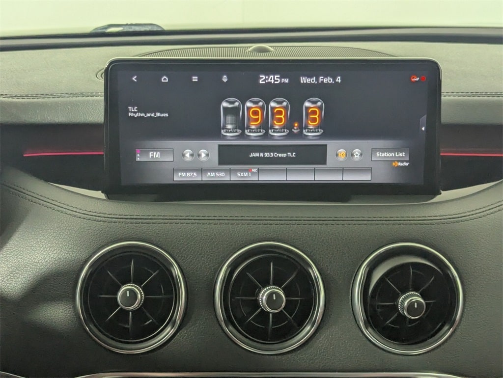 2022 Kia Stinger GT1 Beautifully finished in Panthera Metal with Black Leather interior. 3.3L V6 DGI 4D Sedan AWD 8-Speed Automatic 4-Wheel Disc Brakes, 9 Speakers, ABS brakes, Air Conditioning, Alloy wheels, AM/FM radio: SiriusXM, Anti-whiplash front head restraints, Apple CarPlay & Android Auto, Auto High-beam Headlights, Auto-dimming Rear-View mirror, Automatic temperature control, Brake assist, Bumpers: body-color, Delay-off headlights, Driver door bin, Driver vanity mirror, Dual front impact airbags, Dual front side impact airbags, Electronic Stability Control, Emergency communication system: UVO eServices, Exterior Parking Camera Rear, Four wheel independent suspension, Front anti-roll bar, Front Bucket Seats, Front Center Armrest, Front dual zone A/C, Front reading lights, Fully automatic headlights, harman/kardon® Speakers, Heated door mirrors, Heated Front Bucket Seats, Heated front seats, Heated steering wheel, Illuminated entry, Knee airbag, Leather Seat Trim, Low tire pressure warning, Navigation System, Occupant sensing airbag, Outside temperature display, Overhead airbag, Overhead console, Panic alarm, Passenger door bin, Passenger vanity mirror, Power door mirrors, Power driver seat, Power moonroof, Power passenger seat, Power steering, Power windows, Radio: AM/FM/HD Audio System, Rain sensing wipers, Rear air conditioning, Rear anti-roll bar, Rear reading lights, Rear seat center armrest, Rear window defroster, Red Interior Color Package, Remote keyless entry, Security system, Smart Key w/ Push Button and Remote Start, Speed control, Speed-sensing steering, Speed-Sensitive Wipers, Split folding rear seat, Sport steering wheel, Steering wheel mounted audio controls, Tachometer, Telescoping steering wheel, Tilt steering wheel, Traction control, Trip computer, Turn signal indicator mirrors, Variably intermittent wipers, Wheels: 8.0J x 19 Front/8.5J x 19 Rear Alloy. CARFAX One-Owner. Clean CARFAX. Priced below KBB Fair Purchase Price!