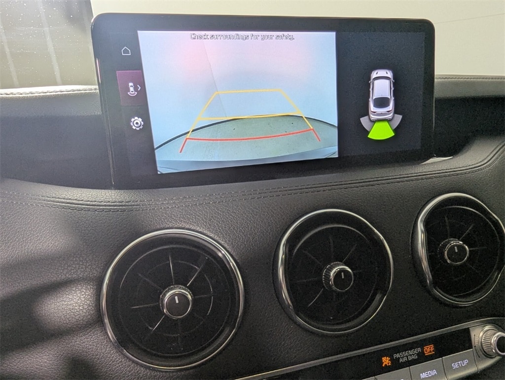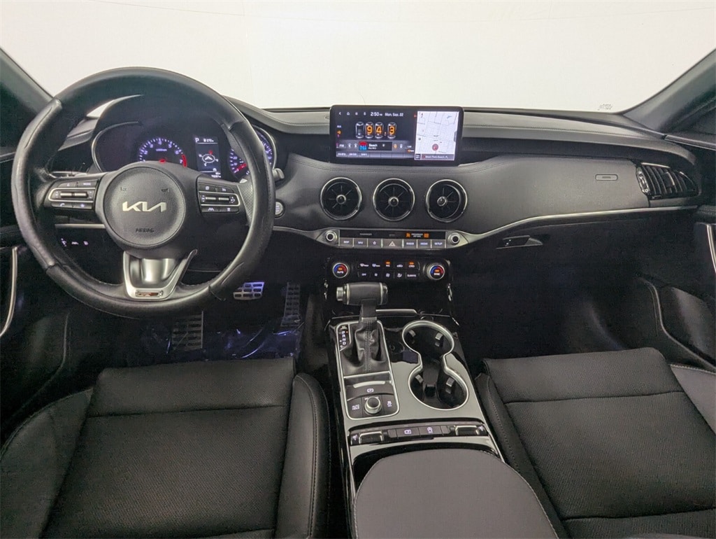 2022 Kia Stinger GT-Line Beautifully finished in Panthera Metal with Black Leather interior. I4 4D Sedan RWD 8-Speed Automatic 4-Wheel Disc Brakes, 9 Speakers, ABS brakes, Air Conditioning, Alloy wheels, AM/FM radio: SiriusXM, Anti-whiplash front head restraints, Apple CarPlay & Android Auto, Auto High-beam Headlights, Auto-dimming Rear-View mirror, Automatic temperature control, Brake assist, Bumpers: body-color, Delay-off headlights, Driver door bin, Driver vanity mirror, Dual front impact airbags, Dual front side impact airbags, Electronic Stability Control, Emergency communication system: UVO eServices, Exterior Parking Camera Rear, Four wheel independent suspension, Front anti-roll bar, Front Bucket Seats, Front Center Armrest, Front dual zone A/C, Front reading lights, Fully automatic headlights, Heated door mirrors, Heated Front Bucket Seats, Heated front seats, Illuminated entry, Knee airbag, Leather Seat Trim, Low tire pressure warning, Navigation System, Occupant sensing airbag, Outside temperature display, Overhead airbag, Overhead console, Panic alarm, Passenger door bin, Passenger vanity mirror, Power door mirrors, Power driver seat, Power steering, Power windows, Radio: AM/FM/HD Audio System, Rain sensing wipers, Rear air conditioning, Rear anti-roll bar, Rear seat center armrest, Rear window defroster, Remote keyless entry, Security system, Smart Key w/ Push Button and Remote Start, Speed control, Speed-Sensitive Wipers, Split folding rear seat, Sport steering wheel, Steering wheel mounted audio controls, Tachometer, Telescoping steering wheel, Tilt steering wheel, Traction control, Trip computer, Turn signal indicator mirrors, Variably intermittent wipers, Wheels: 8.0J x 18 Alloy. CARFAX One-Owner. Clean CARFAX. Priced below KBB Fair Purchase Price! 22/32 City/Highway MPG