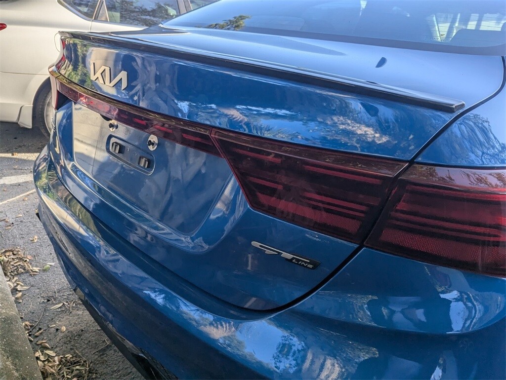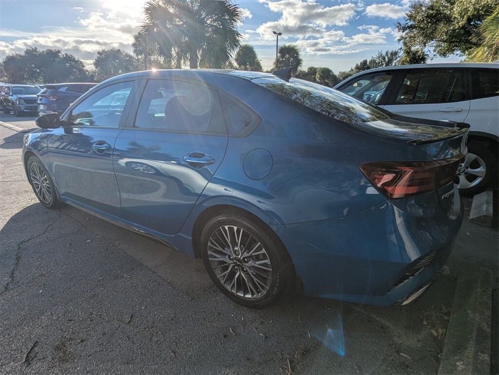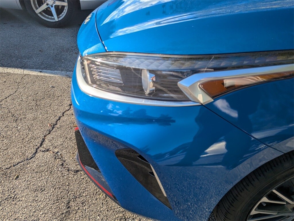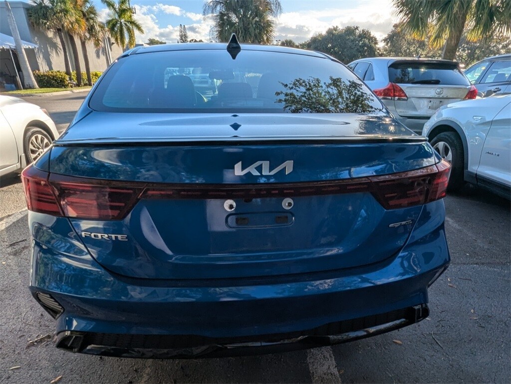 2023 Kia Forte GT-Line Beautifully finished in Sporty Blue with Black Cloth interior. 2.0L I4 MPI 4D Sedan FWD CVT 10-Way Power Driver's Seat, 17" x 7.0J Alloy Wheels, 4-Wheel Disc Brakes, 6 Speakers, ABS brakes, Air Conditioning, Alloy wheels, AM/FM radio: SiriusXM, Apple CarPlay & Android Auto, Auto High-beam Headlights, Automatic temperature control, Brake assist, Bumpers: body-color, Carpet Floor Mats, Cloth & SynTex Seat Trim, Delay-off headlights, Driver door bin, Driver vanity mirror, Dual front impact airbags, Dual front side impact airbags, Electronic Parking Brake (EPB), Electronic Stability Control, Emergency communication system, Exterior Parking Camera Rear, Forward Collision Avoidance-Assist - Cyclist, Front anti-roll bar, Front Bucket Seats, Front Center Armrest, Front dual zone A/C, Front fog lights, Front reading lights, Front wheel independent suspension, Fully automatic headlights, GT-Line Premium Package, GT-Line Sport Premium Package, Heated & Ventilated Front Seats, Heated door mirrors, Illuminated entry, Leather Shift Knob, Leather steering wheel, LED Interior Lighting, Low tire pressure warning, Navigation System, Navigation-Based Smart Cruise Control (NSCC), Occupant sensing airbag, Outside temperature display, Overhead airbag, Overhead console, Panic alarm, Passenger door bin, Passenger vanity mirror, Power door mirrors, Power steering, Power Sunroof, Power windows, Radio data system, Radio: 10.25" Display Audio, Radio: harman kardon Premium Audio, Rear AC Vent, Rear seat center armrest, Rear USB Charger, Rear window defroster, Remote keyless entry, Security system, Smart Cruise Control w/Stop & Go, Speed control, Split folding rear seat, Spoiler, Sport steering wheel, Steering wheel mounted audio controls, SynTex Seat Trim, Tachometer, Telescoping steering wheel, Tilt steering wheel, Traction control, Trip computer, Turn signal indicator mirrors, Variably intermittent wipers, Wireless Charging. 28/39 City/Highway MPG