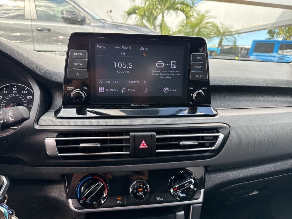 This Seltos is well equipped with 4-Wheel Disc Brakes, 6 Speakers, 6.052 Axle Ratio, ABS brakes, Air Conditioning, Alloy wheels, AM/FM radio, Apple CarPlay & Android Auto, Auto High-beam Headlights, Brake assist, Bumpers: body-color, Cargo Net (Floor), Carpet Floor Mats, Carpeted Seatback Up Mat, Cloth Seat Trim, Delay-off headlights, Driver door bin, Driver vanity mirror, Dual front impact airbags, Dual front side impact airbags, Electronic Stability Control, Exterior Parking Camera Rear, Four wheel independent suspension, Front anti-roll bar, Front Bucket Seats, Front Center Armrest, Front reading lights, Fully automatic headlights, Illuminated entry, Low tire pressure warning, Occupant sensing airbag, Outside temperature display, Overhead airbag, Overhead console, Panic alarm, Passenger door bin, Passenger vanity mirror, Power door mirrors, Power steering, Power windows, Radio: AM/FM/MP3 Display Audio, Rear window defroster, Rear window wiper, Remote keyless entry, Security system, Speed control, Speed-sensing steering, Split folding rear seat, Spoiler, Steering wheel mounted audio controls, Tachometer, Telescoping steering wheel, Tilt steering wheel, Traction control, Trip computer, Variably intermittent wipers, and Wheels: 17" Alloy w/Dark Gray Finish.