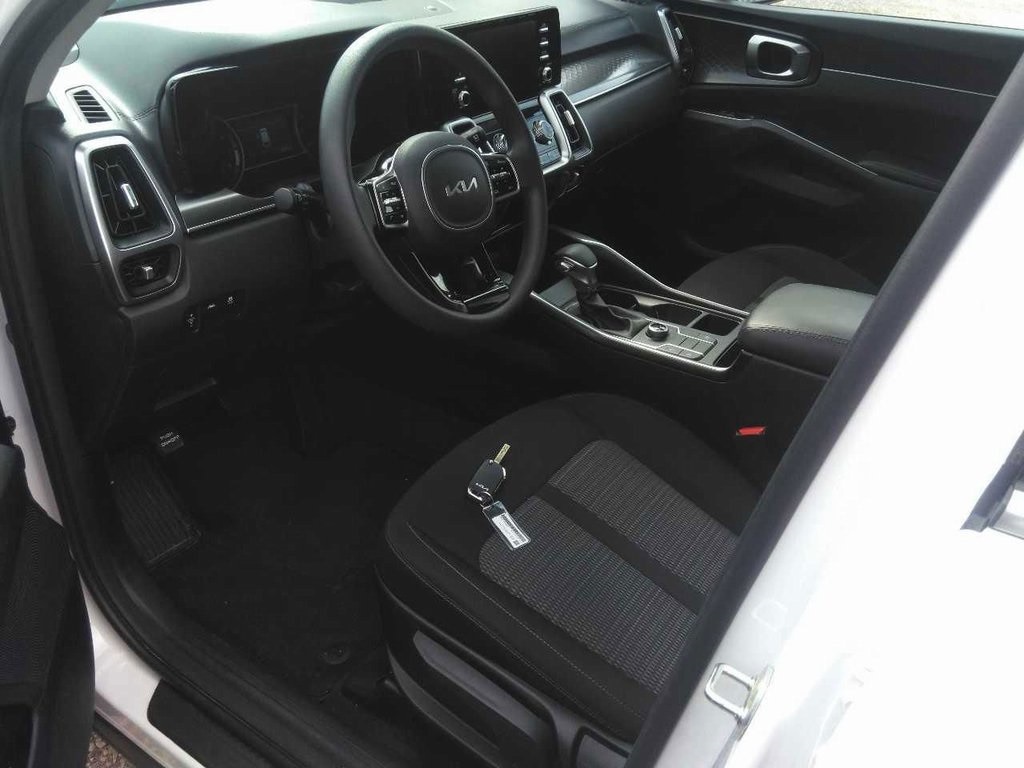 This Sorento is well equipped with AWD, 3rd row seats: split-bench, 4-Wheel Disc Brakes, 4.081 Axle Ratio, 6 Speakers, 7.0J x 17" Alloy Wheels, ABS brakes, Air Conditioning, Alloy wheels, AM/FM radio, Apple CarPlay & Android Auto, Auto High-beam Headlights, Brake assist, Bumpers: body-color, Cloth Seat Trim, Delay-off headlights, Driver door bin, Driver vanity mirror, Dual front impact airbags, Dual front side impact airbags, Electronic Stability Control, Exterior Parking Camera Rear, Four wheel independent suspension, Front anti-roll bar, Front Bucket Seats, Front Center Armrest, Front reading lights, Fully automatic headlights, Heated door mirrors, Illuminated entry, Knee airbag, Low tire pressure warning, Occupant sensing airbag, Outside temperature display, Overhead airbag, Overhead console, Panic alarm, Passenger door bin, Passenger vanity mirror, Power door mirrors, Power steering, Power windows, Radio data system, Radio: AM/FM Audio System, Rear anti-roll bar, Rear reading lights, Rear seat center armrest, Rear window defroster, Rear window wiper, Remote keyless entry, Security system, Speed control, Speed-sensing steering, Split folding rear seat, Spoiler, Steering wheel mounted audio controls, Tachometer, Telescoping steering wheel, Tilt steering wheel, Traction control, Trip computer, Turn signal indicator mirrors, and Variably intermittent wipers.