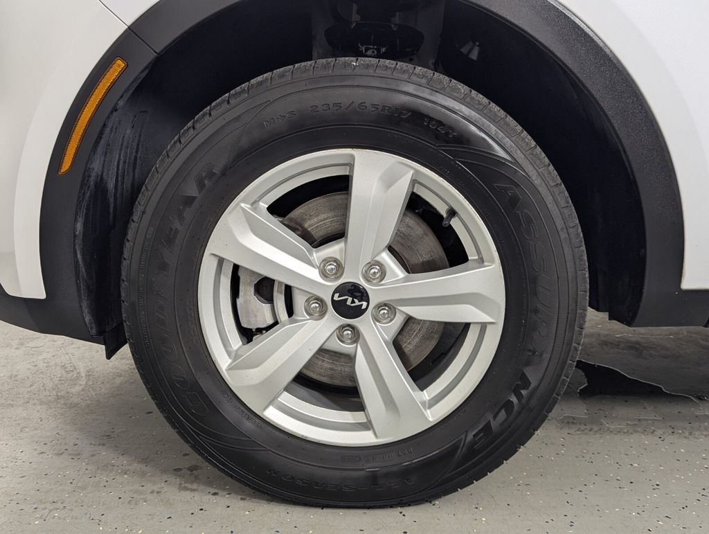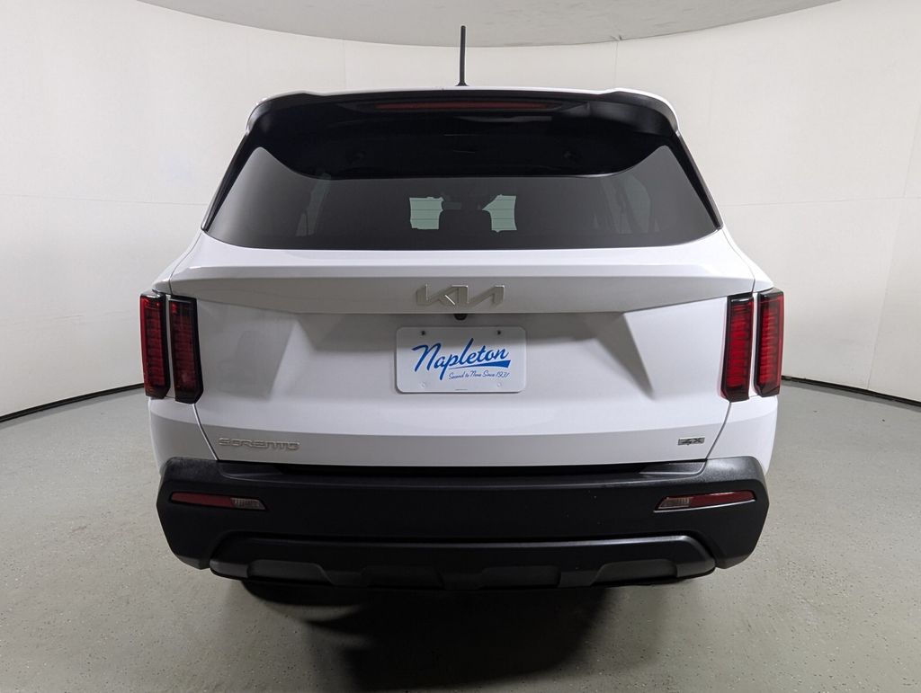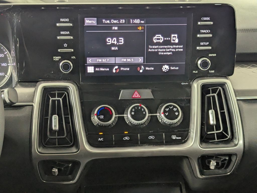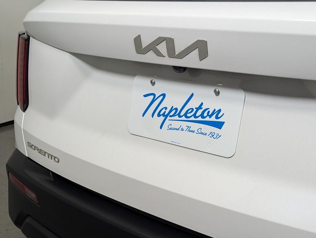 This Sorento is well equipped with AWD, Apple CarPlay & Android Auto, 3rd row seats: split-bench, 4-Wheel Disc Brakes, 4.081 Axle Ratio, 6 Speakers, 7.0J x 17" Alloy Wheels, ABS brakes, Air Conditioning, Alloy wheels, AM/FM radio, Auto High-beam Headlights, Brake assist, Bumpers: body-color, Cloth Seat Trim, Delay-off headlights, Driver door bin, Driver vanity mirror, Dual front impact airbags, Dual front side impact airbags, Electronic Stability Control, Exterior Parking Camera Rear, Four wheel independent suspension, Front anti-roll bar, Front Bucket Seats, Front Center Armrest, Front reading lights, Fully automatic headlights, Heated door mirrors, Illuminated entry, Knee airbag, Low tire pressure warning, Occupant sensing airbag, Outside temperature display, Overhead airbag, Overhead console, Panic alarm, Passenger door bin, Passenger vanity mirror, Power door mirrors, Power steering, Power windows, Radio data system, Radio: AM/FM Audio System, Rear anti-roll bar, Rear reading lights, Rear seat center armrest, Rear window defroster, Rear window wiper, Remote keyless entry, Security system, Speed control, Speed-sensing steering, Split folding rear seat, Spoiler, Steering wheel mounted audio controls, Tachometer, Telescoping steering wheel, Tilt steering wheel, Traction control, Trip computer, Turn signal indicator mirrors, and Variably intermittent wipers.