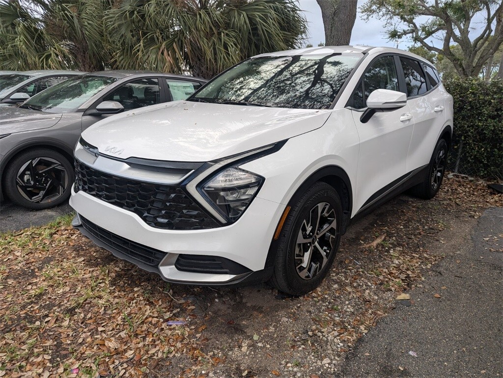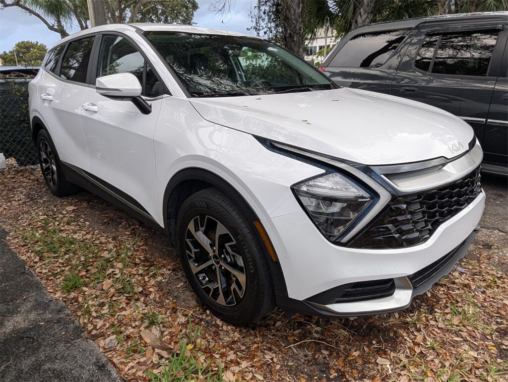 2023 Kia Sportage EX Beautifully finished in Glacial White Pearl with Black Artificial Leather interior. I4 4D Sport Utility FWD 8-Speed Automatic 4-Wheel Disc Brakes, 6 Speakers, ABS brakes, Air Conditioning, Alloy wheels, AM/FM radio: SiriusXM, Apple CarPlay & Android Auto, Auto High-beam Headlights, Automatic temperature control, Axle Ratio: 3.648, Brake assist, Bumpers: body-color, Carpeted Floor Mats, Compass, Delay-off headlights, Driver door bin, Driver vanity mirror, Dual front impact airbags, Dual front side impact airbags, Electronic Stability Control, Emergency communication system, Four wheel independent suspension, Front anti-roll bar, Front Bucket Seats, Front Center Armrest, Front dual zone A/C, Fully automatic headlights, Heated door mirrors, Heated Front Bucket Seats, Heated front seats, Illuminated entry, Leather Shift Knob, Leather steering wheel, Leatherette Seat Trim, Low tire pressure warning, Navigation System, Occupant sensing airbag, Outside temperature display, Overhead airbag, Overhead console, Panic alarm, Passenger door bin, Passenger vanity mirror, Power door mirrors, Power driver seat, Power steering, Power windows, Radio: AM/FM/HD Audio System, Rain sensing wipers, Rear anti-roll bar, Rear seat center armrest, Rear window defroster, Rear window wiper, Remote keyless entry, Security system, Speed control, Speed-sensing steering, Split folding rear seat, Spoiler, Steering wheel mounted audio controls, Tachometer, Telescoping steering wheel, Tilt steering wheel, Traction control, Trip computer, Turn signal indicator mirrors, Variably intermittent wipers, Wheels: 18" Machine Finish Alloy. CARFAX One-Owner. Clean CARFAX. Priced below KBB Fair Purchase Price! 25/32 City/Highway MPG