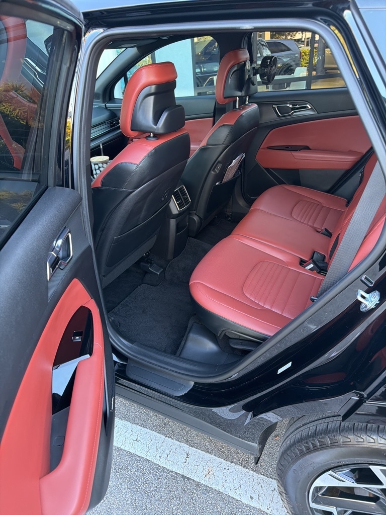 2023 Kia Sportage SX-Prestige Beautifully finished in Ebony Black with Black Artificial Leather interior. I4 4D Sport Utility FWD 8-Speed Automatic **ONE OWNER**, **LOCAL TRADE**, **CLEAN CARFAX**, 4-Wheel Disc Brakes, 8 Speakers, ABS brakes, Air Conditioning, Alloy wheels, AM/FM radio: SiriusXM, Apple CarPlay & Android Auto, Auto High-beam Headlights, Auto-dimming Rear-View mirror, Automatic temperature control, Axle Ratio: 3.648, Brake assist, Bumpers: body-color, Carmine Red Interior Color Package, Carpeted Floor Mats, Compass, Delay-off headlights, Driver door bin, Driver vanity mirror, Dual front impact airbags, Dual front side impact airbags, EC Mirror w/HomeLink, Electronic Stability Control, Emergency communication system, Four wheel independent suspension, Front anti-roll bar, Front Bucket Seats, Front Center Armrest, Front dual zone A/C, Front fog lights, Front reading lights, Fully automatic headlights, Garage door transmitter: HomeLink, harman/kardon® Speakers, Heated & Ventilated Front Bucket Seats, Heated door mirrors, Heated front seats, Heated steering wheel, Illuminated entry, Leather Shift Knob, Leather steering wheel, Low tire pressure warning, Memory seat, Navigation System, Occupant sensing airbag, Outside temperature display, Overhead airbag, Overhead console, Panic alarm, Passenger door bin, Passenger vanity mirror, Power door mirrors, Power driver seat, Power Liftgate, Power moonroof, Power passenger seat, Power steering, Power windows, Premium Leatherette Seat Trim, Radio: AM/FM/HD Audio System, Rain sensing wipers, Rear anti-roll bar, Rear reading lights, Rear seat center armrest, Rear window defroster, Rear window wiper, Remote keyless entry, Security system, Speed control, Speed-sensing steering, Split folding rear seat, Spoiler, Steering wheel mounted audio controls, Tachometer, Telescoping steering wheel, Tilt steering wheel, Traction control, Trip computer, Turn signal indicator mirrors, Variably intermittent wipers, Ventilated front seats, Wheels: 19" Gloss Black Alloy. CARFAX One-Owner. Clean CARFAX. Priced below KBB Fair Purchase Price! 25/32 City/Highway MPG