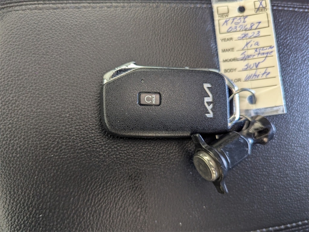 2023 Kia Sportage X-Line Beautifully finished in Glacial White Pearl with Black Artificial Leather interior. I4 4D Sport Utility AWD 8-Speed Automatic AWD, 4-Wheel Disc Brakes, 6 Speakers, ABS brakes, Air Conditioning, Alloy wheels, AM/FM radio: SiriusXM, Apple CarPlay & Android Auto, Auto High-beam Headlights, Automatic temperature control, Axle Ratio: 3.648, Brake assist, Bumpers: body-color, Carpet Floor Mats X-Line, Compass, Delay-off headlights, Driver door bin, Driver vanity mirror, Dual front impact airbags, Dual front side impact airbags, Electronic Stability Control, Emergency communication system, Four wheel independent suspension, Front anti-roll bar, Front Bucket Seats, Front Center Armrest, Front dual zone A/C, Fully automatic headlights, harman/kardon® Speakers, Heated door mirrors, Heated Front Bucket Seats, Heated front seats, Illuminated entry, Leather Shift Knob, Leather steering wheel, LED Interior Lighting, Low tire pressure warning, Navigation System, Occupant sensing airbag, Outside temperature display, Overhead airbag, Overhead console, Panic alarm, Panoramic Sunroof, Passenger door bin, Passenger vanity mirror, Power door mirrors, Power driver seat, Power steering, Power windows, Premium Leatherette Seat Trim, Radio: AM/FM/HD Audio System, Rain sensing wipers, Rear anti-roll bar, Rear seat center armrest, Rear window defroster, Rear window wiper, Remote keyless entry, Security system, Smart Power Liftgate, Speed control, Speed-sensing steering, Split folding rear seat, Spoiler, Steering wheel mounted audio controls, Tachometer, Telescoping steering wheel, Tilt steering wheel, Traction control, Trip computer, Turn signal indicator mirrors, Variably intermittent wipers, Wheels: 19" Gloss Black Alloy, X-Line Premium Package, AWD. CARFAX One-Owner. Priced below KBB Fair Purchase Price! 23/28 City/Highway MPG