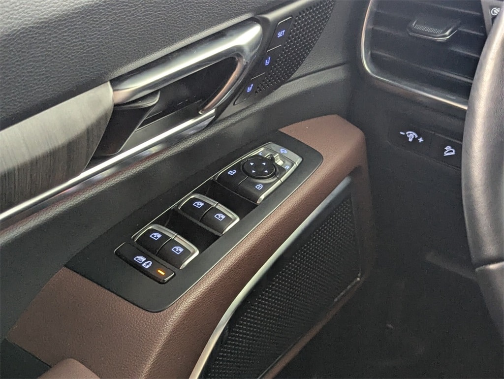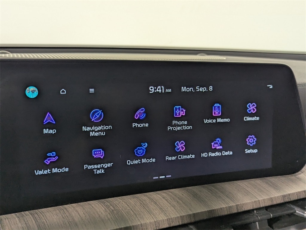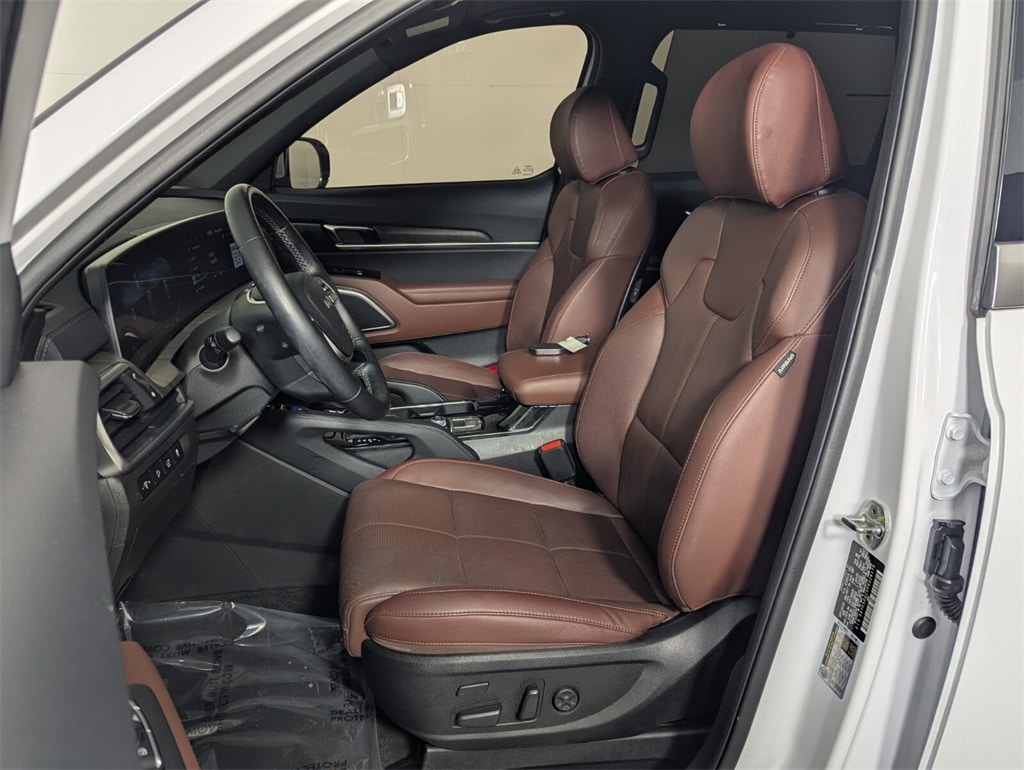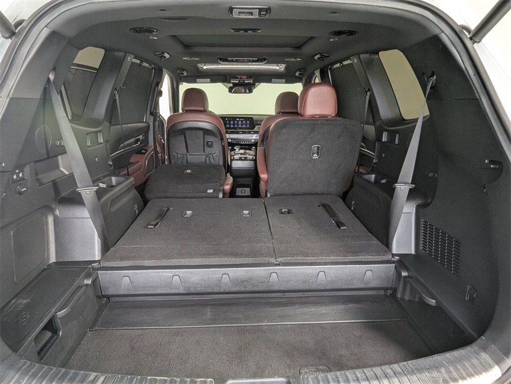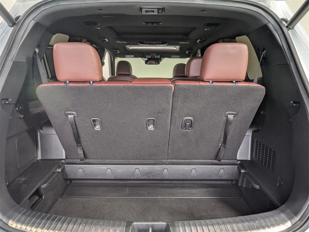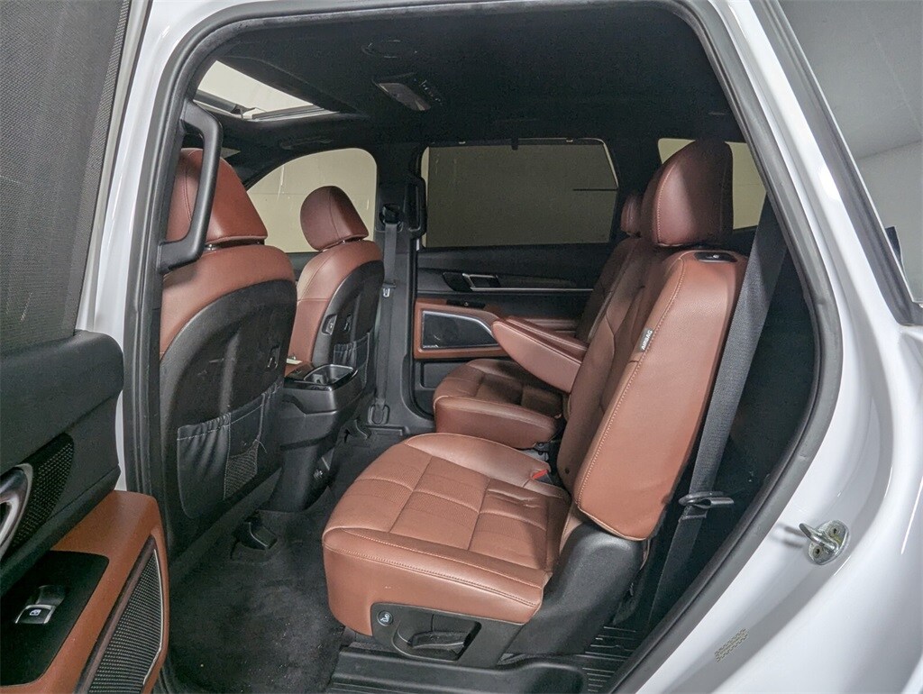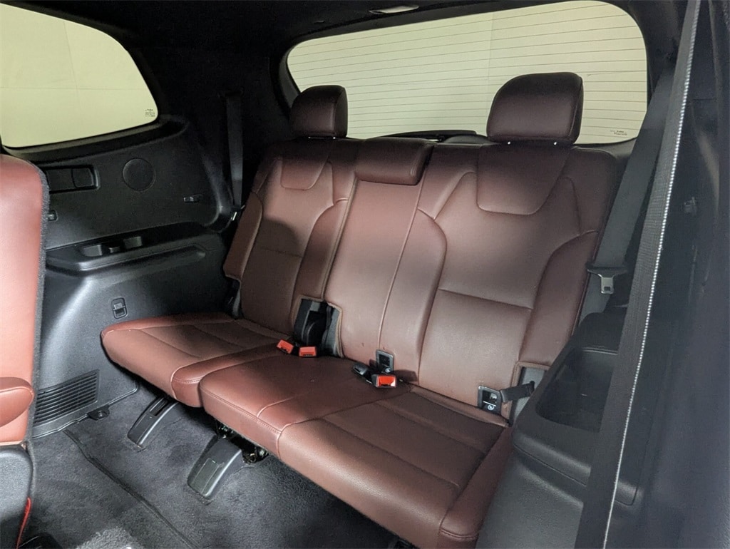 Features: Mahogany Interior Color Package, 10 Speakers, 3.648 Axle Ratio, 3rd row seats: split-bench, 4-Wheel Disc Brakes, ABS brakes, Air Conditioning, Alloy wheels, AM/FM radio: SiriusXM, Apple CarPlay & Android Auto, Auto High-beam Headlights, Auto-dimming Rear-View mirror, Automatic temperature control, Brake assist, Bumpers: body-color, Compass, Delay-off headlights, Driver door bin, Driver vanity mirror, Dual front impact airbags, Dual front side impact airbags, Electronic Stability Control, Emergency communication system: 911 Connect, Exterior Parking Camera Rear, Four wheel independent suspension, Front anti-roll bar, Front Bucket Seats, Front Center Armrest, Front dual zone A/C, Front fog lights, Front reading lights, Fully automatic headlights, Garage door transmitter: HomeLink, harman/kardon® Speakers, Heated & Ventilated Front Bucket Seats, Heated door mirrors, Heated front seats, Heated steering wheel, Illuminated entry, Knee airbag, Leather Seat Trim, Leather Shift Knob, Leather steering wheel, Low tire pressure warning, Memory seat, Navigation System, Occupant sensing airbag, Outside temperature display, Overhead airbag, Overhead console, Panic alarm, Passenger door bin, Passenger vanity mirror, Power door mirrors, Power driver seat, Power Liftgate, Power moonroof, Power passenger seat, Power steering, Power windows, Radio data system, Radio: AM/FM harman/kardon Audio System, Rear air conditioning, Rear anti-roll bar, Rear audio controls, Rear reading lights, Rear side impact airbag, Rear window defroster, Rear window wiper, Reclining 3rd row seat, Remote keyless entry, Roof rack: rails only, Security system, Smart Key w/ Push Button and Remote Start, Speed control, Speed-sensing steering, Split folding rear seat, Spoiler, Steering wheel mounted audio controls, Tachometer, Telescoping steering wheel, Tilt steering wheel, Traction control, Trip computer, Turn signal indicator mirrors, Variably intermittent wipers, Ventilated front seats, and Wheels: 20" x 7.5" Black Finish.