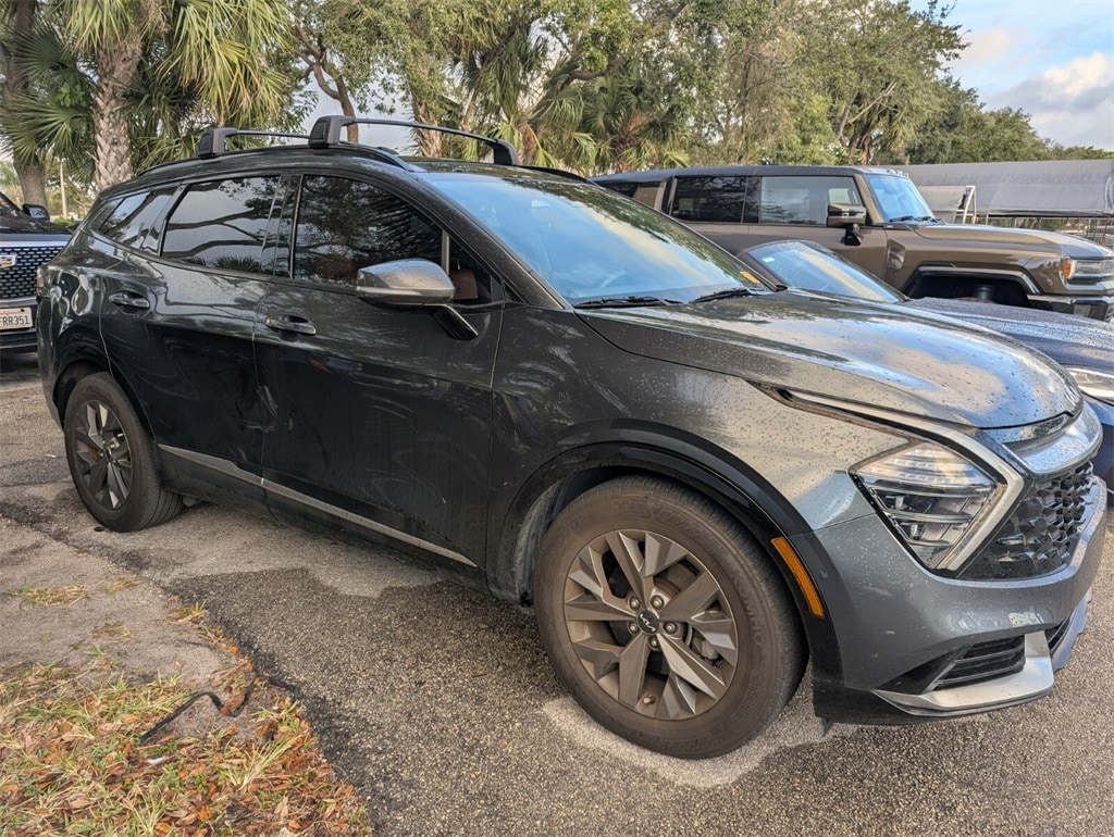 2024 Kia Sportage SX Beautifully finished in Gravity Gray with Black Artificial Leather interior. I4 4D Sport Utility FWD 8-Speed Automatic 4-Wheel Disc Brakes, 8 Speakers, ABS brakes, Air Conditioning, Alloy wheels, AM/FM radio: SiriusXM, Apple CarPlay & Android Auto, Auto High-beam Headlights, Automatic temperature control, Axle Ratio: 3.648, Brake assist, Bumpers: body-color, Carmine Red Interior Color Package, Carpeted Floor Mats, Compass, Delay-off headlights, Driver door bin, Driver vanity mirror, Dual front impact airbags, Dual front side impact airbags, EC Mirror w/HomeLink, Electronic Stability Control, Emergency communication system, Four wheel independent suspension, Front anti-roll bar, Front Bucket Seats, Front Center Armrest, Front dual zone A/C, Front reading lights, Fully automatic headlights, harman/kardon® Speakers, Heated door mirrors, Heated Front Bucket Seats, Heated front seats, Heated steering wheel, Illuminated entry, Leather Shift Knob, Leather steering wheel, Leatherette Seat Trim, Low tire pressure warning, Memory seat, Navigation System, Occupant sensing airbag, Outside temperature display, Overhead airbag, Overhead console, Panic alarm, Passenger door bin, Passenger vanity mirror, Power door mirrors, Power driver seat, Power Liftgate, Power moonroof, Power steering, Power windows, Radio: AM/FM/HD Audio System, Rain sensing wipers, Rear anti-roll bar, Rear reading lights, Rear seat center armrest, Rear side impact airbag, Rear window defroster, Rear window wiper, Remote keyless entry, Security system, Speed control, Speed-sensing steering, Split folding rear seat, Spoiler, Steering wheel mounted audio controls, Tachometer, Telescoping steering wheel, Tilt steering wheel, Traction control, Trip computer, Turn signal indicator mirrors, Variably intermittent wipers, Wheels: 18" Matte Gray Alloy. CARFAX One-Owner. Clean CARFAX. 25/33 City/Highway MPG