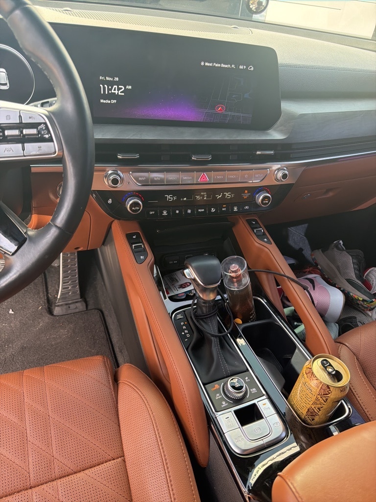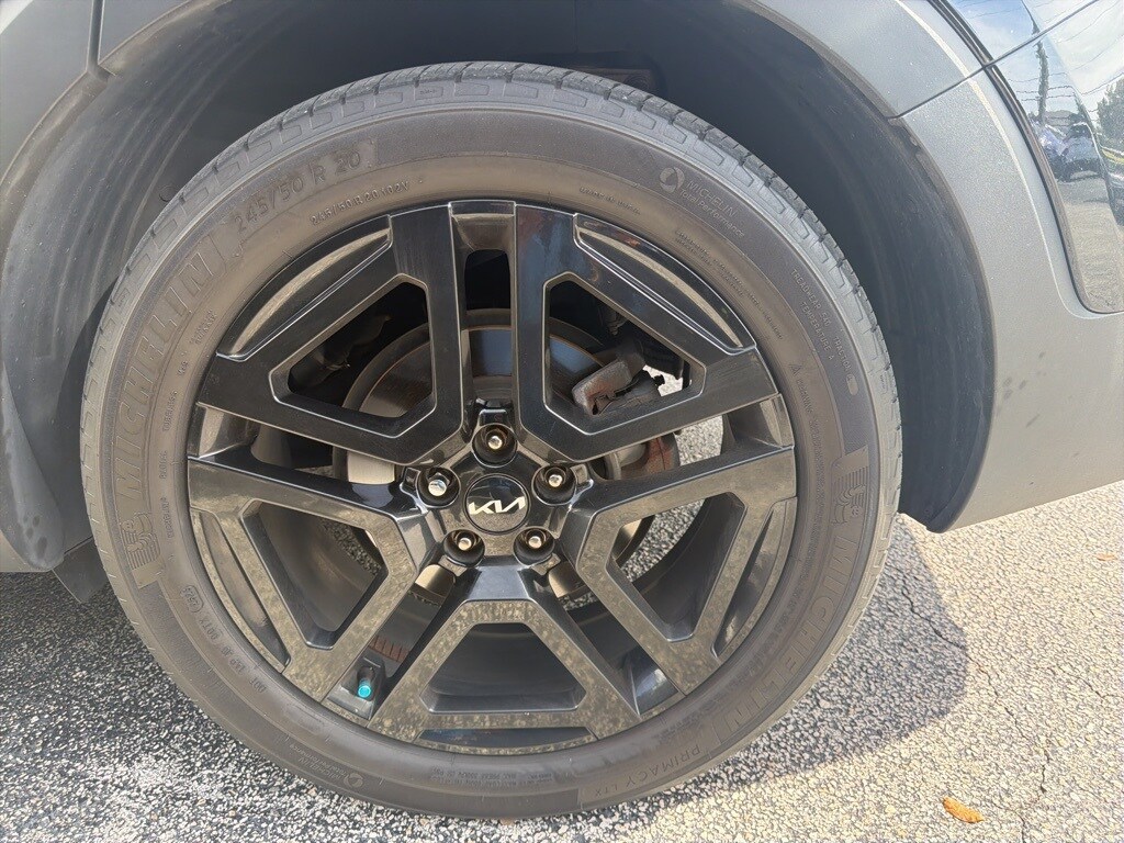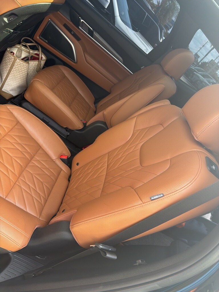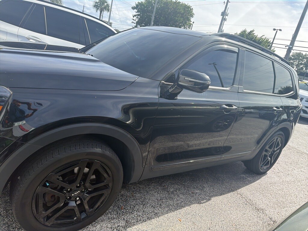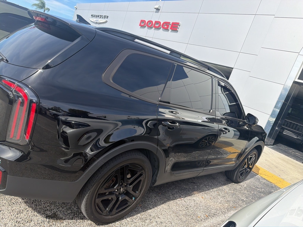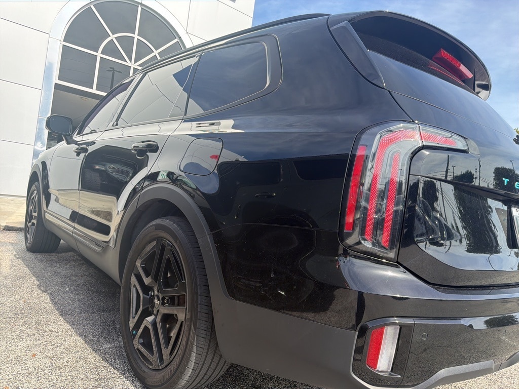 This Telluride is well equipped with Terracotta Interior Color Package, 10 Speakers, 3.648 Axle Ratio, 3rd row seats: split-bench, 4-Wheel Disc Brakes, ABS brakes, Air Conditioning, Alloy wheels, AM/FM radio: SiriusXM, Apple CarPlay & Android Auto, Auto High-beam Headlights, Auto-dimming Rear-View mirror, Auto-leveling suspension, Automatic temperature control, Brake assist, Bumpers: body-color, Carpet Floor Mats, Compass, Delay-off headlights, Driver door bin, Driver vanity mirror, Dual front impact airbags, Dual front side impact airbags, Electronic Stability Control, Emergency communication system: 911 Connect, Exterior Parking Camera Rear, Four wheel independent suspension, Front anti-roll bar, Front Bucket Seats, Front Center Armrest, Front dual zone A/C, Front fog lights, Front reading lights, Fully automatic headlights, Garage door transmitter: HomeLink, harman/kardon® Speakers, Heated & Ventilated Front Bucket Seats, Heated door mirrors, Heated front seats, Heated steering wheel, Illuminated entry, Knee airbag, Leather Seat Trim, Leather Shift Knob, Leather steering wheel, Low tire pressure warning, Memory seat, Navigation System/ GPS, Occupant sensing airbag, Outside temperature display, Overhead airbag, Overhead console, Panic alarm, Passenger door bin, Passenger vanity mirror, Power door mirrors, Power driver seat, Power Liftgate, Power moonroof, Power passenger seat, Power steering, Power windows, Radio data system, Radio: AM/FM Harman Kardon Audio System, Rear air conditioning, Rear anti-roll bar, Rear audio controls, Rear reading lights, Rear side impact airbag, Rear window defroster, Rear window wiper, Reclining 3rd row seat, Remote keyless entry, Roof rack: rails only, Security system, Smart Key w/ Push Button and Remote Start, Speed control, Speed-sensing steering, Split folding rear seat, Spoiler, Steering wheel mounted audio controls, Tachometer, Telescoping steering wheel, Tilt steering wheel, Traction control, Trip computer, Turn signal indicator mirrors, Variably intermittent wipers, Ventilated front seats, and Wheels: 20" x 7.5" Black Finish X-LINE Exclusive.