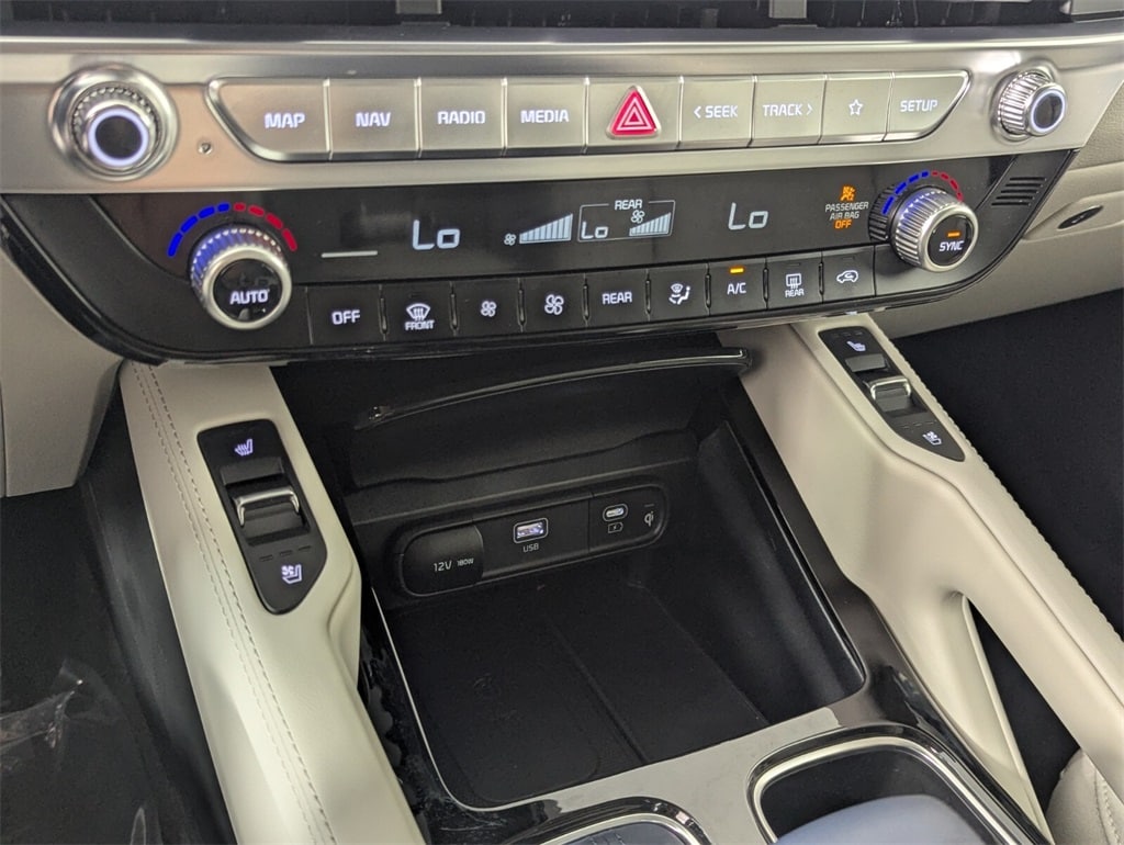 2025 Kia Telluride SX Beautifully finished in Glacial White Pearl with Navy Leather interior. 3.8L V6 DOHC 4D Sport Utility FWD 8-Speed Automatic 10 Speakers, 3rd row seats: split-bench, 4-Wheel Disc Brakes, ABS brakes, Air Conditioning, Alloy wheels, AM/FM radio: SiriusXM, Apple CarPlay & Android Auto, Auto High-beam Headlights, Auto-dimming Rear-View mirror, Auto-leveling suspension, Automatic temperature control, Brake assist, Bumpers: body-color, Carpeted Floor Mats, Compass, Delay-off headlights, Driver door bin, Driver vanity mirror, Dual front impact airbags, Dual front side impact airbags, Electronic Stability Control, Emergency communication system: 911 Connect, Exterior Parking Camera Rear, Four wheel independent suspension, Front anti-roll bar, Front Bucket Seats, Front Center Armrest, Front dual zone A/C, Front fog lights, Front reading lights, Fully automatic headlights, Garage door transmitter: HomeLink, harman/kardon® Speakers, Heated & Ventilated Front Bucket Seats, Heated door mirrors, Heated front seats, Illuminated entry, Knee airbag, Leather Seat Trim, Leather Shift Knob, Leather steering wheel, Low tire pressure warning, Memory seat, Navigation System, Occupant sensing airbag, Outside temperature display, Overhead airbag, Overhead console, Panic alarm, Passenger door bin, Passenger vanity mirror, Power door mirrors, Power driver seat, Power Liftgate, Power moonroof, Power passenger seat, Power steering, Power windows, Radio data system, Radio: AM/FM Harman Kardon Premium Audio System, Rear air conditioning, Rear anti-roll bar, Rear audio controls, Rear reading lights, Rear seat center armrest, Rear side impact airbag, Rear window defroster, Rear window wiper, Reclining 3rd row seat, Remote keyless entry, Security system, Speed control, Speed-sensing steering, Split folding rear seat, Spoiler, Steering wheel mounted audio controls, Tachometer, Telescoping steering wheel, Tilt steering wheel, Traction control, Trip computer, Turn signal indicator mirrors, Variably intermittent wipers, Ventilated front seats, Wheels: 20" x 7.5" Black Finish. CARFAX One-Owner. Clean CARFAX. Priced below KBB Fair Purchase Price! 20/26 City/Highway MPG