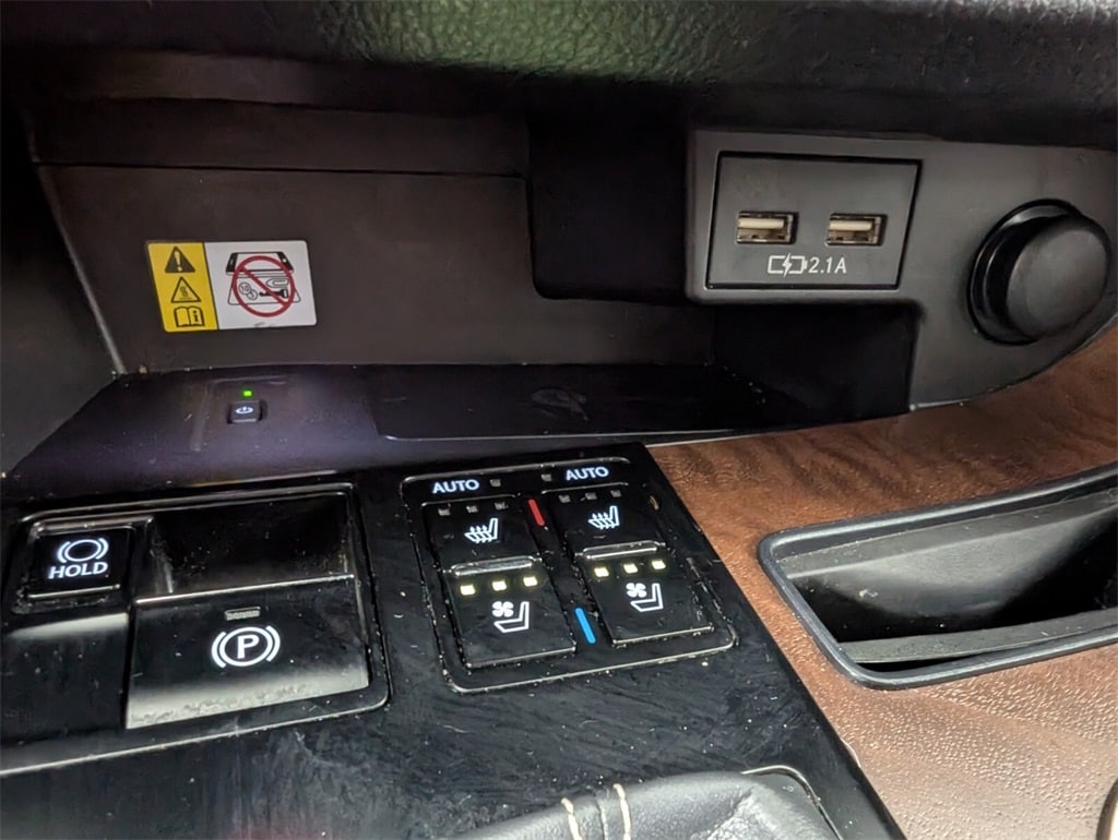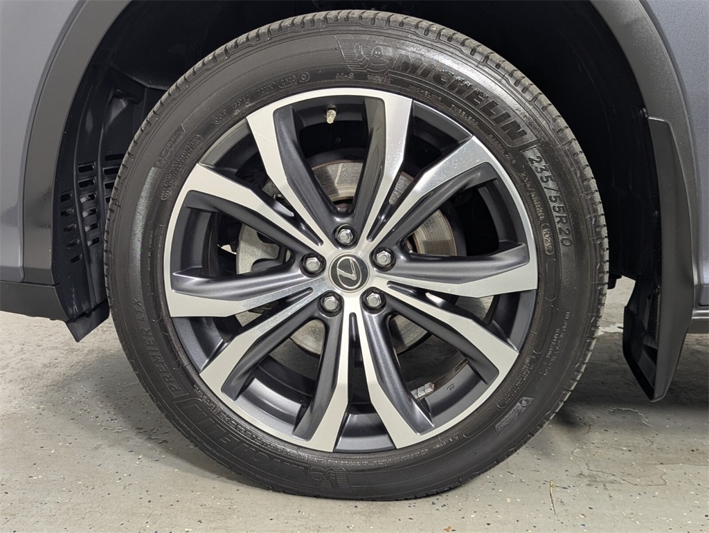 Features: 3.33 Axle Ratio, 3rd row seats: split-bench, 4-Wheel Disc Brakes, 9 Speakers, ABS brakes, Air Conditioning, Alloy wheels, AM/FM radio: SiriusXM, Anti-whiplash front head restraints, Apple CarPlay/Android Auto, Auto High-beam Headlights, Auto-dimming door mirrors, Auto-dimming Rear-View mirror, Automatic temperature control, Brake assist, Bumpers: body-color, CD player, Compass, Delay-off headlights, Driver door bin, Driver vanity mirror, Dual front impact airbags, Dual front side impact airbags, Electronic Stability Control, Emergency communication system, Exterior Parking Camera Rear, Four wheel independent suspension, Front anti-roll bar, Front Bucket Seats, Front Center Armrest, Front dual zone A/C, Front reading lights, Fully automatic headlights, Garage door transmitter: HomeLink, Genuine wood console insert, Genuine wood door panel insert, Heated door mirrors, Illuminated entry, Knee airbag, Leather Shift Knob, Leather steering wheel, Low tire pressure warning, NuLuxe Seat Trim, Occupant sensing airbag, Outside temperature display, Overhead airbag, Overhead console, Panic alarm, Passenger door bin, Passenger vanity mirror, Power door mirrors, Power driver seat, Power Liftgate, Power passenger seat, Power steering, Power windows, Radio data system, Radio: AM/FM/CD Lexus Display Audio, Rain sensing wipers, Rear air conditioning, Rear anti-roll bar, Rear reading lights, Rear seat center armrest, Rear side impact airbag, Rear window defroster, Rear window wiper, Reclining 3rd row seat, Remote keyless entry, Roof rack: rails only, Security system, Speed control, Speed-sensing steering, Split folding rear seat, Spoiler, Steering wheel mounted audio controls, Tachometer, Telescoping steering wheel, Tilt steering wheel, Traction control, Trip computer, Turn signal indicator mirrors, Variably intermittent wipers, and Wheels: 18" x 8.0 Split-5-Spoke Alloy.