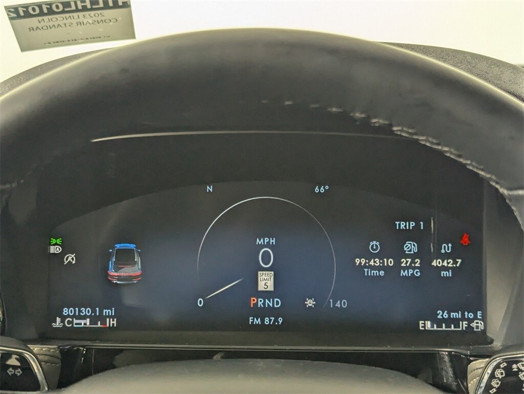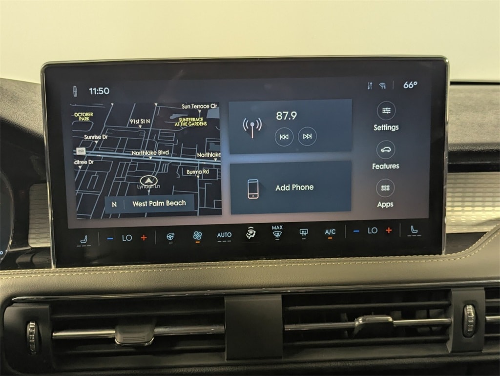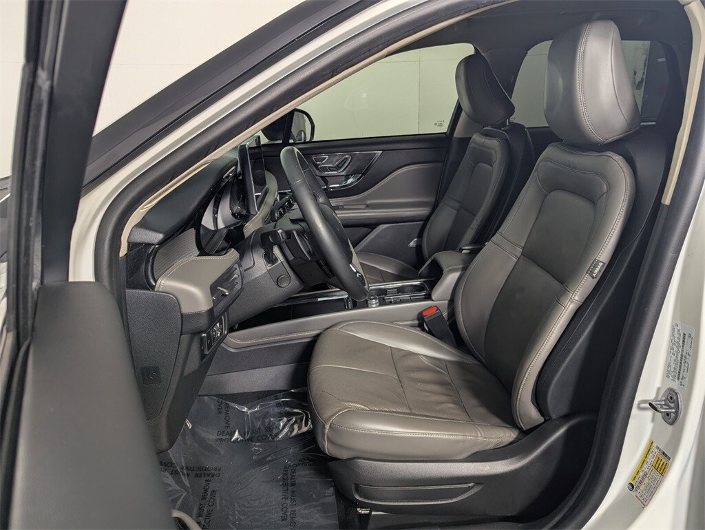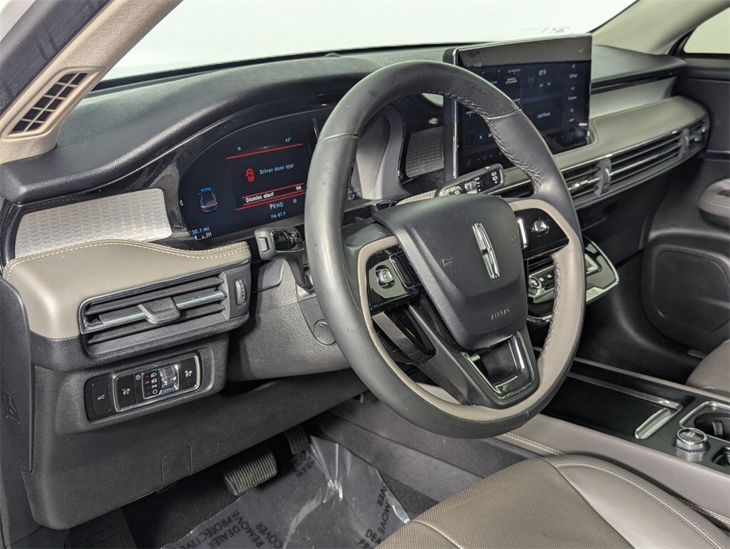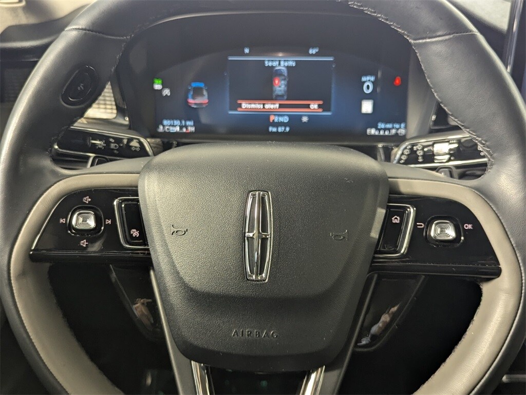 Features: Equipment Group 201A (60/40 EasyFold Rear Seat w/Power Seatback Release, Frameless Auto Dimming Rearview Mirror, Hands-Free Liftgate, Heated Sideview Mirrors, Heated Steering Wheel, Heated/Ventilated Driver & Front Passenger Seats, Phone As A Key (PAAK), Power Tilt/Telescoping Steering Column w/Memory, Rain Sensing Wipers, Universal Garage Door Opener, Windshield Wiper De-Icer, and Wireless Charging Pad), 10 Speakers, 19" Bright Machined Aluminum Wheels, 3.81 Axle Ratio, 360-Degree Camera, 4-Wheel Disc Brakes, ABS brakes, Air Conditioning, Alloy wheels, AM/FM radio: SiriusXM, Auto High-beam Headlights, Auto-dimming Rear-View mirror, Automatic temperature control, Brake assist, Bumpers: body-color, Compass, Delay-off headlights, Driver door bin, Driver vanity mirror, Dual front impact airbags, Dual front side impact airbags, Electronic Stability Control, Emergency communication system: SYNC 4 911 Assist, Finestra Aluminum Applique, Four wheel independent suspension, Front anti-roll bar, Front Bucket Seats, Front Center Armrest, Front dual zone A/C, Front reading lights, Front/Side/Rear Parking Sensors, Fully automatic headlights, Heated door mirrors, Heated front seats, Illuminated entry, Knee airbag, Leather steering wheel, Lincoln Premium Audio System Subwoofer Delete, Low tire pressure warning, Memory seat, Navigation system: Connected Navigation (3-year trial), Occupant sensing airbag, Outside temperature display, Overhead airbag, Overhead console, Panic alarm, Panoramic Vista Roof w/Power Shade, Passenger door bin, Passenger vanity mirror, Power door mirrors, Power driver seat, Power Liftgate, Power passenger seat, Power steering, Power windows, Premium Leather Heated Comfort Seats, Radio data system, Radio: Lincoln Premium Audio System w/MP3, Rear anti-roll bar, Rear Parking Sensors, Rear reading lights, Rear seat center armrest, Rear window defroster, Rear window wiper, Remote keyless entry, Reverse Brake Assist, Roof rack: rails only, Security system, SiriusXM Radio, Speed control, Speed-sensing steering, Speed-Sensitive Wipers, Split folding rear seat, Spoiler, Steering wheel mounted A/C controls, Steering wheel mounted audio controls, SYNC 4 Communications & Entertainment System, Tachometer, Telescoping steering wheel, Tilt steering wheel, Traction control, Trip computer, and Variably intermittent wipers.