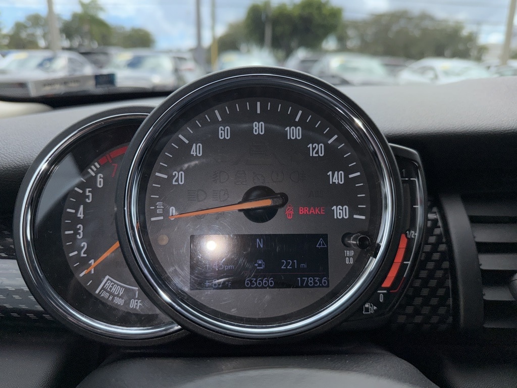 This Cooper S is well equipped with 4-Wheel Disc Brakes, 6 Speakers, ABS brakes, Air Conditioning, Alloy wheels, AM/FM radio, AM/FM Stereo, Badge Deletion, Brake assist, Bumpers: body-color, Delay-off headlights, Driver door bin, Driver vanity mirror, Dual front impact airbags, Dual front side impact airbags, Electronic Stability Control, Emergency communication system, Exterior Parking Camera Rear, Four wheel independent suspension, Front anti-roll bar, Front Center Armrest w/Storage, Front fog lights, Front reading lights, Fully automatic headlights, Heated door mirrors, Illuminated entry, Knee airbag, Leather steering wheel, Low tire pressure warning, MINI Connected, Occupant sensing airbag, Outside temperature display, Overhead airbag, Overhead console, Passenger door bin, Passenger vanity mirror, Power door mirrors, Power steering, Power windows, Radio data system, Rain sensing wipers, Rear anti-roll bar, Rear window defroster, Rear window wiper, Remote keyless entry, SiriusXM Satellite Radio, Speed control, Speed-sensing steering, Speed-Sensitive Wipers, Split folding rear seat, Spoiler, Sport Seats, Sport steering wheel, Steering wheel mounted audio controls, Tachometer, Telescoping steering wheel, Tilt steering wheel, Traction control, Trip computer, Variably intermittent wipers, Wheels: 16" x 6.5" Loop Spoke Silver Alloy, and Without Additional Chrome Interior Trim.