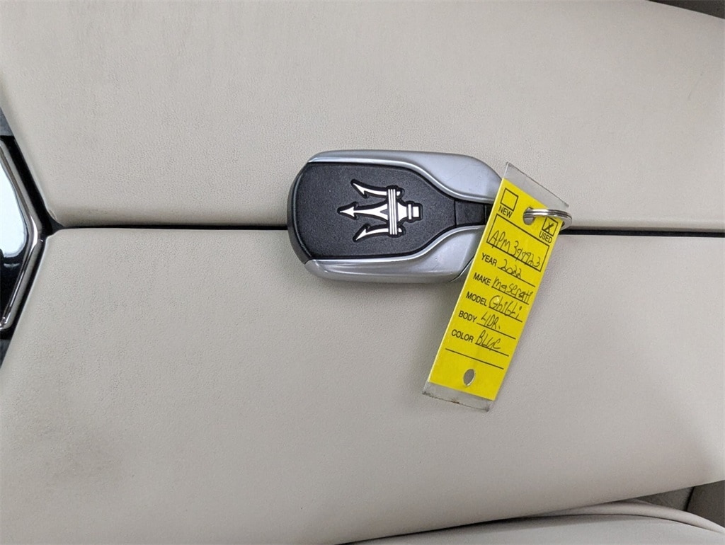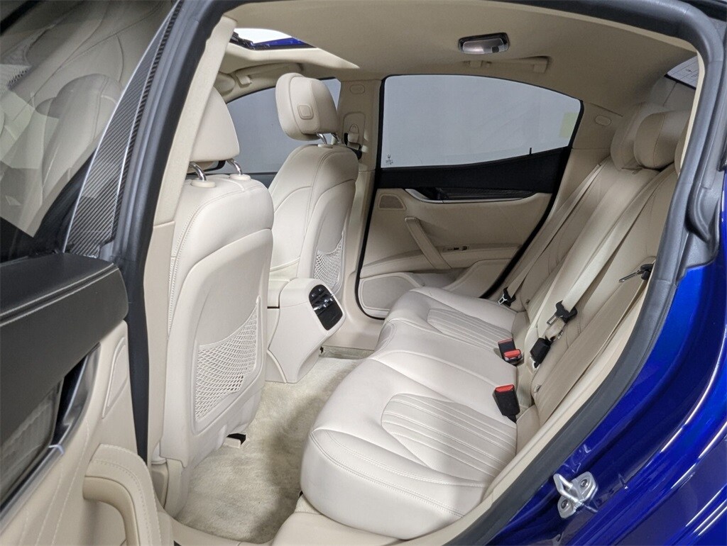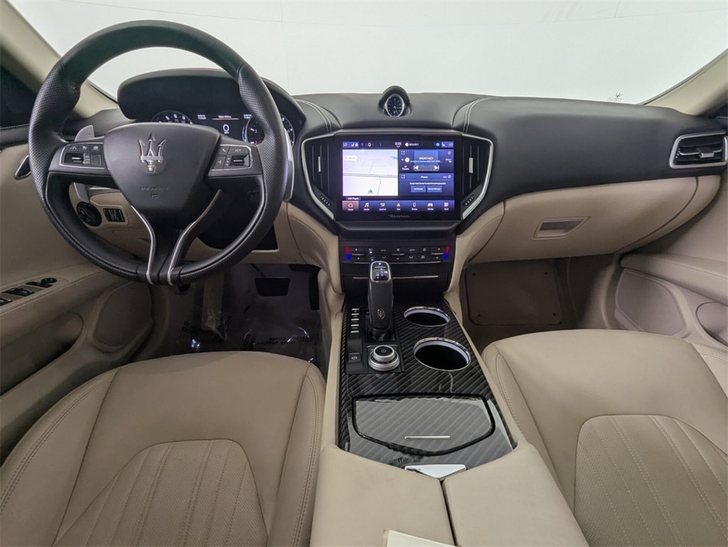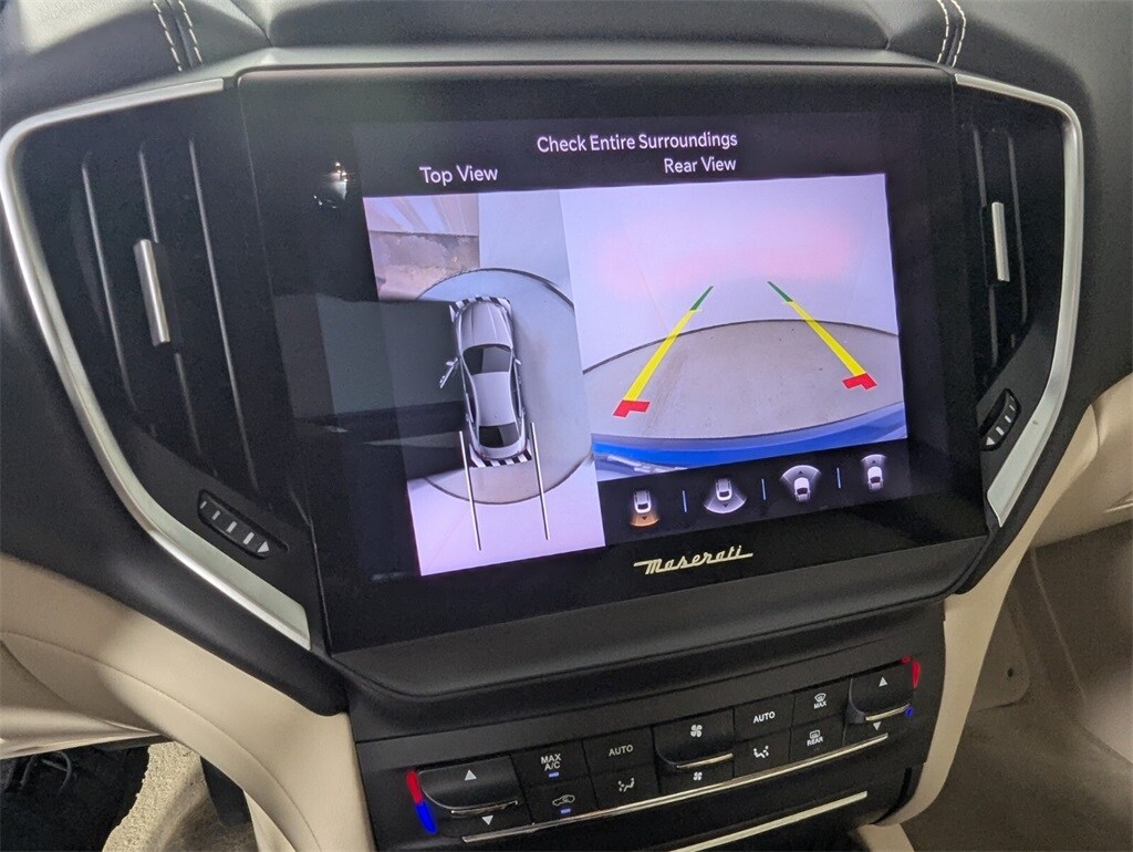 This Ghibli is well equipped with 12-Way Power Heated Front Seats, 4-Wheel Disc Brakes, 8 Speakers, ABS brakes, Air Conditioning, Alloy wheels, Aluminum Column-Mounted Paddle Shifters, AM/FM radio: SiriusXM, Anti-whiplash front head restraints, Apple CarPlay/Android Auto, Auto-dimming door mirrors, Auto-dimming Rear-View mirror, Automatic temperature control, Brake assist, Bumpers: body-color, Compass, Delay-off headlights, Driver door bin, Driver vanity mirror, Dual front impact airbags, Dual front side impact airbags, Electronic Stability Control, Emergency communication system: Maserati Connect, Exterior Parking Camera Rear, Four wheel independent suspension, Front anti-roll bar, Front Bucket Seats, Front Center Armrest w/Storage, Front dual zone A/C, Front reading lights, Garage door transmitter: HomeLink, Heated door mirrors, Heated front seats, Heated steering wheel, High intensity discharge headlights: Bi-Xenon, Illuminated entry, Knee airbag, Leather Shift Knob, Leather steering wheel, Leather Upholstery, Low tire pressure warning, Memory seat, Navigation System/ GPS, Occupant sensing airbag, Outside temperature display, Overhead airbag, Overhead console, Panic alarm, Passenger door bin, Passenger vanity mirror, Power door mirrors, Power driver seat, Power moonroof, Power passenger seat, Power steering, Power windows, Radio data system, Radio: AM/FM w/Maserati Intelligent Assistant, Rain sensing wipers, Rear anti-roll bar, Rear fog lights, Rear reading lights, Rear seat center armrest, Rear window defroster, Remote keyless entry, Security system, Speed control, Speed-sensing steering, Speed-Sensitive Wipers, Split folding rear seat, Sport steering wheel, Steering wheel memory, Steering wheel mounted audio controls, Tachometer, Telescoping steering wheel, Tilt steering wheel, Traction control, Trip computer, Turn signal indicator mirrors, Variably intermittent wipers, Voltmeter, and Wheels: 19" Silver Poseidone.