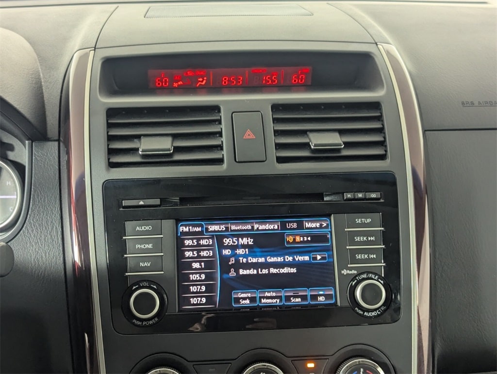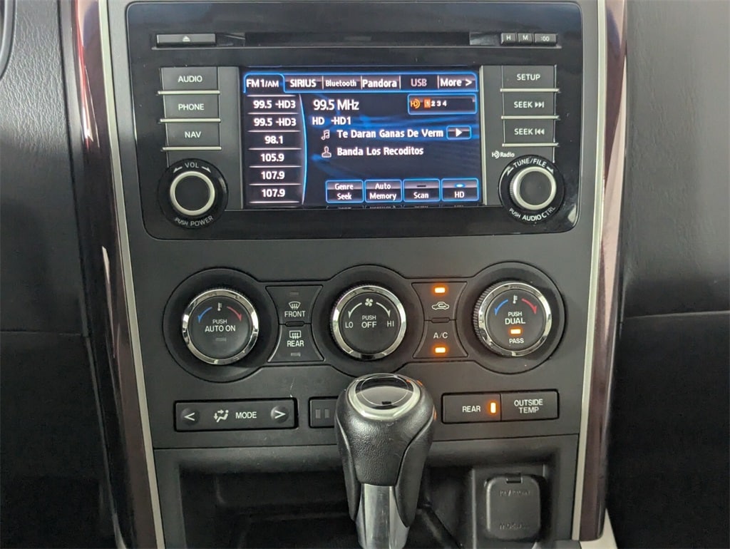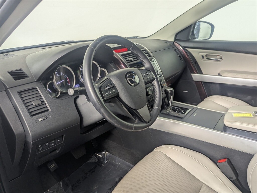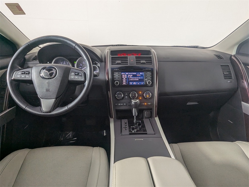 This Mazda CX-9 is well equipped with GT Technology Package (Navigation System w/Real Time Traffic, Power Sliding Glass Moonroof w/Interior Sunshade, and SiriusXM Satellite Radio), Recreational Accessory Package (Cargo Netting, Rear Bumper Guard, and Roof Rack w/Roof Rails), Towing Prep (Heavy-Duty Transmission Cooler), 20" x 7.5J Aluminum Alloy Wheels, 3.464 Axle Ratio, 3rd row seats: split-bench, 4-Wheel Disc Brakes, 6 Speakers, ABS brakes, Air Conditioning, Alloy wheels, AM/FM radio, AM/FM Sound System w/CD & 6 Speakers, Anti-whiplash front head restraints, Auto-dimming Rear-View mirror, Automatic temperature control, Bose Centerpoint w/11 speakers, Brake assist, Bumpers: body-color, CD player, Delay-off headlights, Driver door bin, Driver vanity mirror, Dual front impact airbags, Dual front side impact airbags, Electronic Stability Control, Exterior Parking Camera Rear, Four wheel independent suspension, Front anti-roll bar, Front Bucket Seats, Front Center Armrest, Front dual zone A/C, Front fog lights, Front reading lights, Fully automatic headlights, Garage door transmitter: HomeLink, Heated door mirrors, Heated Front Bucket Seats, Heated front seats, High intensity discharge headlights: Bi-Xenon, Illuminated entry, Leather Shift Knob, Leather Trimmed Seats, Low tire pressure warning, Memory seat, Occupant sensing airbag, Outside temperature display, Overhead airbag, Overhead console, Panic alarm, Passenger door bin, Passenger vanity mirror, Power door mirrors, Power driver seat, Power Liftgate, Power passenger seat, Power steering, Power windows, Rain sensing wipers, Rear air conditioning, Rear anti-roll bar, Rear Parking Sensors, Rear seat center armrest, Rear window defroster, Rear window wiper, Remote keyless entry, Security system, Speed control, Speed-sensing steering, Split folding rear seat, Spoiler, Steering wheel mounted audio controls, Tachometer, Telescoping steering wheel, Tilt steering wheel, Traction control, Trip computer, Turn signal indicator mirrors, and Variably intermittent wipers.