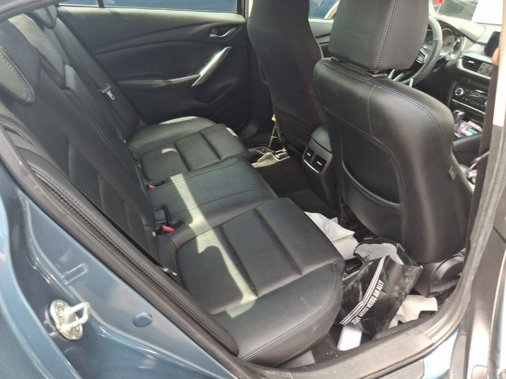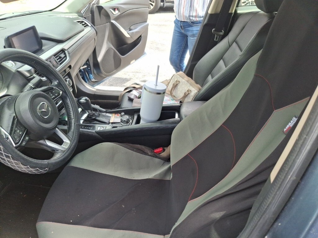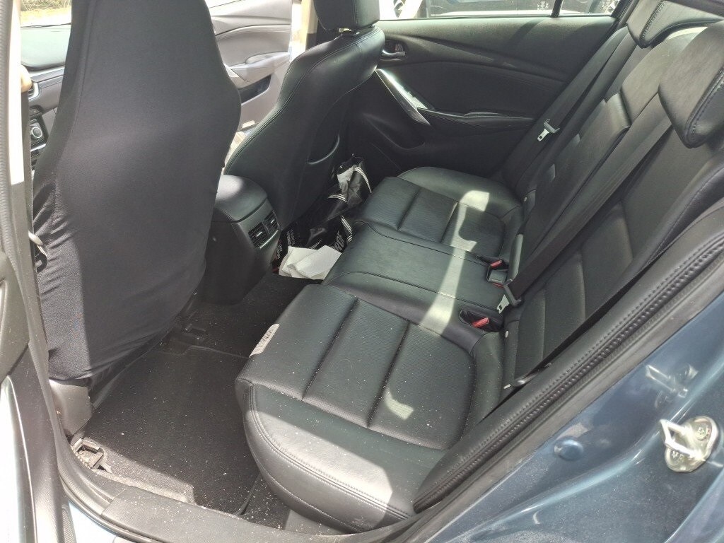 This Mazda Mazda6 is well equipped with 19" Alloy Wheels, 4-Wheel Disc Brakes, 6 Speakers, ABS brakes, Air Conditioning, Alloy wheels, AM/FM radio, Anti-whiplash front head restraints, Automatic temperature control, Brake assist, Bumpers: body-color, CD player, Delay-off headlights, Driver door bin, Driver vanity mirror, Dual front impact airbags, Dual front side impact airbags, Electronic Stability Control, Emergency communication system, Exterior Parking Camera Rear, Four wheel independent suspension, Front anti-roll bar, Front Bucket Seats, Front Center Armrest, Front dual zone A/C, Front reading lights, Fully automatic headlights, Illuminated entry, Leather Shift Knob, Leatherette Seat Trim, Low tire pressure warning, Occupant sensing airbag, Outside temperature display, Overhead airbag, Overhead console, Panic alarm, Passenger door bin, Passenger vanity mirror, Power door mirrors, Power driver seat, Power steering, Power windows, Radio data system, Radio: AM/FM/CD/MP3/AUX 6-Speaker Audio & HD Radio, Rain sensing wipers, Rear anti-roll bar, Rear reading lights, Rear seat center armrest, Rear window defroster, Remote keyless entry, Speed control, Speed-sensing steering, Split folding rear seat, Steering wheel mounted audio controls, Tachometer, Telescoping steering wheel, Tilt steering wheel, Traction control, Trip computer, Turn signal indicator mirrors, and Variably intermittent wipers.