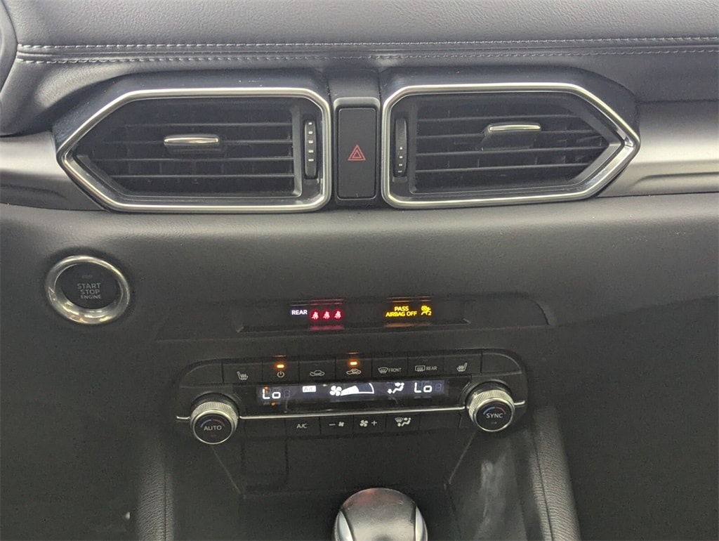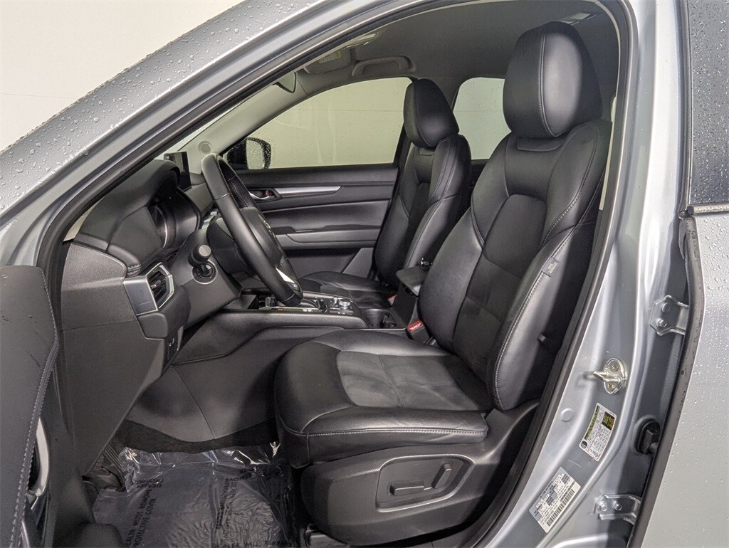 Features: CX-5 2.5 S Select Package, 4D Sport Utility, SKYACTIV® 2.5L 4-Cylinder DOHC 16V, 6-Speed Automatic, AWD, Sonic Silver Metallic, Black Artificial Leather, 4-Wheel Disc Brakes, 4.624 Axle Ratio, 6 Speakers, ABS brakes, Air Conditioning, Alloy wheels, AM/FM radio, AppLink/Apple CarPlay and Android Auto, Auto High-beam Headlights, Automatic temperature control, Brake assist, Bumpers: body-color, Delay-off headlights, Driver door bin, Driver vanity mirror, Dual front impact airbags, Dual front side impact airbags, E911 Automatic Emergency Notification, Electronic Stability Control, Emergency communication system: MAZDA CONNECT, Exterior Parking Camera Rear, Four wheel independent suspension, Front anti-roll bar, Front Bucket Seats, Front Center Armrest w/Storage, Front dual zone A/C, Front reading lights, Fully automatic headlights, Heated Front Bucket Seats, Heated front seats, Illuminated entry, Infotainment System Voice Command, Leather Shift Knob, Leatherette Seat Trim, Low tire pressure warning, Multifunction Commander Control, Occupant sensing airbag, Outside temperature display, Overhead airbag, Overhead console, Pandora, Panic alarm, Passenger door bin, Passenger vanity mirror, Power door mirrors, Power driver seat, Power steering, Power windows, Radio Broadcast Data System Program Information, Radio data system, Radio: AM/FM/HD Audio System, Rain sensing wipers, Rear anti-roll bar, Rear reading lights, Rear seat center armrest, Rear window defroster, Rear window wiper, Remote keyless entry, SMS Text Msg Audio Delivery & Reply, Speed control, Speed-sensing steering, Split folding rear seat, Spoiler, Steering wheel mounted audio controls, Tachometer, Telescoping steering wheel, Tilt steering wheel, Traction control, Trip computer, Turn signal indicator mirrors, Variably intermittent wipers, Wheel Locks, and Wheels: 17" x 7J Aluminum Alloy.