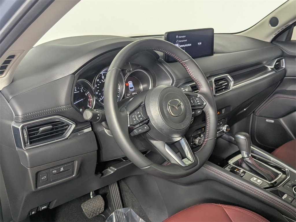 2023 Mazda CX-5 2.5 S Carbon Edition Beautifully finished in Polymetal Gray with Red Leather interior. SKYACTIV® 2.5L 4-Cylinder DOHC 16V 4D Sport Utility AWD 6-Speed Automatic 10 Speakers, 4-Wheel Disc Brakes, 4.624 Axle Ratio, ABS brakes, Air Conditioning, Alloy wheels, AM/FM radio, AppLink/Apple CarPlay and Android Auto, Auto High-beam Headlights, Auto-dimming Rear-View mirror, Automatic temperature control, Black Lug Nuts & Black Wheel Locks, Brake assist, Bumpers: body-color, Cargo Tray, Delay-off headlights, Driver door bin, Driver vanity mirror, Dual front impact airbags, Dual front side impact airbags, E911 Automatic Emergency Notification, Electronic Stability Control, Emergency communication system: MAZDA CONNECT, Exterior Parking Camera Rear, Four wheel independent suspension, Front anti-roll bar, Front Bucket Seats, Front Center Armrest w/Storage, Front dual zone A/C, Front reading lights, Fully automatic headlights, Garage door transmitter: HomeLink, Heated Front Bucket Seats, Heated front seats, Illuminated entry, Infotainment System Voice Command, Leather Seat Trim, Leather Shift Knob, Low tire pressure warning, Memory seat, Multifunction Commander Control, Occupant sensing airbag, Outside temperature display, Overhead airbag, Overhead console, Pandora, Panic alarm, Passenger door bin, Passenger vanity mirror, Power door mirrors, Power driver seat, Power Liftgate, Power moonroof, Power passenger seat, Power steering, Power windows, Radio Broadcast Data System Program Information, Radio data system, Radio: AM/FM/HD Audio System, Rain sensing wipers, Rear anti-roll bar, Rear Bumper Guard, Rear reading lights, Rear seat center armrest, Rear window defroster, Rear window wiper, Remote keyless entry, SMS Text Msg Audio Delivery & Reply, Speed control, Speed-sensing steering, Split folding rear seat, Spoiler, Steering wheel mounted audio controls, Tachometer, Telescoping steering wheel, Tilt steering wheel, Traction control, Trip computer, Turn signal indicator mirrors, Variably intermittent wipers, Wheels: 19" x 7J Aluminum Alloy. Clean CARFAX. Priced below KBB Fair Purchase Price! 24/30 City/Highway MPG