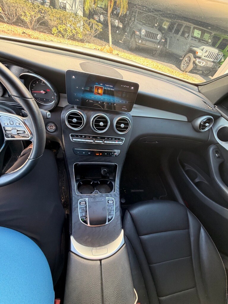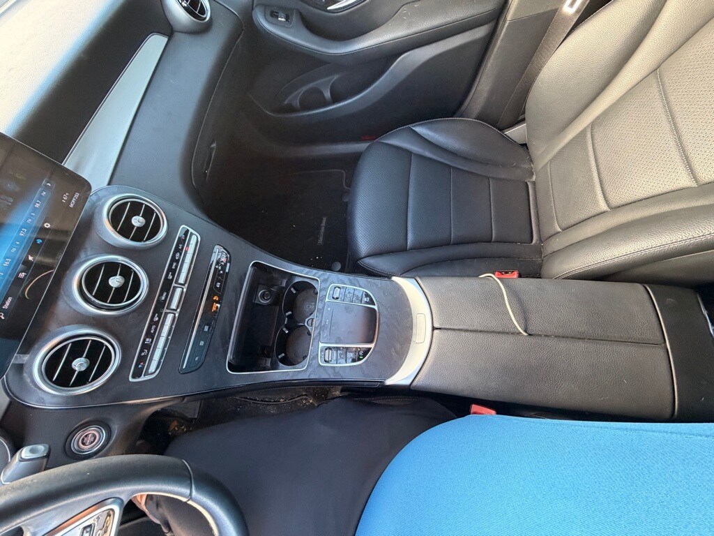 This GLC is well equipped with 10.25" Center Touchscreen Display, 3.27 Axle Ratio, 4-Way Lumbar Support, 4-Wheel Disc Brakes, 6 Speakers, ABS brakes, Air Conditioning, Alloy wheels, AM/FM radio, Android Auto®, Apple CarPlay®, Apple CarPlay®/Android Auto®, Auto tilt-away steering wheel, Auto-dimming door mirrors, Auto-dimming Rear-View mirror, Automatic temperature control, Brake assist, Bumpers: body-color, Child-Seat-Sensing Airbag, Delay-off headlights, Driver door bin, Driver vanity mirror, Dual front impact airbags, Dual front side impact airbags, Electrically Adjustable Passenger Seat, Electronic Stability Control, Emergency communication system: eCall Emergency System, Exterior Parking Camera Rear, Four wheel independent suspension, Front anti-roll bar, Front Bucket Seats, Front Center Armrest, Front dual zone A/C, Front reading lights, Fully automatic headlights, Garage door transmitter: Homelink, Genuine wood dashboard insert, Heated door mirrors, Heated Front Bucket Seats, Heated front seats, Illuminated entry, Knee airbag, Leather steering wheel, Low tire pressure warning, MB-Tex Upholstery, MBUX Voice Control, Memory seat, Occupant sensing airbag, Outside temperature display, Overhead airbag, Overhead console, Panic alarm, Passenger door bin, Passenger vanity mirror, Power door mirrors, Power driver seat, Power Liftgate, Power passenger seat, Power steering, Power windows, Radio data system, Radio: MBUX Multimedia System, Rain sensing wipers, Rear anti-roll bar, Rear fog lights, Rear reading lights, Rear seat center armrest, Rear window defroster, Rear window wiper, Remote keyless entry, Roof rack: rails only, Security system, Smartphone Integration, Speed control, Speed-sensing steering, Split folding rear seat, Spoiler, Steering wheel memory, Steering wheel mounted audio controls, Tachometer, Telescoping steering wheel, Tilt steering wheel, Traction control, Trip computer, Turn signal indicator mirrors, Variably intermittent wipers, Weather band radio, and Wheels: 18" Split 5-Spoke.