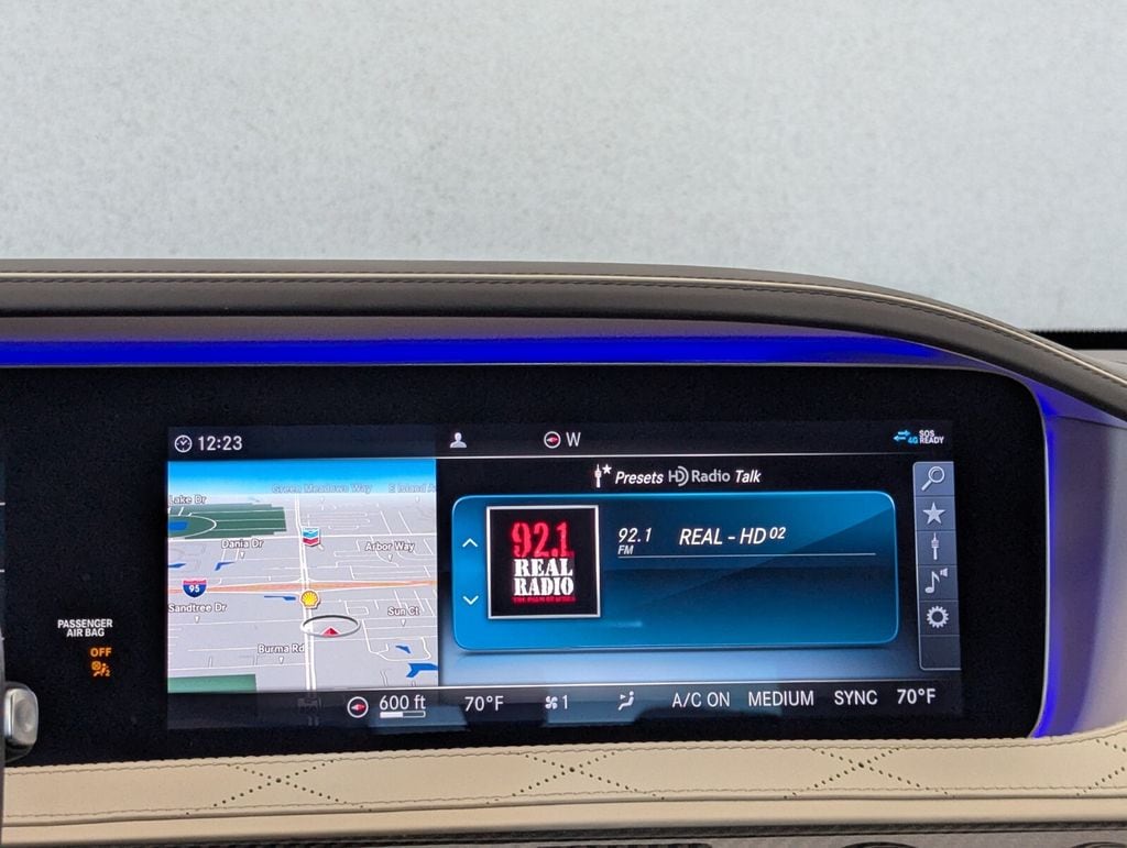 Features: 13 Speakers, 4-Wheel Disc Brakes, ABS brakes, Adaptive suspension, Air Conditioning, Alloy wheels, AM/FM radio: SiriusXM, Android Auto®, Apple CarPlay®, Apple CarPlay®/Android Auto®, Auto High-beam Headlights, Auto tilt-away steering wheel, Auto-dimming door mirrors, Auto-dimming Rear-View mirror, Auto-leveling suspension, Automatic temperature control, Brake assist, Bumpers: body-color, Burmester® Surround Sound System, Child-Seat-Sensing Airbag, Compass, Delay-off headlights, Door auto-latch, Driver door bin, Driver vanity mirror, Dual front impact airbags, Dual front side impact airbags, Electronic Stability Control, Emergency communication system: eCall Emergency System, Four wheel independent suspension, Front anti-roll bar, Front Bucket Seats, Front Center Armrest, Front dual zone A/C, Front reading lights, Garage door transmitter: Homelink, Genuine wood console insert, Genuine wood door panel insert, Head restraints memory, Heated door mirrors, Heated front seats, HVAC memory, Illuminated entry, Knee airbag, Leather steering wheel, Low tire pressure warning, Memory seat, Navigation System, Occupant sensing airbag, Outside temperature display, Overhead airbag, Overhead console, Panic alarm, Passenger door bin, Passenger vanity mirror, Perforated Nappa Leather Upholstery, Power adjustable front head restraints, Power adjustable rear head restraints, Power door mirrors, Power driver seat, Power Front Seats w/Memory, Power moonroof: Panorama, Power passenger seat, Power steering, Power windows, Pre-Wiring for CD Player, Radio data system, Radio: COMAND® w/Navigation, Rain sensing wipers, Rear anti-roll bar, Rear fog lights, Rear reading lights, Rear seat center armrest, Rear side impact airbag, Rear Window Blind, Rear window defroster, Remote keyless entry, Security system, SiriusXM Satellite Radio, Smartphone Integration, Speed control, Speed-sensing steering, Sport steering wheel, Steering wheel memory, Steering wheel mounted audio controls, Tachometer, Telescoping steering wheel, Tilt steering wheel, Traction control, Trip computer, Turn signal indicator mirrors, Variably intermittent wipers, Ventilated front seats, Weather band radio, and Wheels: 20" AMG® 5-Spoke Titanium w/Black Accents.