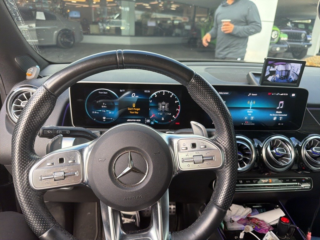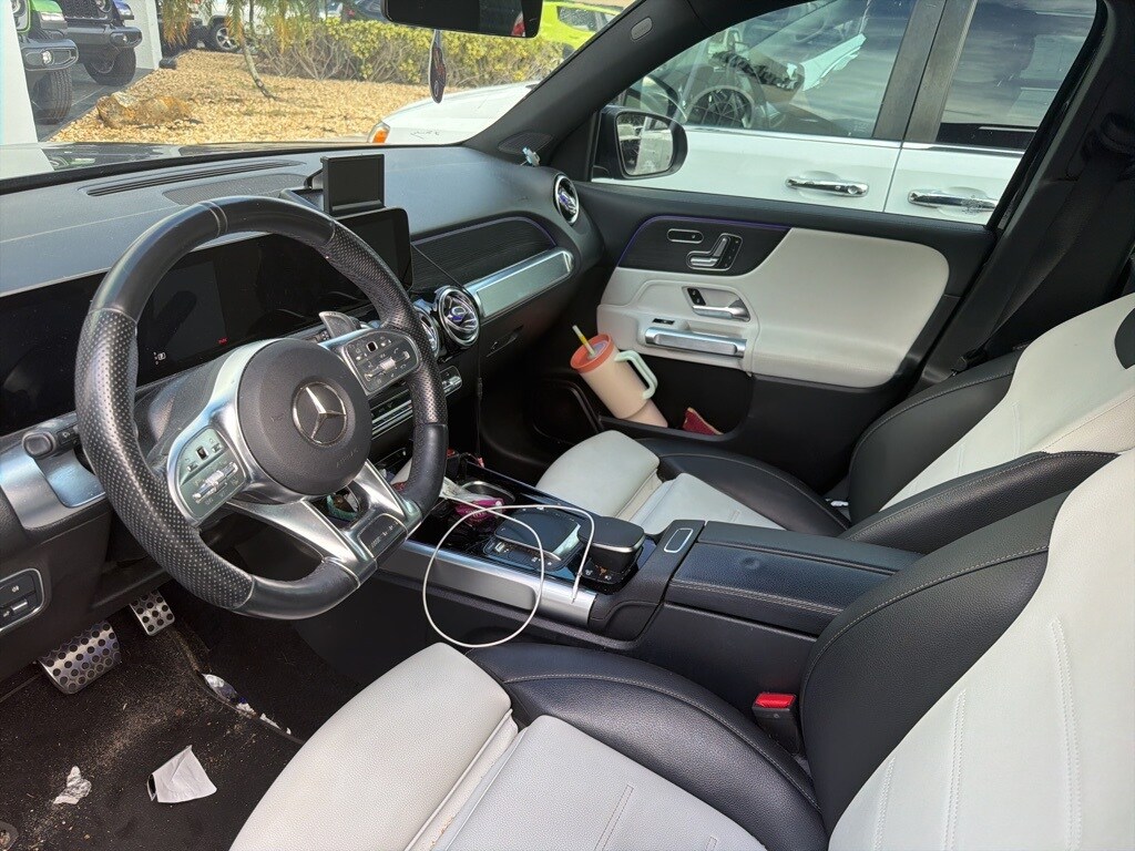 This GLB is well equipped with 10.25" Media Display w/Touchscreen, 19" AMG® Twin 5-Spoke Wheels, 4-Way Lumbar Support, 4-Wheel Disc Brakes, 8 Speakers, ABS brakes, Adaptive suspension, Air Conditioning, Alloy wheels, AM/FM radio, Android Auto®, Apple CarPlay®, Apple CarPlay®/Android Auto®, Automatic temperature control, Axle Ratio: TBD, Brake assist, Bumpers: body-color, Child-Seat-Sensing Airbag, Delay-off headlights, Driver door bin, Driver vanity mirror, Dual front impact airbags, Dual front side impact airbags, Electronic Stability Control, Emergency communication system: Mercedes-Benz Emergency Call Service, Extended Mobility Tires, Exterior Parking Camera Rear, Four wheel independent suspension, Front anti-roll bar, Front Bucket Seats, Front Center Armrest, Front dual zone A/C, Front fog lights, Front reading lights, Fully automatic headlights, HD Radio, Heated door mirrors, Illuminated entry, Knee airbag, Low tire pressure warning, MB-Tex Upholstery, MBUX Voice Control, Memory seat, Occupant sensing airbag, Outside temperature display, Overhead airbag, Overhead console, Panic alarm, Passenger door bin, Passenger vanity mirror, Power door mirrors, Power driver seat, Power Front Seats w/Memory, Power Liftgate, Power passenger seat, Power steering, Power windows, Premium audio system: MBUX, Radio data system, Radio: MBUX Multimedia System, Rain sensing wipers, Rear anti-roll bar, Rear fog lights, Rear reading lights, Rear window defroster, Rear window wiper, Remote keyless entry, Roof rack: rails only, Security system, Smartphone Integration, Speed control, Speed-sensing steering, Split folding rear seat, Spoiler, Sport steering wheel, Steering wheel mounted audio controls, Tachometer, Telescoping steering wheel, Tilt steering wheel, Traction control, Trip computer, Turn signal indicator mirrors, and Variably intermittent wipers.