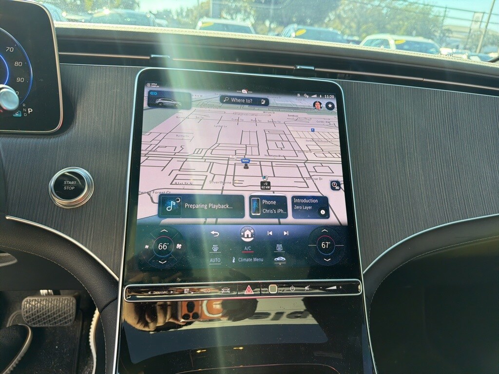 This EQE is well equipped with Premium Trim Package, 15 Speakers, 20" x 8.5J AMG® 5-Spoke Wheels, 4-Wheel Disc Brakes, ABS brakes, Air Conditioning, Alloy wheels, Apple CarPlay®/Android Auto®, Auto High-beam Headlights, Auto tilt-away steering wheel, Auto-dimming door mirrors, Auto-dimming Rear-View mirror, Automatic temperature control, Axle Ratio: TBD, Brake assist, Bumpers: body-color, Burmester® Sound System, Compass, Delay-off headlights, Driver door bin, Driver vanity mirror, Dual front impact airbags, Dual front side impact airbags, Electronic Stability Control, Emergency communication system: eCall Emergency System, Exterior Parking Camera Rear, Four wheel independent suspension, Front anti-roll bar, Front Bucket Seats, Front Center Armrest, Front dual zone A/C, Front reading lights, Garage door transmitter: HomeLink, Head restraints memory, Heated door mirrors, Heated front seats, Heated Power Front Seats w/Memory, HVAC memory, Illuminated entry, Knee airbag, Leather steering wheel, Low tire pressure warning, MBUX EQ Navigation Services, MBUX Navigation, Memory seat, Navigation system: Navigation with Electric Intelligence, Occupant sensing airbag, Outside temperature display, Overhead airbag, Overhead console, Panic alarm, Passenger door bin, Passenger vanity mirror, Power adjustable front head restraints, Power door mirrors, Power driver seat, Power Liftgate, Power moonroof: Panorama, Power passenger seat, Power steering, Power windows, Premium audio system: MBUX, Radio data system, Radio: MBUX Multimedia System, Rain sensing wipers, Rear anti-roll bar, Rear reading lights, Rear seat center armrest, Rear window defroster, Rear window wiper, Remote keyless entry, Security system, SiriusXM Satellite Radio w/Trial Period, Speed control, Speed-sensing steering, Speed-Sensitive Wipers, Split folding rear seat, Spoiler, Steering wheel memory, Steering wheel mounted audio controls, Telescoping steering wheel, Tilt steering wheel, Traction control, Trip computer, Turn signal indicator mirrors, Variably intermittent wipers, and Wireless Smartphone Integration.