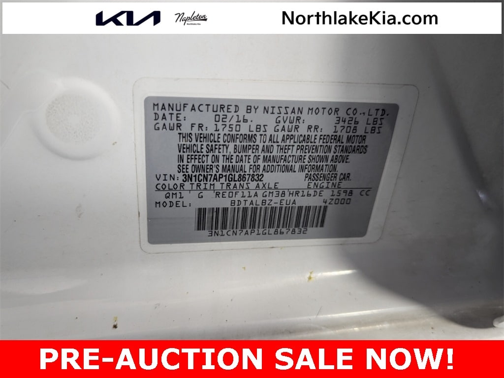 2016 Nissan Versa 1.6 SV Beautifully finished in Fresh Powder with Charcoal Cloth interior. 1.6L I4 DOHC 16V 4D Sedan FWD CVT with Xtronic ABS brakes, Electronic Stability Control, Illuminated entry, Low tire pressure warning, Remote keyless entry, Traction control. 31/40 City/Highway MPG