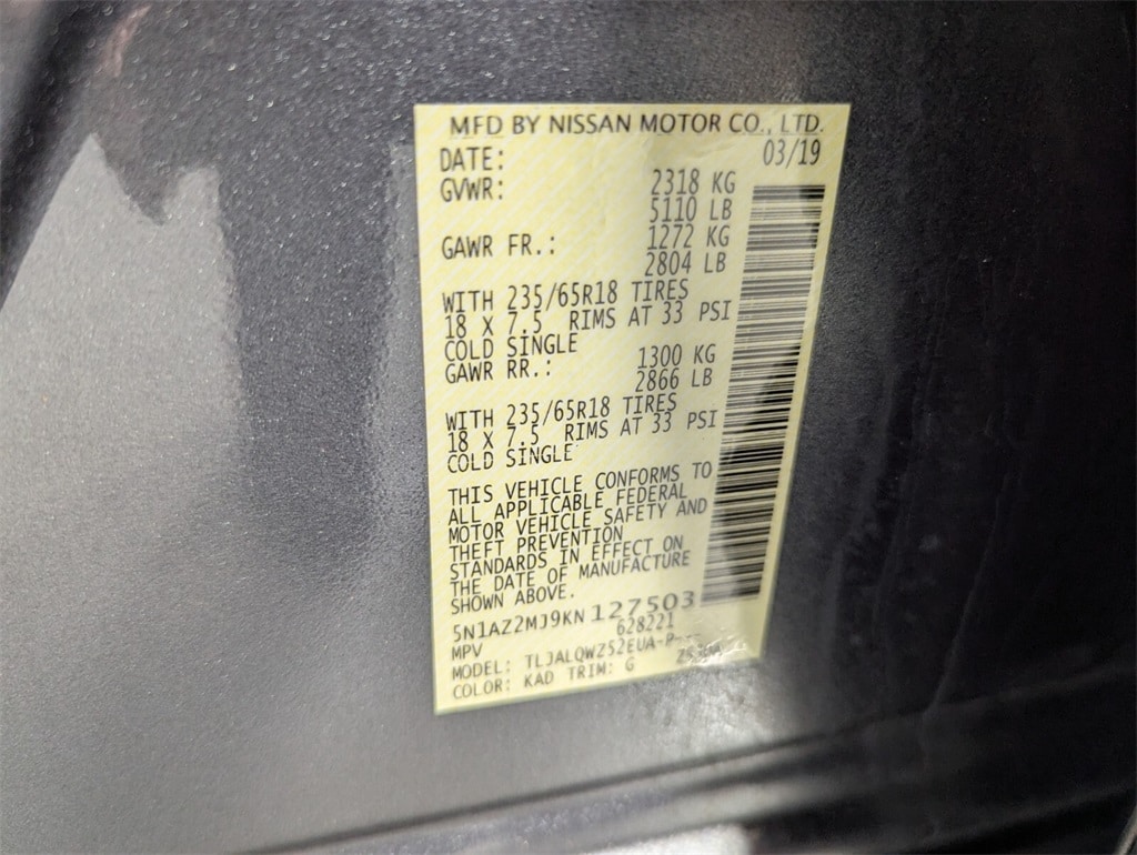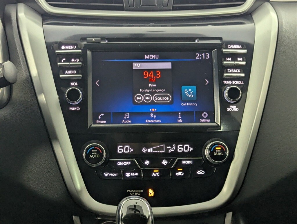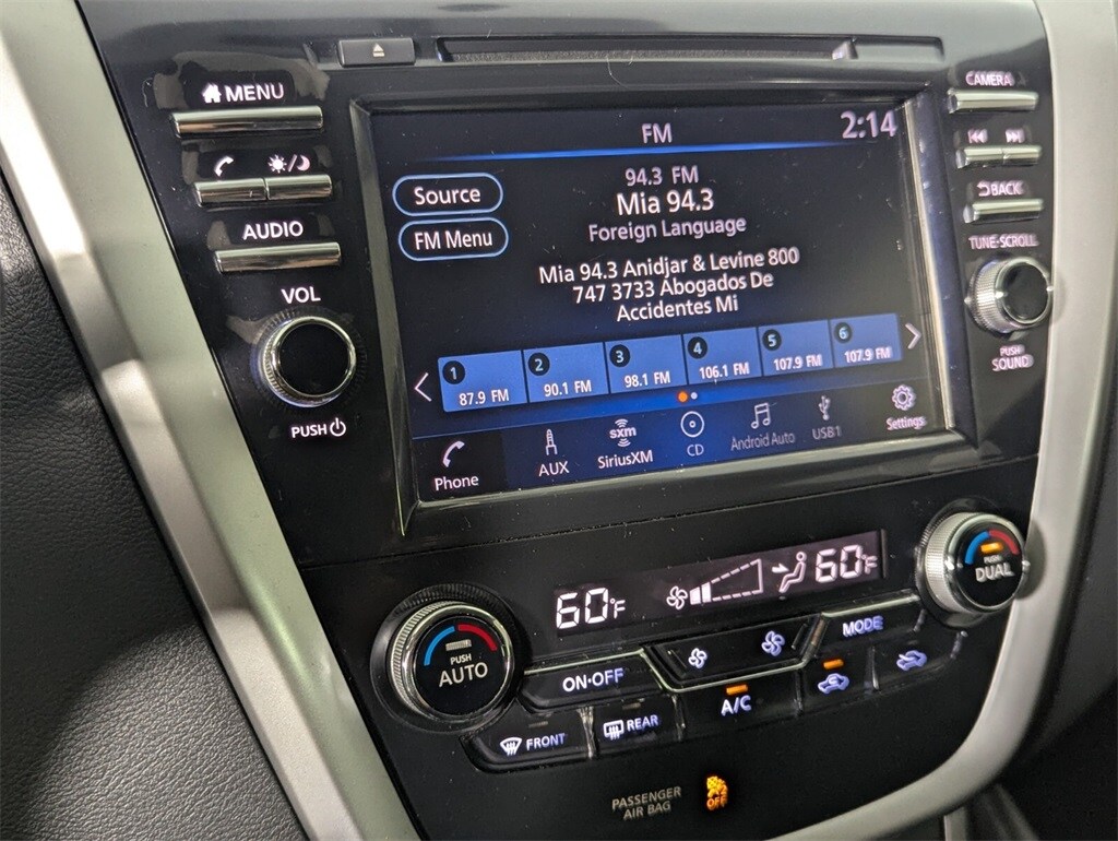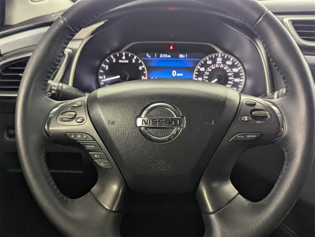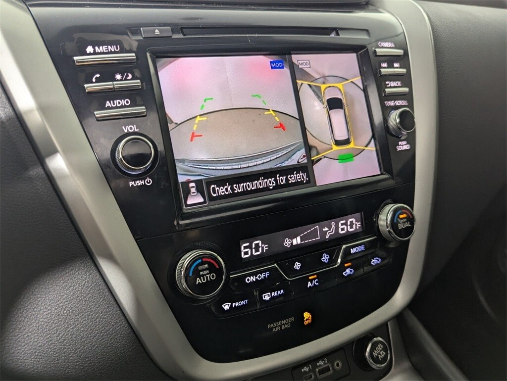 2019 Nissan Murano SV Beautifully finished in Gun Metallic with Graphite Cloth interior. 3.5L V6 DOHC 24V 4D Sport Utility FWD CVT with Xtronic CVT with Xtronic, 4-Wheel Disc Brakes, 4.667 Axle Ratio, 6 Speakers, ABS brakes, Air Conditioning, Alloy wheels, AM/FM radio: SiriusXM, AM/FM/CD/MP3/WMA Audio System, Auto-dimming Rear-View mirror, Automatic temperature control, Blind Spot Warning, BOSE Premium Audio System w/11 Speakers, Brake assist, Bumpers: body-color, Cargo Area Protector, Cargo Net, Cargo Package, Carpeted Floor Mats & Carpeted Cargo Mat, CD player, Child-Seat-Sensing Airbag, Cloth Seat Trim, Delay-off headlights, Driver door bin, Driver vanity mirror, Dual front impact airbags, Dual front side impact airbags, Electronic Stability Control, First Aid Kit, Four wheel independent suspension, Front & Rear Parking Sensors, Front anti-roll bar, Front Bucket Seats, Front Center Armrest, Front dual zone A/C, Front reading lights, Fully automatic headlights, Garage door transmitter: HomeLink, Heated Front Bucket Seats, Heated Outside Mirrors, Illuminated entry, Intelligent Around View Monitor (I-AVM), Intelligent Cruise Control, Knee airbag, Leather Shift Knob, LED Fog Lights, Low tire pressure warning, NissanConnect featuring Apple CarPlay and Android Auto, Occupant sensing airbag, Outside temperature display, Overhead airbag, Overhead console, Panic alarm, Passenger door bin, Passenger vanity mirror, Power door mirrors, Power driver seat, Power passenger seat, Power steering, Power windows, Premium Package, Radio data system, Rear anti-roll bar, Rear Bumper Protector, Rear reading lights, Rear seat center armrest, Rear side impact airbag, Rear window defroster, Rear window wiper, Remote keyless entry, Retractable Cargo Cover, Roof rack: rails only, Security system, Speed control, Speed-sensing steering, Speed-Sensitive Wipers, Splash Guards, Split folding rear seat, Spoiler, Steering wheel mounted audio controls, Tachometer, Telescoping steering wheel, Tilt steering wheel, Traction control, Trip computer, Turn signal indicator mirrors, Variably intermittent wipers, Wheels: 18" Machined Aluminum-Alloy, CVT with Xtronic. CARFAX One-Owner. Priced below KBB Fair Purchase Price! 20/28 City/Highway MPG