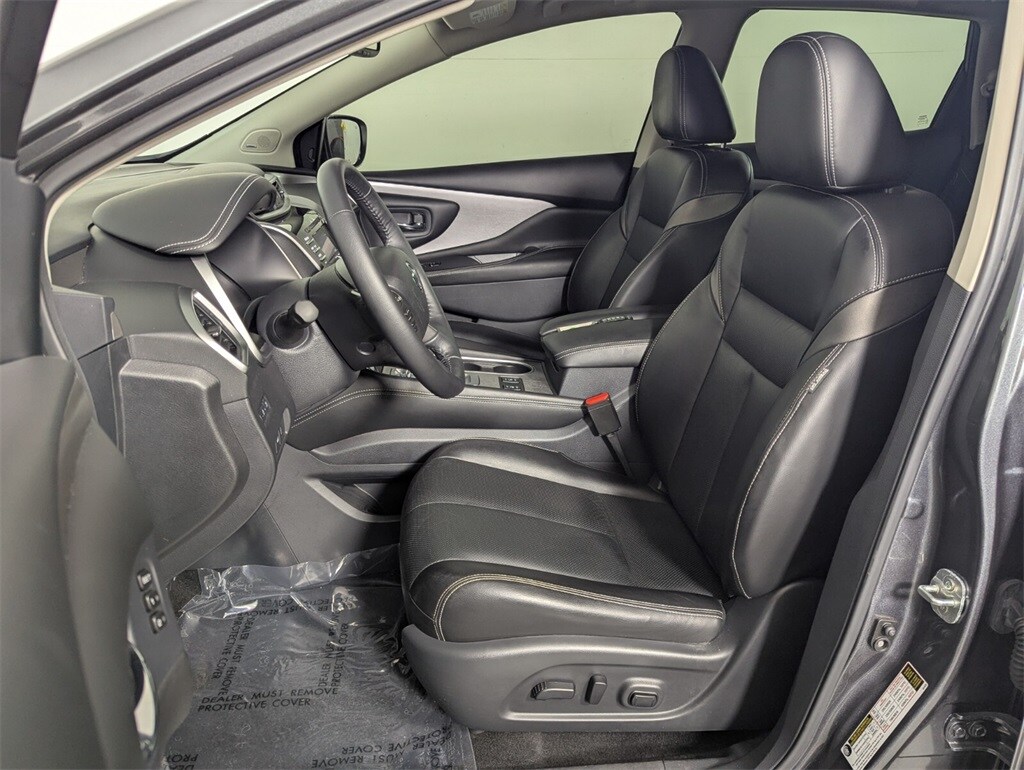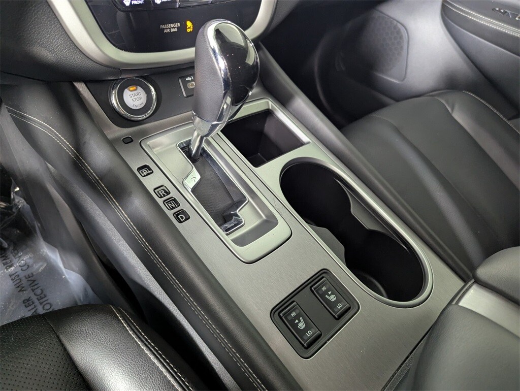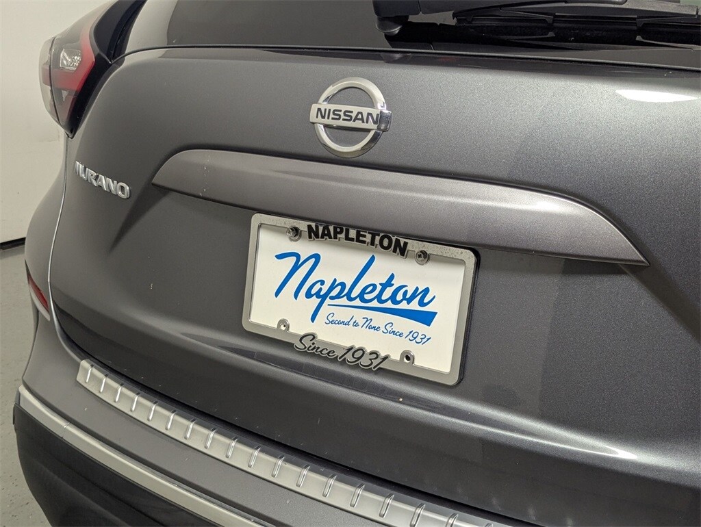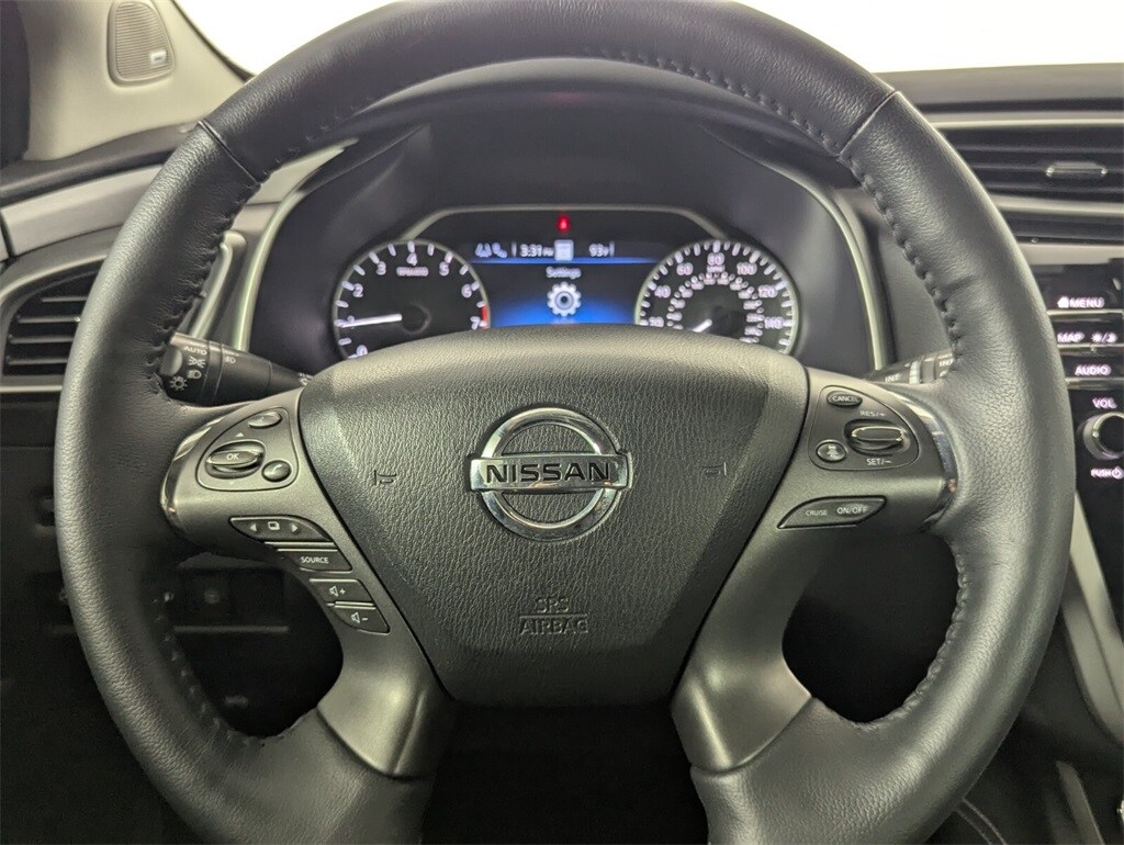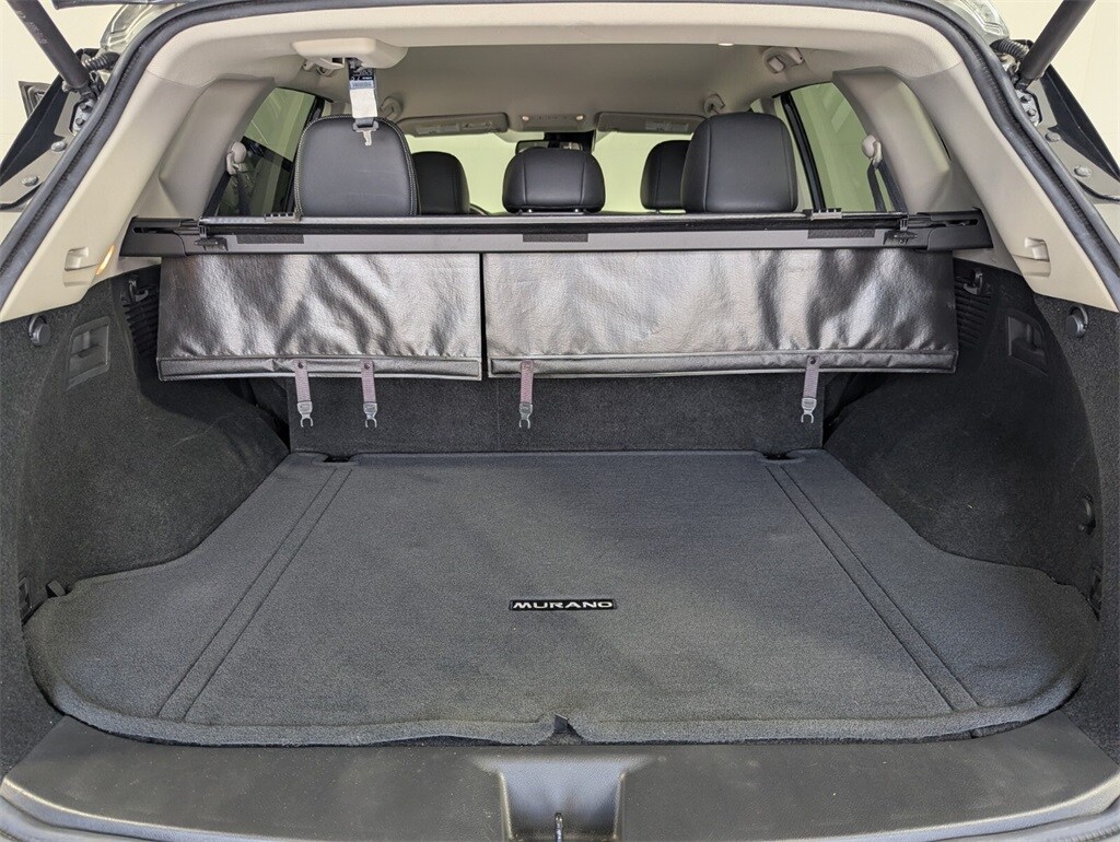 This Murano is well equipped with Cargo Package (Cargo Area Protector, Cargo Net, First Aid Kit, and Retractable Cargo Cover), CVT with Xtronic, 11 Speakers, 4-Wheel Disc Brakes, 4.667 Axle Ratio, ABS brakes, Air Conditioning, Alloy wheels, AM/FM radio: SiriusXM, AM/FM/CD/MP3/WMA Audio System, Auto High-beam Headlights, Auto-dimming Rear-View mirror, Automatic temperature control, Blind Spot Warning, Brake assist, Bumpers: body-color, Carpeted Floor Mats & Carpeted Cargo Mat, CD player, Child-Seat-Sensing Airbag, Compass, Delay-off headlights, Driver door bin, Driver vanity mirror, Dual front impact airbags, Dual front side impact airbags, Electronic Stability Control, Exterior Accent Lighting, Exterior Parking Camera Rear, Four wheel independent suspension, Front anti-roll bar, Front Bucket Seats, Front Center Armrest, Front dual zone A/C, Front fog lights, Front reading lights, Fully automatic headlights, Garage door transmitter: HomeLink, Heated door mirrors, Heated Front Bucket Seats, Heated front seats, Heated rear seats, Heated steering wheel, Illuminated entry, Knee airbag, Leather Shift Knob, Leather-Appointed Seat Trim, Low tire pressure warning, Memory seat, Navigation system: NissanConnect Navigation, NissanConnect featuring Apple CarPlay and Android Auto, Occupant sensing airbag, Outside temperature display, Overhead airbag, Overhead console, Panic alarm, Passenger door bin, Passenger vanity mirror, Power door mirrors, Power driver seat, Power Liftgate, Power passenger seat, Power steering, Power windows, Radio data system, Rear anti-roll bar, Rear Bumper Protector, Rear reading lights, Rear seat center armrest, Rear side impact airbag, Rear window defroster, Rear window wiper, Remote keyless entry, Roof rack: rails only, Security system, Speed control, Speed-sensing steering, Speed-Sensitive Wipers, Splash Guards, Split folding rear seat, Spoiler, Steering wheel mounted audio controls, Tachometer, Telescoping steering wheel, Tilt steering wheel, Traction control, Trip computer, Turn signal indicator mirrors, Variably intermittent wipers, and Wheels: 20" Machined Aluminum-Alloy.