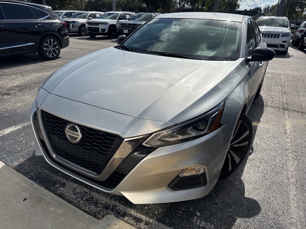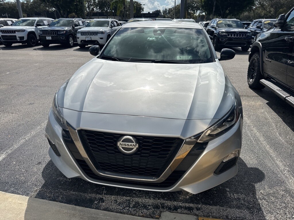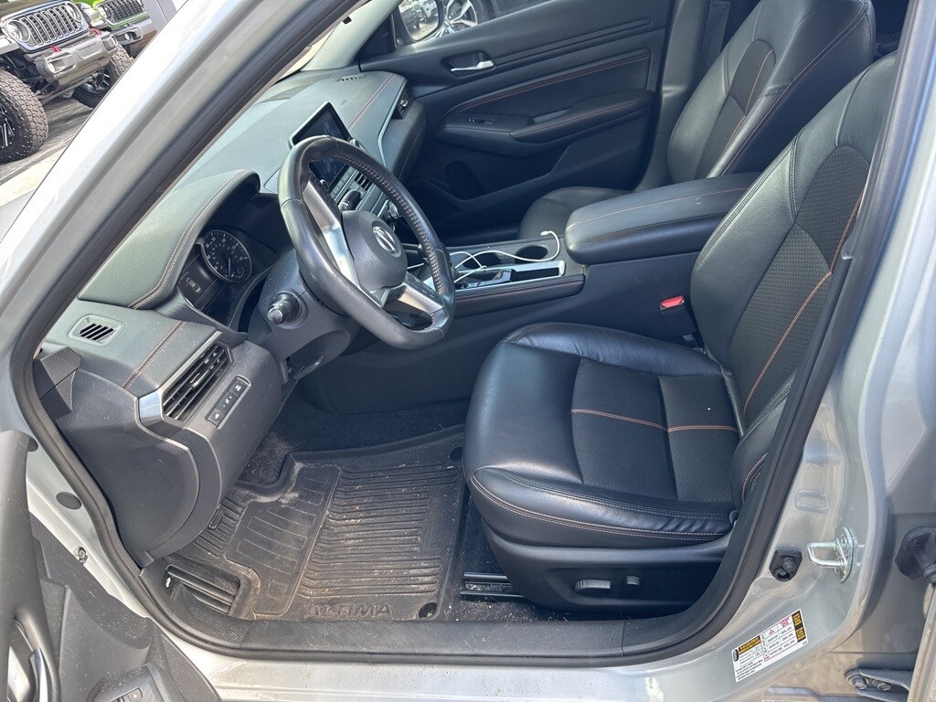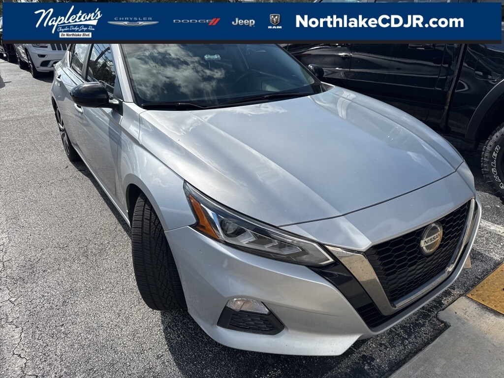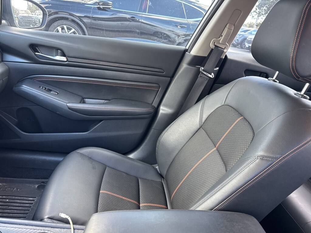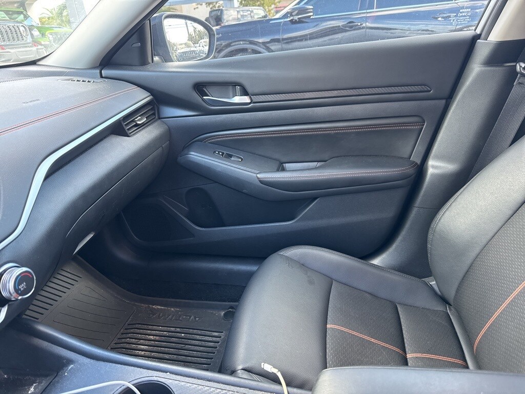 This Altima is well equipped with CVT with Xtronic, 4-Wheel Disc Brakes, 6 Speakers, ABS brakes, Air Conditioning, Alloy wheels, AM/FM radio: SiriusXM, Auto High-beam Headlights, Blind Spot Warning, Body-Colored Splash Guards, Brake assist, Bumpers: body-color, Chrome Bumper Protector, Delay-off headlights, Driver door bin, Driver vanity mirror, Dual front impact airbags, Dual front side impact airbags, Electronic Stability Control, Four wheel independent suspension, Front anti-roll bar, Front Bucket Seats, Front Center Armrest, Front reading lights, Front Sport Bucket Seats, Fully automatic headlights, Illuminated entry, Knee airbag, Leather Shift Knob, Low tire pressure warning, NissanConnect featuring Apple CarPlay and Android Auto, Occupant sensing airbag, Outside temperature display, Overhead airbag, Overhead console, Panic alarm, Passenger door bin, Passenger vanity mirror, Power door mirrors, Power driver seat, Power steering, Power windows, Radio data system, Radio: AM/FM Audio System, Rear anti-roll bar, Rear Parking Sensors, Rear reading lights, Rear seat center armrest, Rear side impact airbag, Rear window defroster, Remote keyless entry, Security system, Speed control, Speed-sensing steering, Speed-Sensitive Wipers, Split folding rear seat, Sport Seat Trim, Sport steering wheel, SR Floor Mats/Trunk Mat/Hideaway Nets, Steering wheel mounted audio controls, Tachometer, Telescoping steering wheel, Tilt steering wheel, Traction control, Trip computer, Trunk Organizer Tray, Variably intermittent wipers, and Wheels: 19" Machined Alloy.