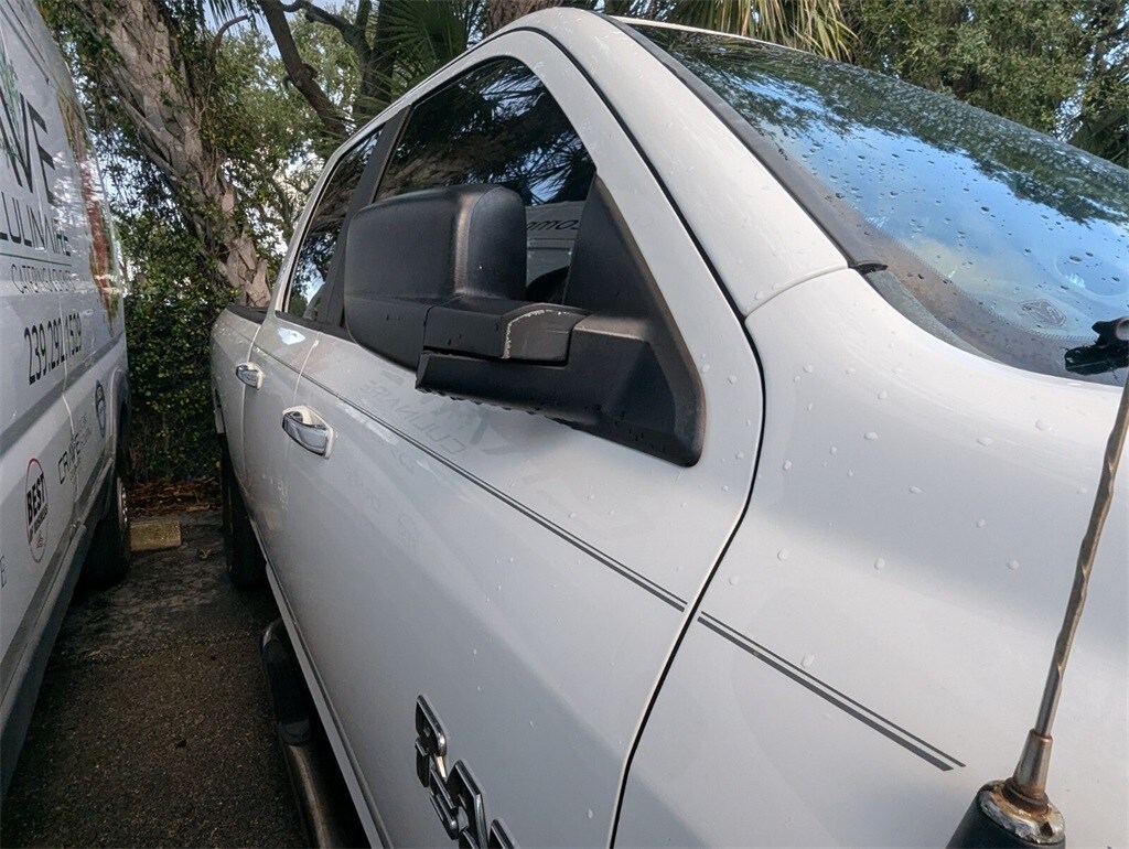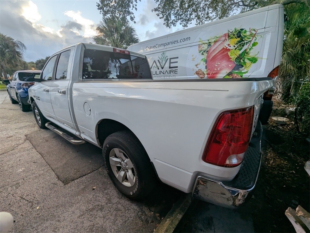 2014 Ram 1500 SLT Beautifully finished in Bright White Clearcoat with Black Cloth interior. HEMI 5.7L V8 Multi Displacement VVT 4D Quad Cab RWD 8-Speed Automatic 17" x 7" Aluminum Wheels, 3.21 Rear Axle Ratio, 4-Wheel Disc Brakes, 40/20/40 Split Bench Seat, 6 Speakers, ABS brakes, Active Grille Shutters, Air Conditioning, Alloy wheels, AM/FM radio, Black Exterior Mirrors, Brake assist, Bumpers: chrome, Center Hub, Charge Only Remote USB Port, Cloth 40/20/40 Bench Seat, Compass, Delay-off headlights, Driver door bin, Dual front impact airbags, Dual front side impact airbags, Electronic Shift, Electronic Stability Control, Exterior Mirrors w/Heating Element, Front anti-roll bar, Front Armrest w/Three Cupholders, Front Center Armrest w/Storage, Front reading lights, Front wheel independent suspension, Fully automatic headlights, Heated door mirrors, Illuminated entry, Integrated Voice Command w/Bluetooth, Low tire pressure warning, Occupant sensing airbag, Outside temperature display, Overhead airbag, Overhead console, Panic alarm, Passenger door bin, Passenger vanity mirror, Power door mirrors, Power steering, Power windows, Quick Order Package 26G SLT, Radio data system, Radio: Uconnect 5.0 AM/FM/BT, Rear anti-roll bar, Rear step bumper, Remote keyless entry, Rotary Shifter, SIRIUSXM Satellite Radio, Speed control, Tachometer, Tilt steering wheel, Tip Start, Traction control, Trip computer, Variably intermittent wipers, Voltmeter.