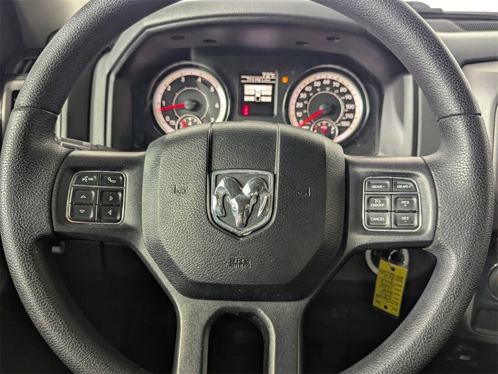 This 1500 is well equipped with Popular Equipment Group (1-Yr SIRIUSXM Radio Service, 40/20/40 Split Bench Seat, Cloth 40/20/40 Bench Seat, For More Info, Call 800-643-2112, Front Armrest w/3 Cupholders, No Satellite Coverage w/AK/HI/PR/VI, Rear Folding Seat, Remote Keyless Entry w/All-Secure, SIRIUSXM Satellite Radio, and Storage Tray), Quick Order Package 26J Express (17" x 7" Aluminum Wheels, Body Color Front Fascia, Body Color Grille, Body Color Rear Bumper w/Step Pads, Carpet Floor Covering, Center Hub, Delete Class IV Receiver Hitch, Delete Spray In Bedliner, Dual Rear Exhaust w/Bright Tips, Fog Lamps, Front & Rear Floor Mats, and Ram 1500 Express), 17" x 7" Steel Wheels, 3.21 Rear Axle Ratio, 4-Wheel Disc Brakes, 6 Speakers, ABS brakes, Active Grille Shutters, Air Conditioning, AM/FM radio, Audio Jack Input for Mobile Devices, Black Exterior Mirrors, Black Rotary Shifter, Brake assist, Delay-off headlights, Driver door bin, Dual front impact airbags, Dual front side impact airbags, Electronic Shift, Electronic Stability Control, Exterior Mirrors w/Heating Element, Front anti-roll bar, Front Center Armrest, Front wheel independent suspension, Fully automatic headlights, Heated door mirrors, Heavy Duty Vinyl 40/20/40 Split Bench Seat, Integrated Voice Command w/Bluetooth, Low tire pressure warning, Media Hub (USB, AUX), Occupant sensing airbag, Overhead airbag, Passenger door bin, Power door mirrors, Power steering, Power windows, Radio data system, Radio: Uconnect 3.0, Radio: Uconnect 3.0 (UA1), Rear anti-roll bar, Rear seat center armrest, Rear step bumper, Remote USB Port, Speed control, Tachometer, Tilt steering wheel, Tip Start, Traction control, Variably intermittent wipers, Voltmeter, and Wheels: 20" x 9" Aluminum Chrome Clad.