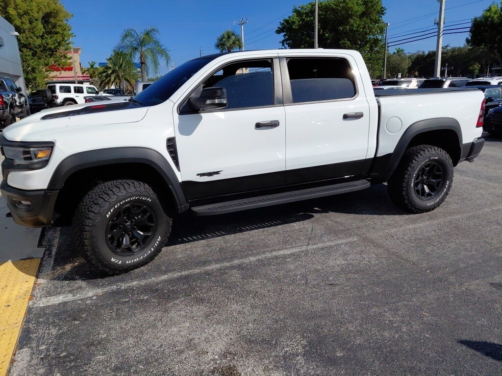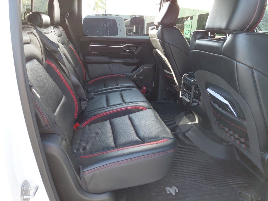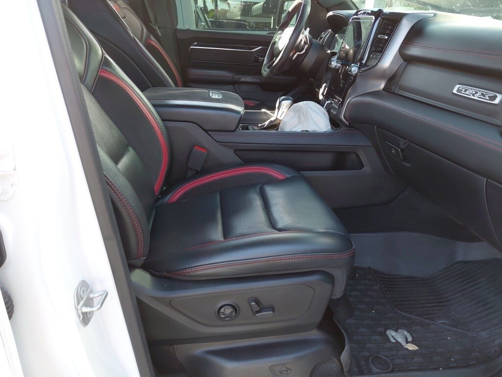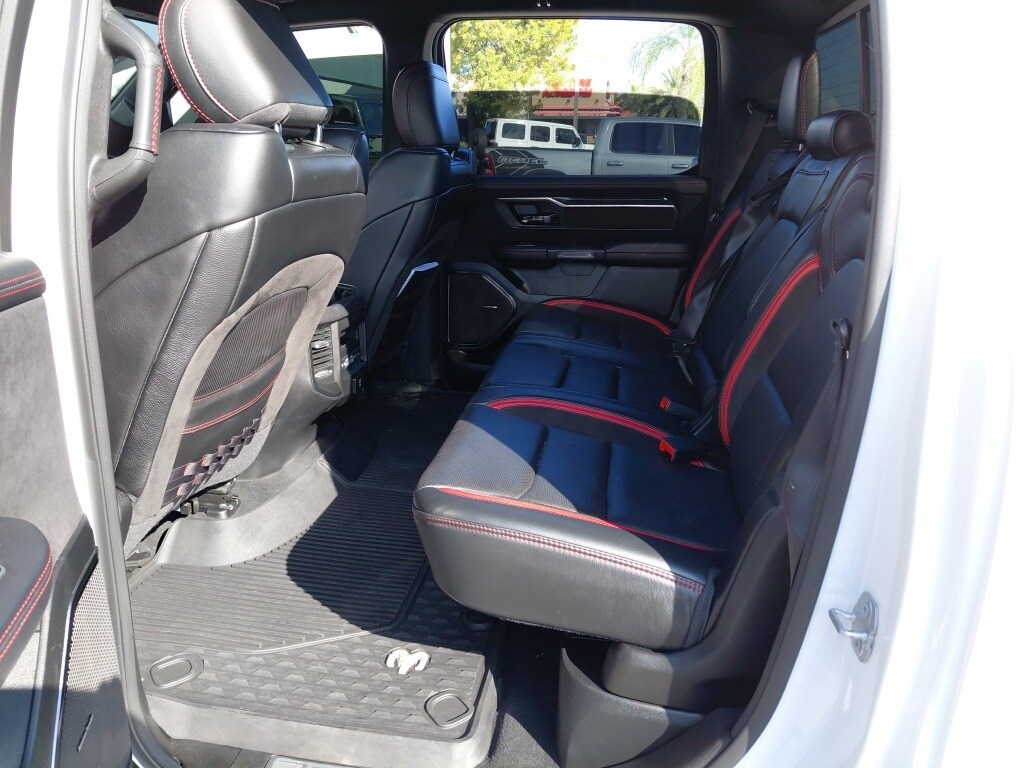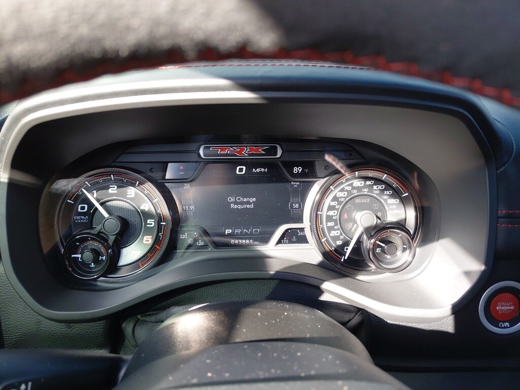 This 1500 is well equipped with Advanced Safety Group (Adaptive Cruise Control w/Stop & Go, Lane Keep Assist, and Pedestrian Emergency Braking), Quick Order Package 29Y, Technology Group (Heads-Up Display, LED CHMSL Lamp, and Rearview Autodim Digital Display Mirror), Trailer Tow Group (Trailer Brake Control, Trailer Light Check, and Trailer Tire Pressure Monitoring System), TRX Level 2 Equipment Group (4 Way Front Headrests, Blind Spot & Cross Path Detection, Body Color Door Handles, Bucket Seats, Driver Seat Memory, Driver/Passenger Wrapped Assist Handles, Exterior Mirrors w/Memory, Front Door Accent Lighting, Full Length Premium Upgraded Floor Console, Heated Front Seats, Heated Second Row Seats, Heated Steering Wheel, IP LED Ambient Light Pipe, Leather Trimmed Bucket Seats, Leather/Suede Flat-Bottom Steering Wheel, Luxury Front Door Trim Panel, ParkSense Front/Rear Park Assist w/Stop, Pick-Up Box Lighting, Power 4-Way Driver Lumbar Adjust, Power 4-Way Passenger Lumbar Adjust, Power 8-Way Driver & Passenger Seats, Power Adjustable Pedals w/Memory, Premium Wrapped IP Bezel, Radio/Driver Seat/Mirrors/Pedals Memory, Rain Sensitive Windshield Wipers, Rear 60/40 Folding Split Recline Seat, Rear Door Accent Lighting, Rear Underseat Compartment Storage, Rear Window Defroster, Remote Proximity Keyless Entry, Remote Start System, Remote Tailgate Release, Sun Visors w/Illuminated Vanity Mirrors, Surround View Camera System, Universal Garage Door Opener, Ventilated Front Seats, Ventilated Rear Seats, and Wireless Charging Pad), 10 Speakers, 3.55 Rear Axle Ratio, 4-Wheel Disc Brakes, ABS brakes, Adaptive suspension, Air Conditioning, Alloy wheels, AM/FM radio: SiriusXM with 360L, Apple CarPlay/Android Auto, Auto High-beam Headlights, Auto-dimming door mirrors, Auto-dimming Rear-View mirror, Automatic temperature control, Black Exterior Mirrors, Brake assist, Cloth/Vinyl Bucket Seats, Compass, Delay-off headlights, Dome Dual LED Reading Lamp, Driver door bin, Dual front impact airbags, Dual front side impact airbags, Dual-Pane Panoramic Sunroof, Electronic Stability Control, Emergency communication system: SiriusXM Guardian, Exterior Mirrors Courtesy Lamps, Exterior Mirrors w/Heating Element, Exterior Mirrors w/Supplemental Signals, Front anti-roll bar, Front Bucket Seats, Front Center Armrest w/Storage, Front dual zone A/C, Front fog lights, Front License Plate Bracket, Front reading lights, Front wheel independent suspension, Fully automatic headlights, harman/kardon 19 Speaker Premium Sound, Heated door mirrors, Illuminated entry, Leather Shift Knob, Leather steering wheel, Low tire pressure warning, Manufacturer's Statement of Origin, MOPAR Rambar, MOPAR TRX Exterior Graphics, MOPAR TRX Hood Graphics, Navigation System/ GPS, Occupant sensing airbag, Outside temperature display, Overhead airbag, Overhead console, Panic alarm, ParkView Rear Back-Up Camera, Passenger door bin, Passenger vanity mirror, Power door mirrors, Power driver seat, Power steering, Power windows, Power-Folding Mirrors, Radio data system, Radio: Uconnect 12 w/Navigation, Rear seat center armrest, Rear step bumper, Remote keyless entry, Security system, Speed control, Split folding rear seat, Sport steering wheel, Steering wheel mounted audio controls, Tachometer, Telescoping steering wheel, Tilt steering wheel, Traction control, Trailer Reverse Steering Control, Trip computer, TRX Red Interior Accents, Turn signal indicator mirrors, Variably intermittent wipers, Voltmeter, and Wheels: 18" x 9" Black Paint/Polish Aluminum.