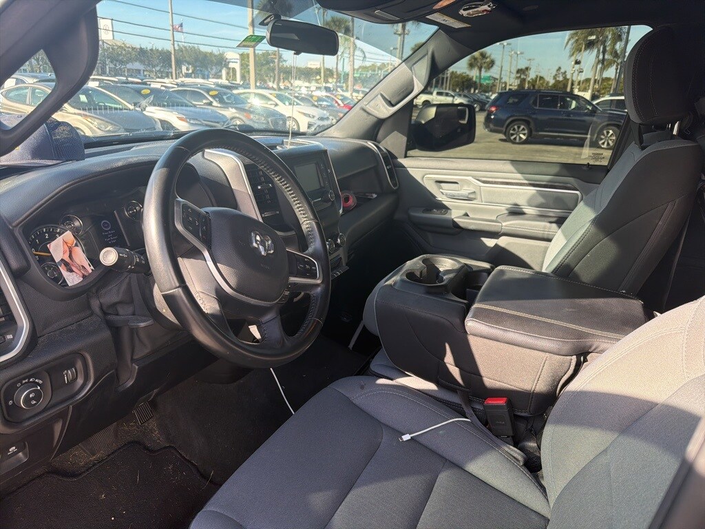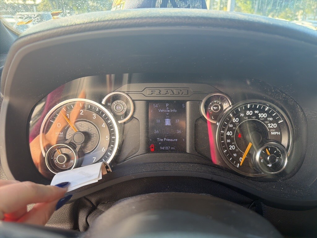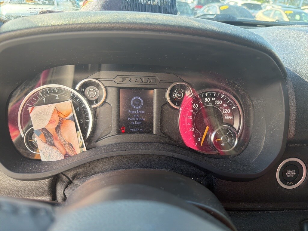 This 1500 is well equipped with Quick Order Package 23Z Big Horn (Big Horn Badge), 3 Rear Seat Head Restraints, 3.21 Rear Axle Ratio, 4 Way Front Headrests, 4-Wheel Disc Brakes, 40/20/40 Split Bench Seat, 48V Belt Starter Generator, 6 Speakers, ABS brakes, Air Conditioning, Alloy wheels, AM/FM radio, Black Exterior Mirrors, Brake assist, Bumpers: chrome, Cloth Bench Seat, Compass, Delay-off headlights, Driver door bin, Dual front impact airbags, Dual front side impact airbags, Electronic Stability Control, Front anti-roll bar, Front Center Armrest w/Storage, Front fog lights, Front reading lights, Front Seat Back Map Pockets, Front wheel independent suspension, Fully automatic headlights, GPS Antenna Input, Heated door mirrors, Illuminated entry, Integrated Voice Command w/Bluetooth, Leather steering wheel, Low tire pressure warning, Manual Adjust 4-Way Front Passenger Seat, Occupant sensing airbag, Outside temperature display, Overhead airbag, Overhead console, Panic alarm, ParkView Rear Back-Up Camera, Passenger door bin, Passenger vanity mirror, Power door mirrors, Power steering, Power windows, Radio data system, Radio: Uconnect 3 w/5" Display, Rear 60/40 Folding Seat, Rear anti-roll bar, Rear seat center armrest, Rear step bumper, Remote keyless entry, Speed control, Split folding rear seat, Steering wheel mounted audio controls, Tachometer, Telescoping steering wheel, Tilt steering wheel, Traction control, Trip computer, Variably intermittent wipers, Voltmeter, and Wheels: 18" x 8" Cast-Aluminum Painted.