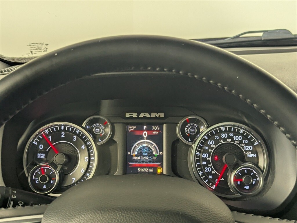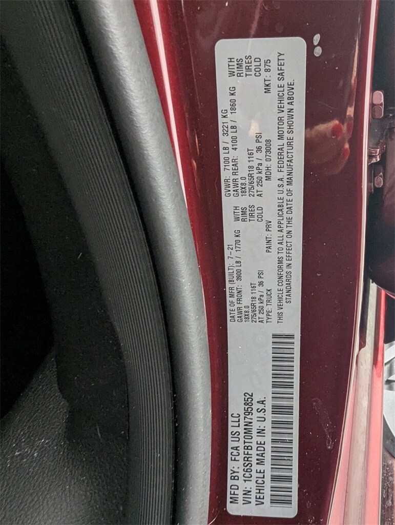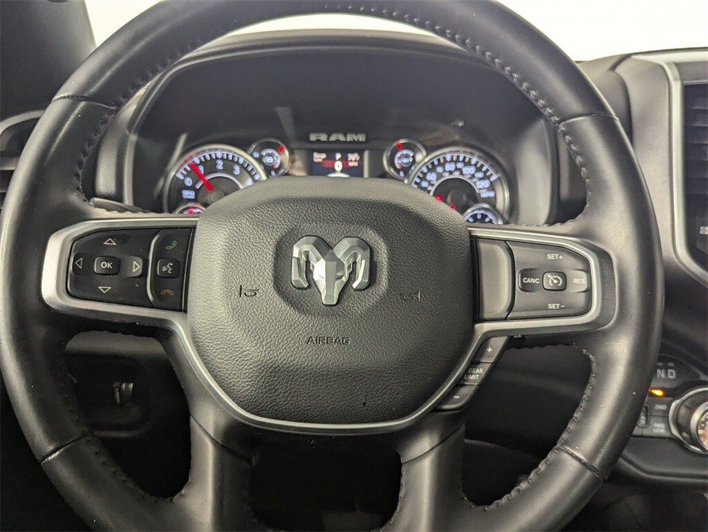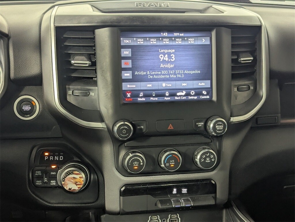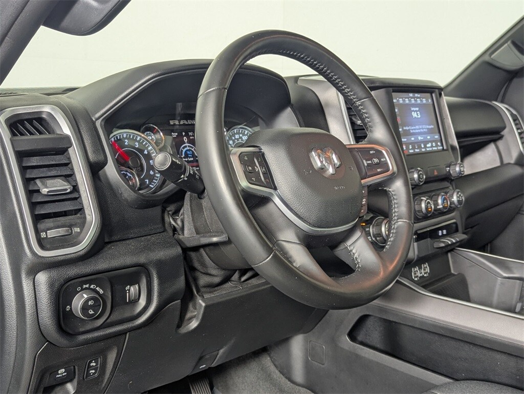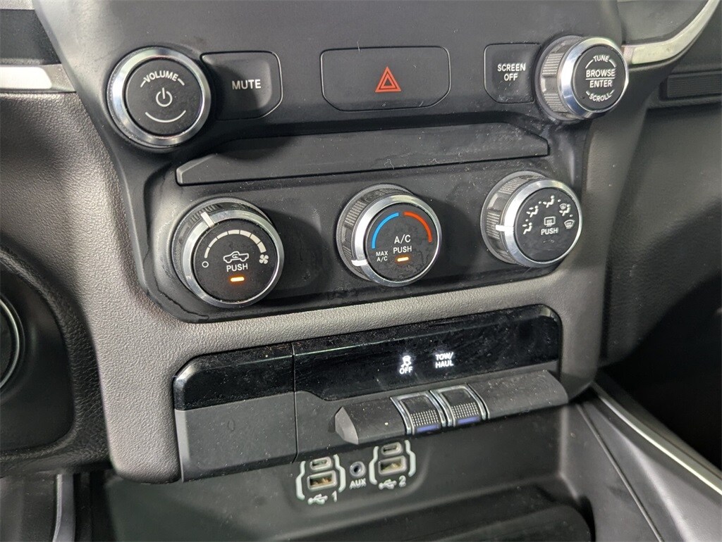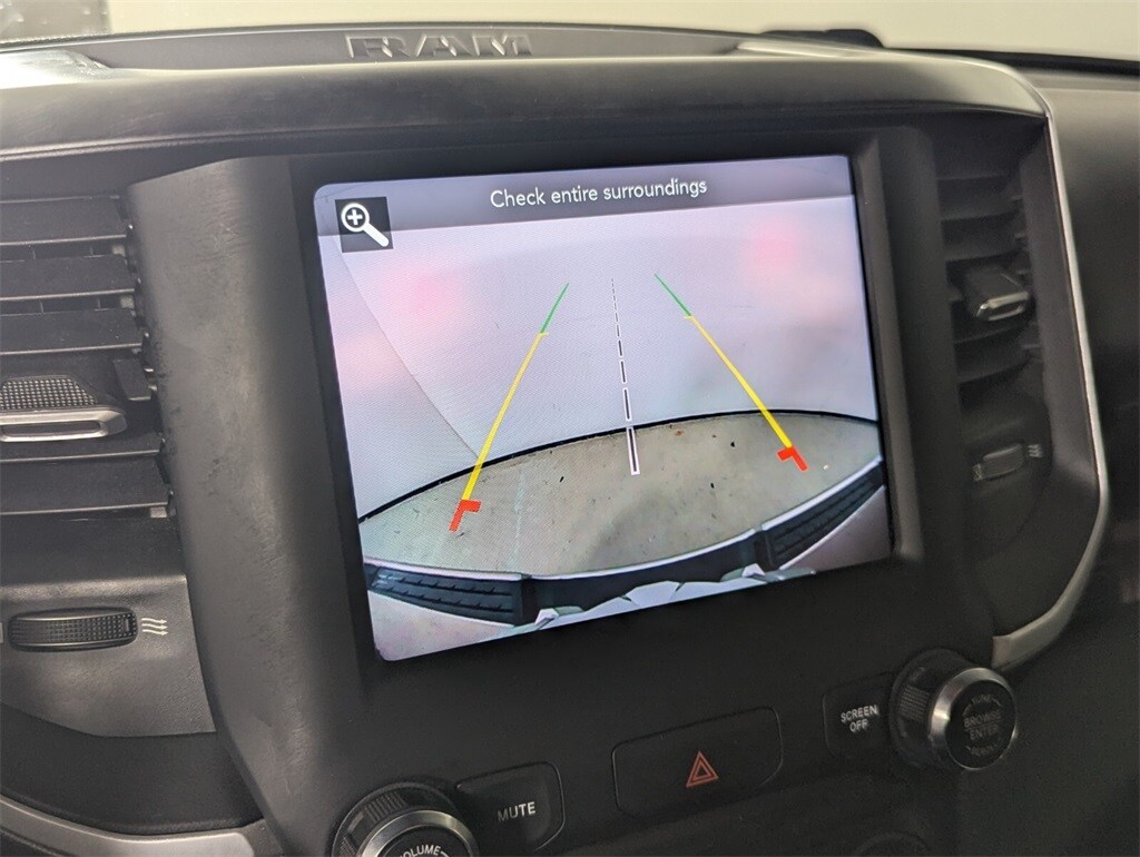 This 1500 is well equipped with Big Horn Level 1 Equipment Group (Auto-Dimming Exterior Driver Mirror, Auto-Dimming Rear-View Mirror, Black Premium Power Mirrors, Class IV Receiver Hitch, Cluster 3.5" TFT Color Display, Exterior Mirrors Courtesy Lamps, Exterior Mirrors w/Supplemental Signals, Foam Bottle Insert (Door Trim Panel), For More Info, Call 800-643-2112, Glove Box Lamp, Power 4-Way Driver Lumbar Adjust, Power 8-Way Driver Seat, Power Adjustable Pedals, Power-Folding Mirrors, Radio: Uconnect 4 w/8.4" Display, Rear Dome w/On/Off Switch Lamp, Rear Power Sliding Window, Rear Window Defroster, SiriusXM Radio Service, SiriusXM Satellite Radio, Sun Visors w/Illuminated Vanity Mirrors, and Universal Garage Door Opener), Quick Order Package 25Z Big Horn (Big Horn Badge), 3 Rear Seat Head Restraints, 3.21 Rear Axle Ratio, 4 Way Front Headrests, 4-Wheel Disc Brakes, 40/20/40 Split Bench Seat, 48V Belt Starter Generator, 6 Speakers, ABS brakes, Air Conditioning, Alloy wheels, AM/FM radio, Black Exterior Mirrors, Brake assist, Bumpers: chrome, Cloth Bench Seat, Compass, Delay-off headlights, Driver door bin, Dual front impact airbags, Dual front side impact airbags, Electronic Stability Control, Front anti-roll bar, Front Center Armrest w/Storage, Front fog lights, Front reading lights, Front Seat Back Map Pockets, Front wheel independent suspension, Fully automatic headlights, GPS Antenna Input, Heated door mirrors, Illuminated entry, Integrated Voice Command w/Bluetooth, Leather steering wheel, Low tire pressure warning, Manual Adjust 4-Way Front Passenger Seat, Occupant sensing airbag, Outside temperature display, Overhead airbag, Overhead console, Panic alarm, ParkView Rear Back-Up Camera, Passenger door bin, Passenger vanity mirror, Power door mirrors, Power steering, Power windows, Radio data system, Radio: Uconnect 3 w/5" Display, Rear 60/40 Folding Seat, Rear anti-roll bar, Rear seat center armrest, Rear step bumper, Remote keyless entry, Remote Start System, Speed control, Split folding rear seat, Steering wheel mounted audio controls, Tachometer, Telescoping steering wheel, Tilt steering wheel, Traction control, Trip computer, Variably intermittent wipers, Voltmeter, and Wheels: 18" x 8" Cast-Aluminum Painted.