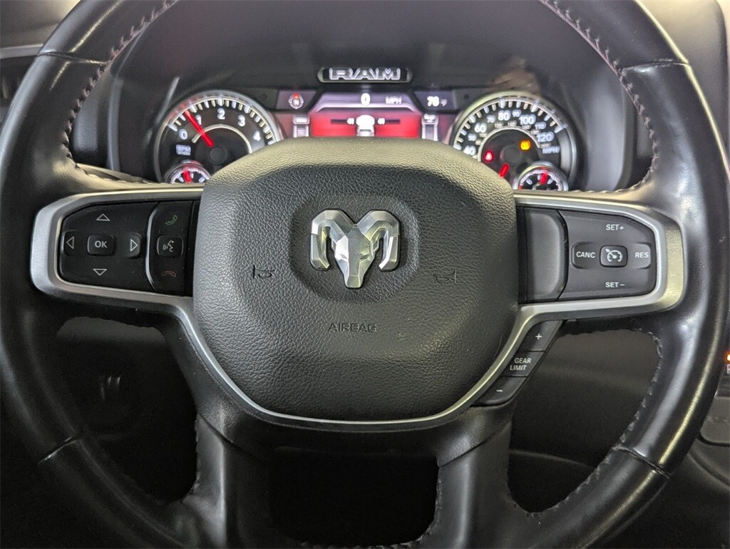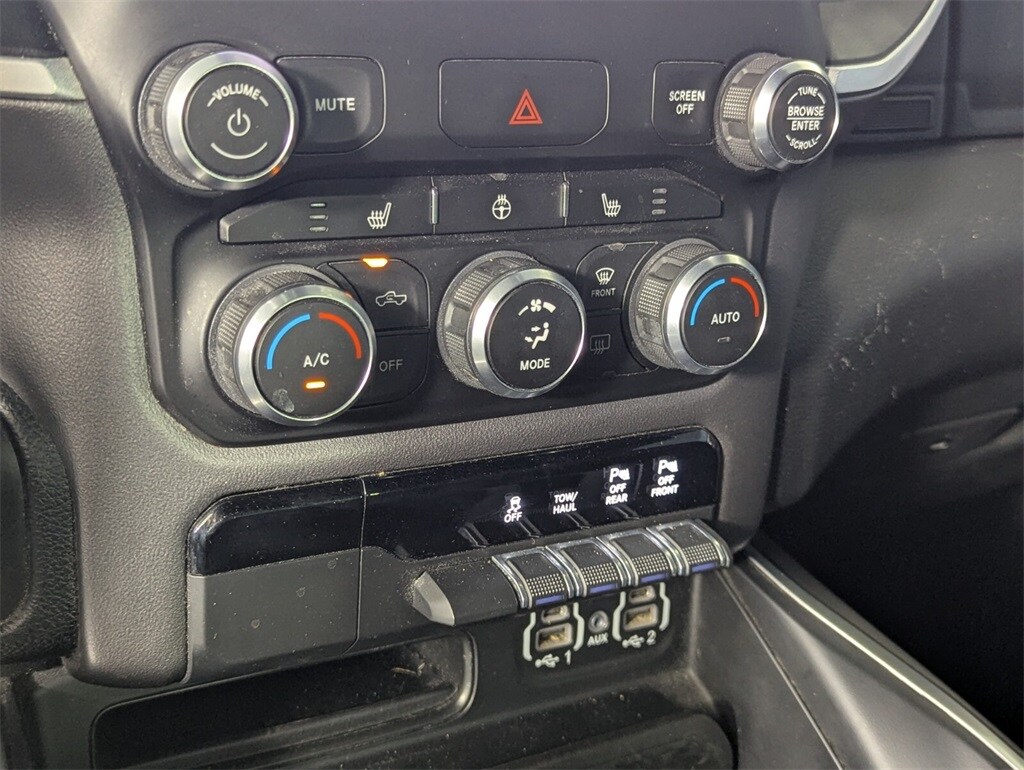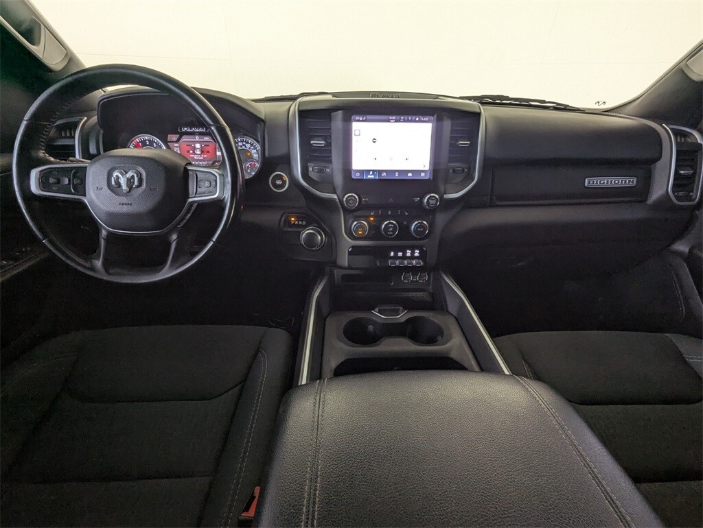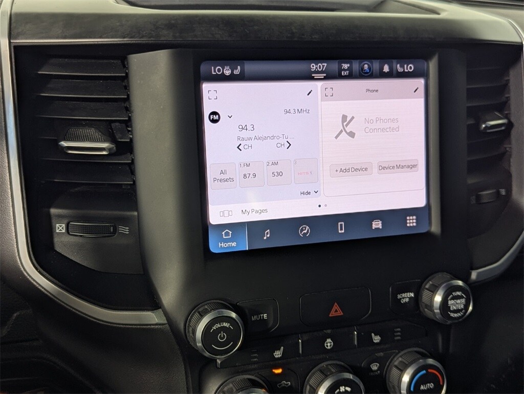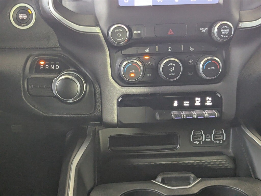 This 1500 is well equipped with Big Horn Level 2 Equipment Group (115V Auxiliary Power Outlet, Apple CarPlay, Black Exterior Mirrors, Class IV Receiver Hitch, Cluster 7.0" TFT Color Display, Connectivity - US/Canada, Convex Wide-Angle Mirror Insert, Global Telematics Box Module (TBM), Glove Box Lamp, GPS Antenna Input, Heated Steering Wheel, Media Hub w/2 Charge Only USBs, ParkSense Front/Rear Park Assist w/Stop, Power Adjustable Pedals, Radio: Uconnect 5 W w/8.4" Display, Rear Power Sliding Window, Remote Start System, SiriusXM Radio Service, and SiriusXM Satellite Radio), Night Edition (3 Rear Seat Head Restraints, 4 Way Front Headrests, Anti-Spin Differential Rear Axle, Body Color Rear Bumper w/Step Pads, Front Seat Back Map Pockets, Rear 60/40 Folding Seat, and Wheels: 20" x 9.0" Premium Paint/Polished), Night Edition (DISC), Quick Order Package 24Z Big Horn, 3.21 Rear Axle Ratio, 4-Wheel Disc Brakes, 48V Belt Starter Generator, 6 Speakers, ABS brakes, Air Conditioning, Alloy wheels, AM/FM radio, Brake assist, Bumpers: chrome, Cloth Bench Seat, Compass, Delay-off headlights, Driver door bin, Dual front impact airbags, Dual front side impact airbags, Electronic Stability Control, Emergency communication system: SiriusXM Guardian, Front anti-roll bar, Front Center Armrest w/Storage, Front fog lights, Front reading lights, Front wheel independent suspension, Fully automatic headlights, Heated door mirrors, Illuminated entry, Integrated Voice Command w/Bluetooth, Leather steering wheel, Low tire pressure warning, MOPAR Front & Rear Rubber Floor Mats, Occupant sensing airbag, Outside temperature display, Overhead airbag, Overhead console, Panic alarm, ParkView Rear Back-Up Camera, Passenger door bin, Passenger vanity mirror, Power door mirrors, Power steering, Power windows, Radio data system, Radio: Uconnect 3 w/5" Display, Rear anti-roll bar, Rear seat center armrest, Rear step bumper, Rear Underseat Compartment Storage, Rear Underseat Compartment Storage (DISC), Remote keyless entry, Speed control, Split folding rear seat, Steering wheel mounted audio controls, Tachometer, Telescoping steering wheel, Tilt steering wheel, Traction control, Trip computer, Variably intermittent wipers, Voltmeter, and Wheels: 18" x 8" Cast-Aluminum Painted.
