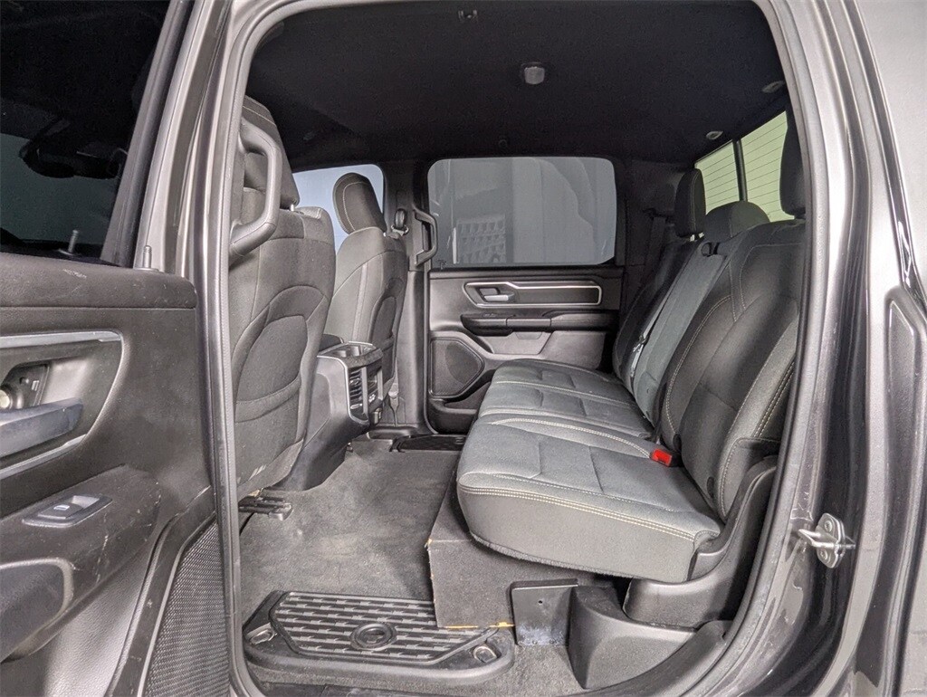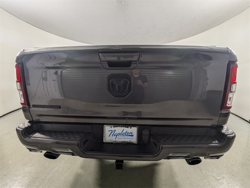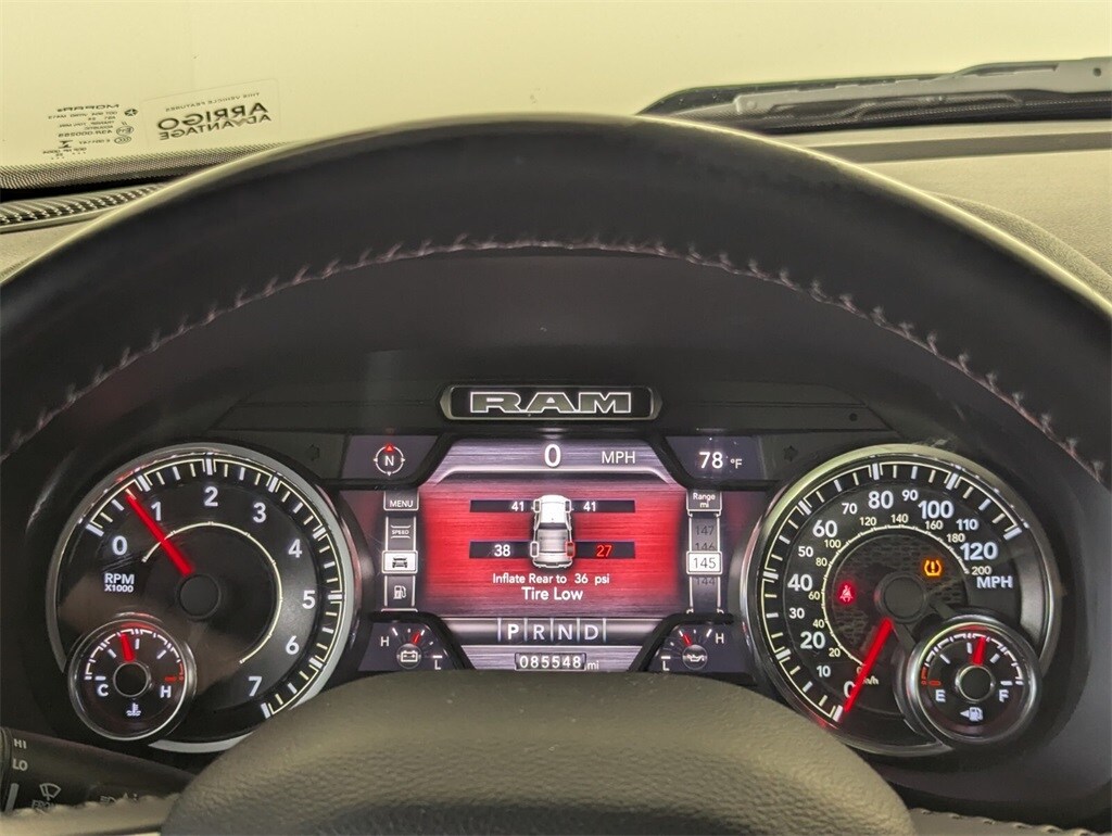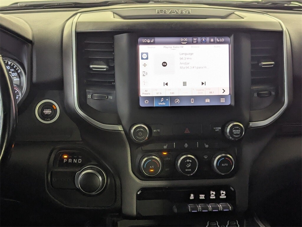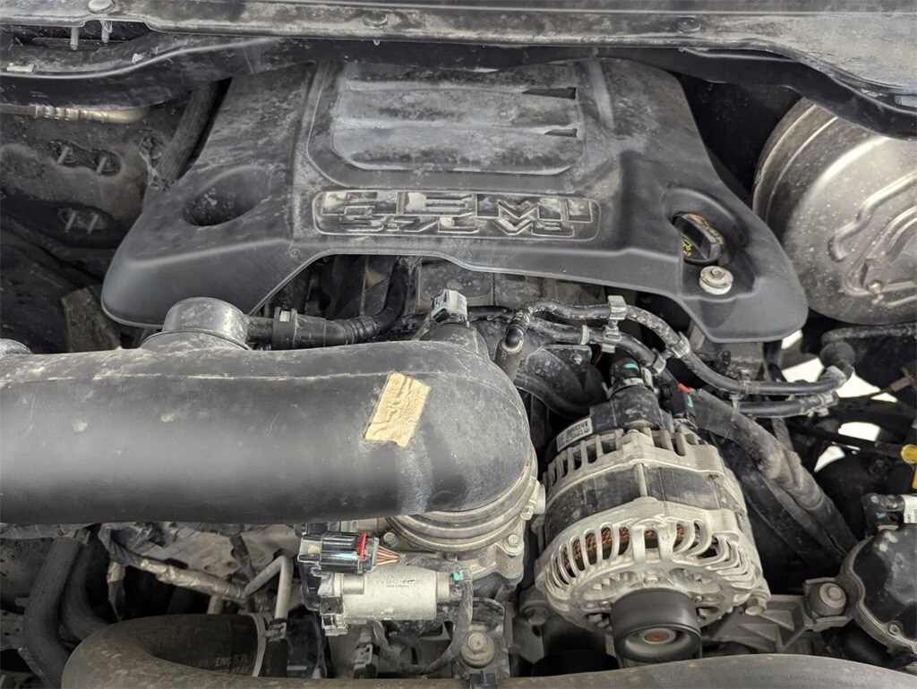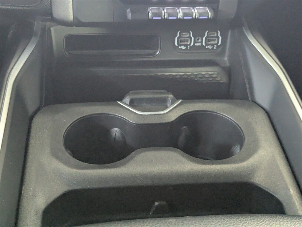 This 1500 is well equipped with Big Horn Level 2 Equipment Group (115V Auxiliary Power Outlet, Apple CarPlay, Black Exterior Mirrors, Class IV Receiver Hitch, Cluster 7.0" TFT Color Display, Connectivity - US/Canada, Convex Wide-Angle Mirror Insert, Global Telematics Box Module (TBM), Glove Box Lamp, GPS Antenna Input, Heated Steering Wheel, Media Hub w/2 Charge Only USBs, ParkSense Front/Rear Park Assist w/Stop, Power Adjustable Pedals, Radio: Uconnect 5 W w/8.4" Display, Rear Power Sliding Window, Remote Start System, SiriusXM Radio Service, and SiriusXM Satellite Radio), Night Edition (3 Rear Seat Head Restraints, 4 Way Front Headrests, Anti-Spin Differential Rear Axle, Body Color Rear Bumper w/Step Pads, Front Seat Back Map Pockets, Rear 60/40 Folding Seat, and Wheels: 20" x 9.0" Premium Paint/Polished), Night Edition (DISC), Quick Order Package 24Z Big Horn, 3.21 Rear Axle Ratio, 4-Wheel Disc Brakes, 48V Belt Starter Generator, 6 Speakers, ABS brakes, Air Conditioning, Alloy wheels, AM/FM radio, Brake assist, Bumpers: chrome, Cloth Bench Seat, Compass, Delay-off headlights, Driver door bin, Dual front impact airbags, Dual front side impact airbags, Electronic Stability Control, Emergency communication system: SiriusXM Guardian, Front anti-roll bar, Front Center Armrest w/Storage, Front fog lights, Front reading lights, Front wheel independent suspension, Fully automatic headlights, Heated door mirrors, Illuminated entry, Integrated Voice Command w/Bluetooth, Leather steering wheel, Low tire pressure warning, MOPAR Front & Rear Rubber Floor Mats, Occupant sensing airbag, Outside temperature display, Overhead airbag, Overhead console, Panic alarm, ParkView Rear Back-Up Camera, Passenger door bin, Passenger vanity mirror, Power door mirrors, Power steering, Power windows, Radio data system, Radio: Uconnect 3 w/5" Display, Rear anti-roll bar, Rear seat center armrest, Rear step bumper, Rear Underseat Compartment Storage, Rear Underseat Compartment Storage (DISC), Remote keyless entry, Speed control, Split folding rear seat, Steering wheel mounted audio controls, Tachometer, Telescoping steering wheel, Tilt steering wheel, Traction control, Trip computer, Variably intermittent wipers, Voltmeter, and Wheels: 18" x 8" Cast-Aluminum Painted.