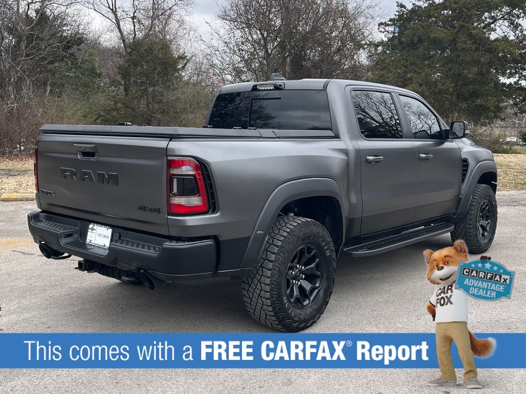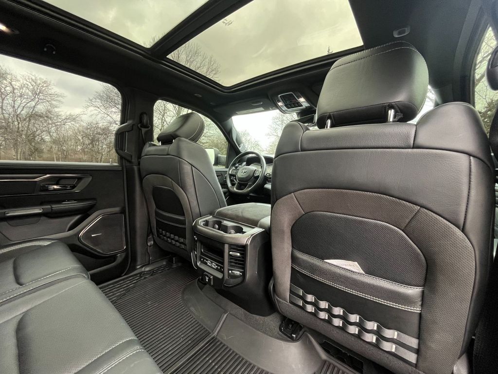The striking Gray exterior, complemented by the TRX-specific styling cues, gives this Ram 1500 a bold and commanding presence on the road. Step inside, and you'll be greeted by a spacious and well-appointed cabin that offers ample room for both passengers and cargo.
