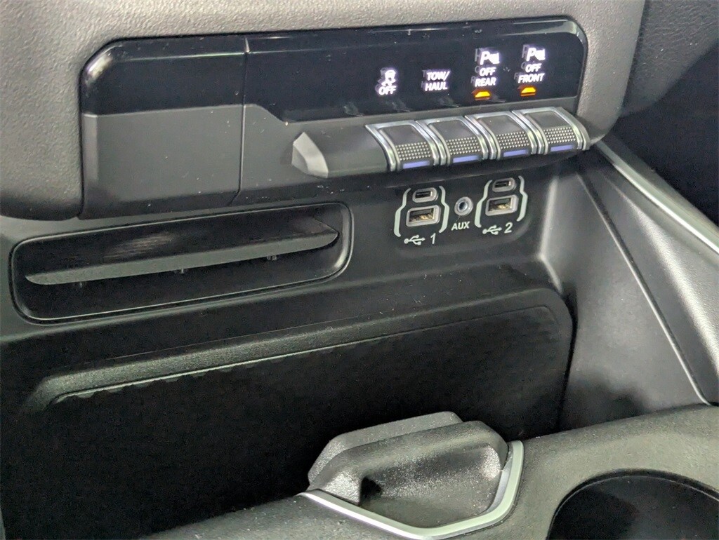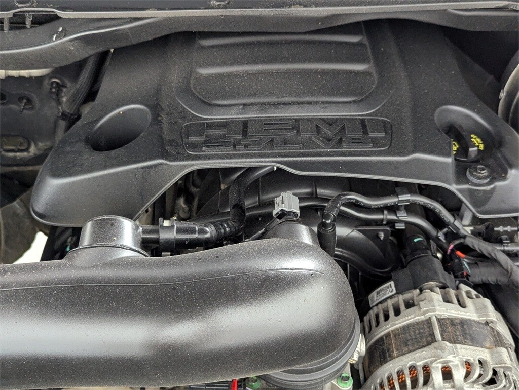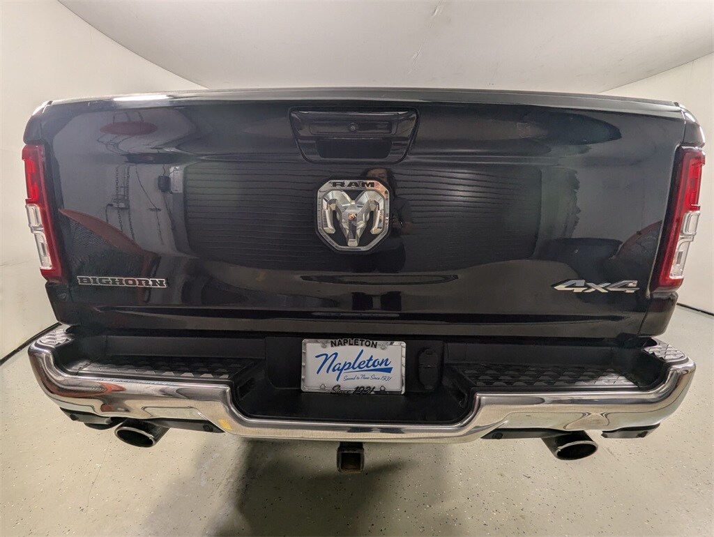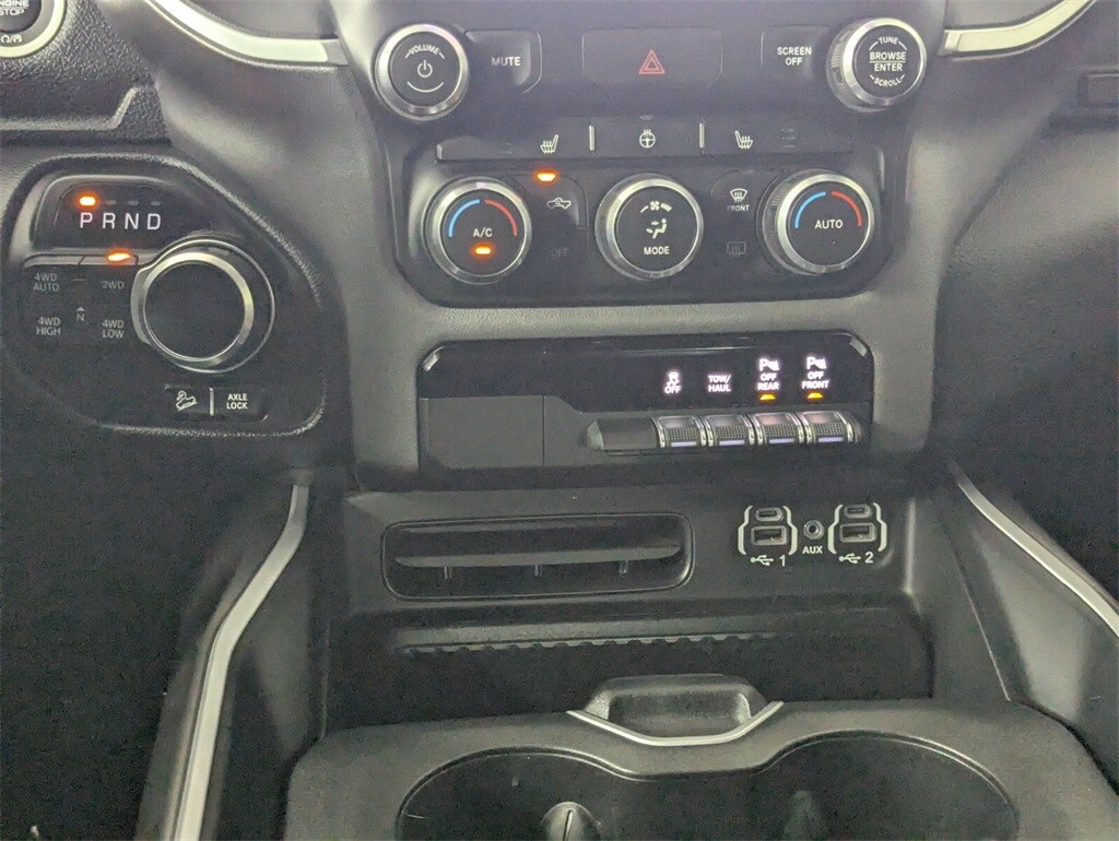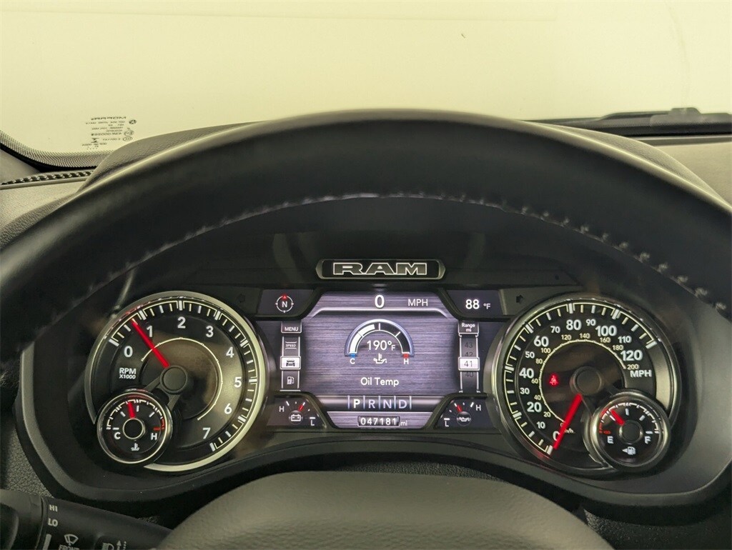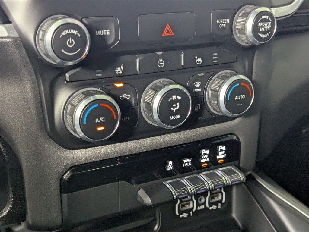 This 1500 is well equipped with Bed Utility Group (MOPAR Spray In Bedliner and Pick-Up Box Lighting), Big Horn Level B Equipment Group (DISC) (115V Auxiliary Power Outlet, 115V Auxiliary Rear Power Outlet, 2nd Row In Floor Storage Bins, 400W Inverter, 4G LTE Wi-Fi Hot Spot, 8.4" Touchscreen Display, Air Conditioning ATC w/Dual Zone Control, Apple CarPlay, Auto-Dimming Exterior Driver Mirror, Auto-Dimming Rear-View Mirror, Black Premium Power Mirrors (GUL), Bluetooth Handsfree Phone & Audio, Class IV Receiver Hitch, Cluster 7.0" TFT Color Display, Connectivity - US/Canada, Exterior Mirrors Courtesy Lamps, Exterior Mirrors w/Supplemental Signals, Foam Bottle Insert (Door Trim Panel), For More Info, Call 800-643-2112, Glove Box Lamp, Google Android Auto, Heated Front Seats, Heated Steering Wheel, Integrated Center Stack Radio, Media Hub w/2 Charge Only USBs, ParkSense Front/Rear Park Assist w/Stop, Power 2-Way Driver Lumbar Adjust, Power 8-Way Driver Seat, Power Adjustable Pedals, Radio: Uconnect 5 W w/8.4" Display, Rear Dome w/On/Off Switch Lamp, Rear Power Sliding Window, Rear Window Defroster, Remote Start System, Security Alarm, SiriusXM Radio Service, SiriusXM Satellite Radio, Sun Visors w/Illuminated Vanity Mirrors, Universal Garage Door Opener, and USB Host Flip), Off Road Group (All Plant-Installed Decals, E-Locker Rear Axle, Front Extra HD Shock Absorbers, Hill Descent Control, Off Road Decals, Raised Ride Height, Rear Extra HD Shock Absorbers, and Tow Hooks), Quick Order Package 25Z Big Horn, FCA US LLC Certified Pre-Owned Certified, 3 Rear Seat Head Restraints, 3.21 Rear Axle Ratio, 4 Way Front Headrests, 4-Wheel Disc Brakes, 48V Belt Starter Generator, 6 Speakers, 9 Amplified Speakers w/Subwoofer, ABS brakes, Air Conditioning, Alloy wheels, AM/FM radio, Black Exterior Mirrors, Brake assist, Bumpers: chrome, Cloth Bench Seat, Compass, Convex Wide-Angle Mirror Insert, Delay-off headlights, Driver door bin, Dual front impact airbags, Dual front side impact airbags, Electronic Stability Control, Emergency communication system: SiriusXM Guardian, Front anti-roll bar, Front Center Armrest w/Storage, Front fog lights, Front reading lights, Front Seat Back Map Pockets, Front wheel independent suspension, Fully automatic headlights, Global Telematics Box Module (TBM), GPS Antenna Input, Heated door mirrors, Heavy-Duty Engine Cooling, Illuminated entry, Integrated Voice Command w/Bluetooth, Leather steering wheel, Low tire pressure warning, Manufacturer's Statement of Origin, MOPAR Front & Rear Rubber Floor Mats, Occupant sensing airbag, Outside temperature display, Overhead airbag, Overhead console, Panic alarm, ParkView Rear Back-Up Camera, Passenger door bin, Passenger vanity mirror, Power door mirrors, Power steering, Power windows, Radio data system, Radio: Uconnect 3 w/5" Display, Rear 60/40 Folding Seat, Rear anti-roll bar, Rear seat center armrest, Rear step bumper, Rear Underseat Compartment Storage (DISC), Remote keyless entry, Speed control, Split folding rear seat, Steering wheel mounted audio controls, Tachometer,