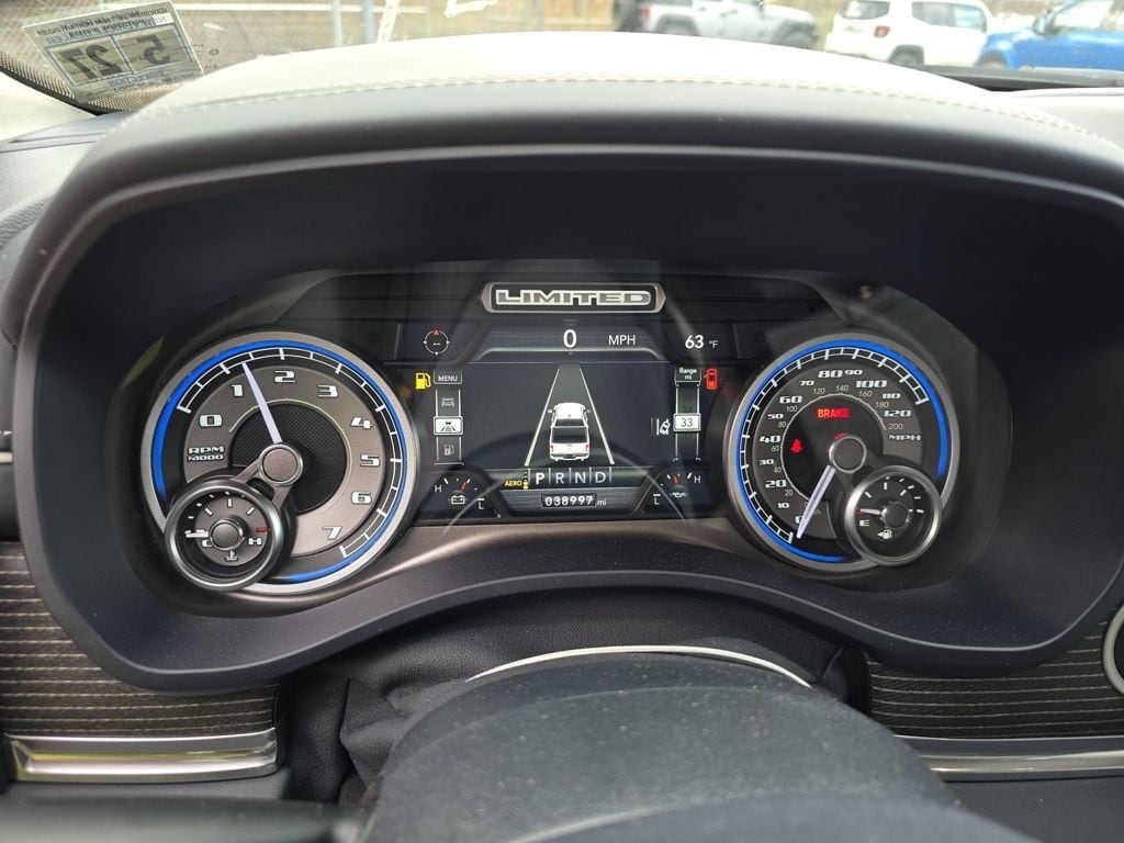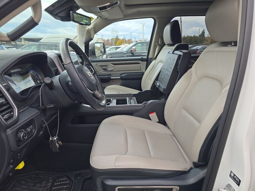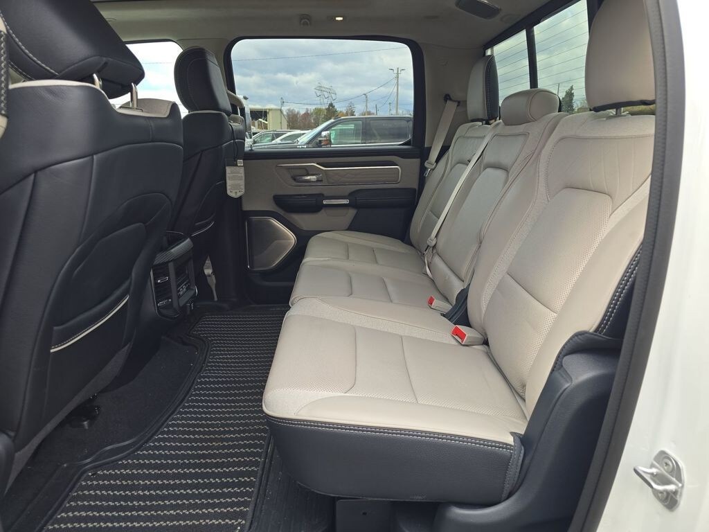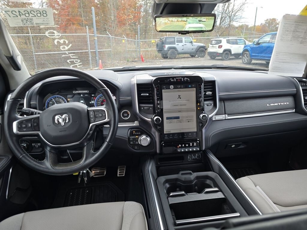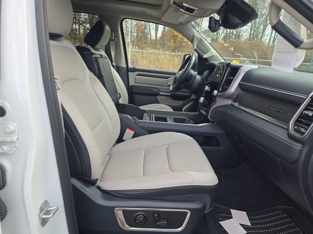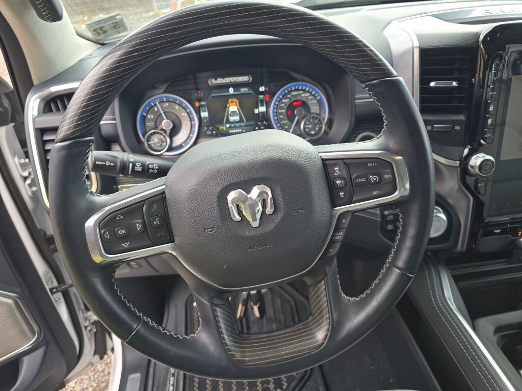 This 1500 is well equipped with Body Color Bumper Group (Body Color Front Bumper and Body Color Rear Bumper w/Step Pads), Limited 10th Anniversary Edition (4 Way Front Headrests, Bucket Seats, Driver Seat Memory, Front Seat Back Map Pockets, Full Length Premium Floor Console, harman/kardon 19 Speaker Premium Sound, Heated Front Seats, Heated Second Row Seats, Heated Steering Wheel, Instrument Cluster Theme 8, MOPAR 4 Adjustable Cargo Tie-Down Hooks, MOPAR Bright Pedal Kit, MOPAR Deployable Bed Step Center Mount, Multi-Function Tailgate, Power 4-Way Driver Lumbar Adjust, Power 4-Way Passenger Lumbar Adjust, Power 8-Way Driver & Passenger Seats, Premium Quilted Leather Bucket Seats, Rear 60/40 Folding Split Recline Seat, Rotary Shifter-Jeweled, Suede Headliner, Tailgate Ajar Warning Lamp, Ventilated Front Seats, and Ventilated Rear Seats), Limited Level 1 Equipment Group (Adaptive Cruise Control w/Stop & Go, Digital Rearview Mirror, Heads-Up Display, Lane Keep Assist, LED CHMSL Lamp, Parallel & Perp Park Assist w/Stop, Pedestrian Emergency Braking, and Surround View Camera System), Quick Order Package 27M Limited, 10 Speakers, 3.21 Rear Axle Ratio, 4-Wheel Disc Brakes, 48V Belt Starter Generator, ABS brakes, Active Noise Control System, Adjustable pedals, Air Conditioning, Alloy wheels, AM/FM radio: SiriusXM with 360L, Apple CarPlay/Android Auto, Audio memory, Auto High-beam Headlights, Auto-dimming door mirrors, Auto-Dimming Exterior Driver Mirror, Auto-Dimming Exterior Passenger Mirror, Auto-dimming Rear-View mirror, Auto-leveling suspension, Automatic temperature control, Bodyside moldings, Brake assist, Bumpers: chrome, Chrome Exterior Mirrors, Compass, Convex Wide-Angle Mirror Insert, Delay-off headlights, Dome Dual LED Reading Lamp, Driver door bin, Driver vanity mirror, Dual front impact airbags, Dual front side impact airbags, Dual Rear Exhaust w/Bright Tips, Dual-Pane Panoramic Sunroof, Electronic Stability Control, Exterior Mirrors Courtesy Lamps, Exterior Mirrors w/Heating Element, Exterior Mirrors w/Memory, Exterior Mirrors w/Supplemental Signals, Front anti-roll bar, Front Bucket Seats, Front Center Armrest w/Storage, Front dual zone A/C, Front fog lights, Front License Plate Bracket, Front reading lights, Front wheel independent suspension, Fully automatic headlights, Garage door transmitter, Genuine wood console insert, Genuine wood dashboard insert, Genuine wood door panel insert, Heated door mirrors, Heated front seats, Heated rear seats, Heated steering wheel, Heavy-Duty Engine Cooling, HEMI Badge, Illuminated entry, Leather steering wheel, LED Dome/Reading Lamp, Low tire pressure warning, Memory seat, Navigation System/ GPS, Occupant sensing airbag, Outside temperature display, Overhead airbag, Overhead console, Panic alarm, ParkView Rear Back-Up Camera, Passenger door bin, Passenger vanity mirror, Pedal memory, Power door mirrors, Power driver seat, Power passenger seat, Power steering, Power windows, Power-Folding Mirrors, Premium Leather Trimmed Bucket Seats, Radio data system, Radio: Uconnect 5 Nav w/12.0" Display, Rain sensing wipers, Rear anti-roll bar, Rear seat center armrest, Rear step bumper, Rear window defroster, Remote keyless entry, Security system, Speed control, Split folding rear seat, Steering wheel mounted audio controls, Tachometer, Telescoping steering wheel, Tilt steering wheel, Traction control, Tri-Fold Tonneau Cover, Trip computer, Turn signal indicator mirrors, Variably intermittent wipers, Ventilated front seats, Voltmeter, Wheels: 20" x 9" Aluminum Painted/Polished, and Wheels: 22" x 9" Polish/Painted w/Inserts.
