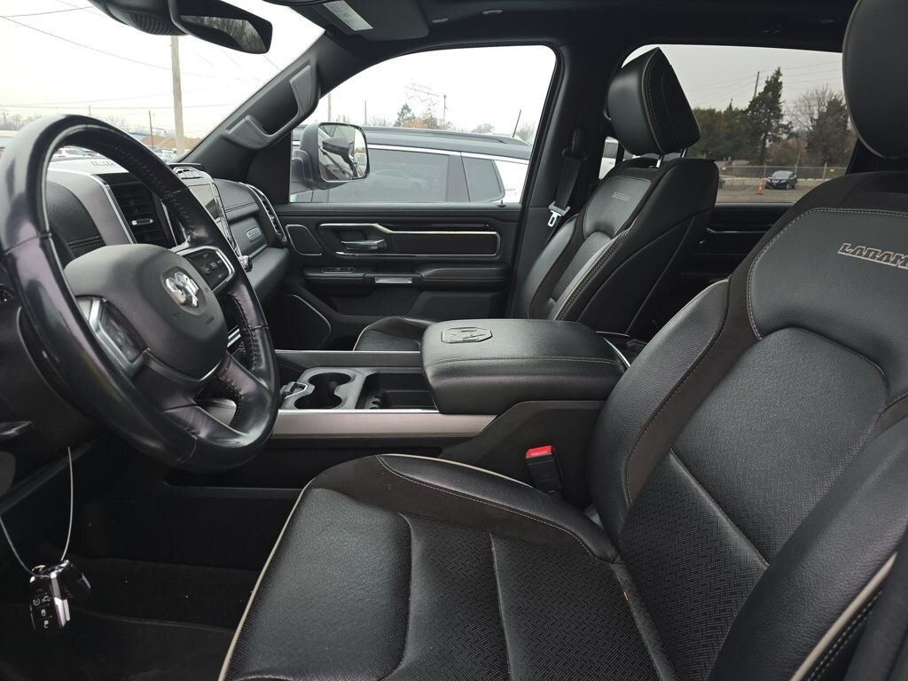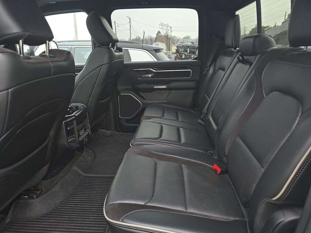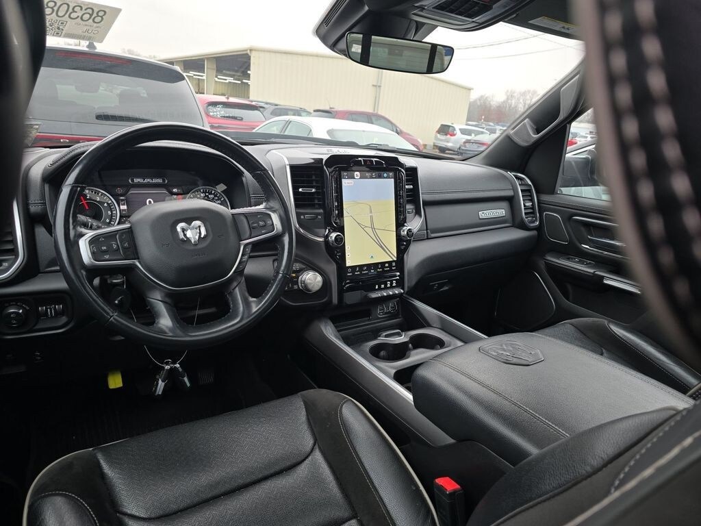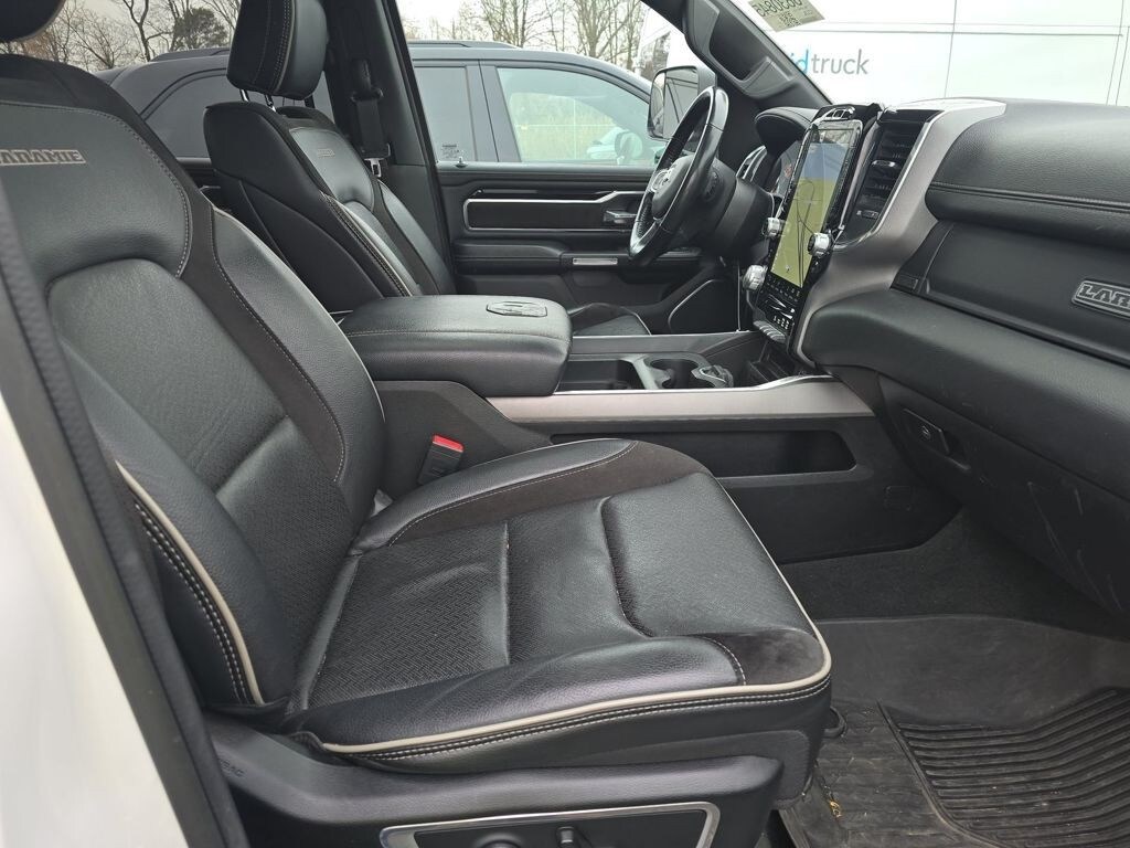 This 1500 is well equipped with Laramie Level II Equipment Group (2nd Row In Floor Storage Bins, 4G LTE Wi-Fi Hot Spot, 8.4" Touchscreen Display, All R1 High Radios, All Radio Equipped Vehicles, Apple CarPlay, Auto High Beam Headlamp Control, Blind Spot & Cross Path Detection, Connected Travel & Traffic Services, Connectivity - US/Canada, Disassociated Touchscreen Display, Foam Bottle Insert (Door Trim Panel), For Details, Visit DriveUconnect.com, For More Info, Call 800-643-2112, Global Telematics Box Module (TBM), Google Android Auto, GPS Antenna Input, GPS Navigation, harman/kardon 19 Speaker Premium Sound, HD Radio, Integrated Center Stack Radio, Integrated Voice Command w/Bluetooth, ParkSense Front/Rear Park Assist w/Stop, Radio: Uconnect 5 Nav w/8.4" Display, Rain Sensitive Windshield Wipers, Remote Tailgate Release, SiriusXM Radio Service, SiriusXM w/360L, USB Host Flip, and Wireless Charging Pad), Night Edition (#1 Seat Foam Cushion, 3 Rear Seat Head Restraints, 4 Way Front Headrests, Accent Color Premium Power Mirrors, Auto-Dimming Exterior Driver Mirror, Black Exterior Truck Badging, Black Headlamp Bezels, Black Interior Accents, Black Painted Exterior Mirrors Caps, Body Color Door Handles, Body Color Front Bumper, Body Color Rear Bumper w/Step Pads, Bucket Seats, Convex Wide-Angle Mirror Insert, Delete LED Lamp - Floor Console Bin, Driver Seat Memory, Dual Exhaust w/Black Tips, Exterior Mirrors Courtesy Lamps, Exterior Mirrors w/Heating Element, Exterior Mirrors w/Memory, Exterior Mirrors w/Supplemental Signals, Front Seat Back Map Pockets, Full Length Upgraded Floor Console, Grille Surround 3 Black Texture 2 Black, Heated Front Seats, Heated Steering Wheel, Leather Trimmed Bucket Seats, Mopar Black Tubular Side Steps, Power 2-Way Driver Lumbar Adjust, Power 2-Way Passenger Lumbar Adjust, Power 8-Way Driver & Passenger Seats, Power-Folding Mirrors, Rear 60/40 Folding Seat, Sport Performance Hood, Twill Film Appliques, and Ventilated Front Seats), Quick Order Package 25H Laramie, 10 Speakers, 12" Touchscreen Display, 3.21 Rear Axle Ratio, 4-Wheel Disc Brakes, 48V Belt Starter Generator, ABS brakes, Adjustable pedals, Air Conditioning, Alloy wheels, AM/FM radio: SiriusXM, Anti-Spin Differential Rear Axle, Apple CarPlay/Android Auto, Audio memory, Auto-dimming door mirrors, Auto-dimming Rear-View mirror, Automatic temperature control, Black Exterior Mirrors, Black Power-Fold Trailer Tow Mirrors, Brake assist, Bumpers: chrome, Chrome Exterior Mirrors, Compass, Delay-off headlights, Dome Dual LED Reading Lamp, Driver door bin, Driver vanity mirror, Dual front impact airbags, Dual front side impact airbags, Dual-Pane Panoramic Sunroof, Electronic Stability Control, Front anti-roll bar, Front Center Armrest w/Storage, Front dual zone A/C, Front fog lights, Front License Plate Bracket, Front reading lights, Front wheel independent suspension, Fully automatic headlights, Garage door transmitter, Heated door mirrors, Heated front seats, Heated steering wheel, Illuminated entry, Leather steering wheel, Leather Trim 40/20/40 Bench Seat, LED Dome/Reading Lamp, Low tire pressure warning, Manufacturer's Statement of Origin, Memory seat, Mirror Clearance/Running Lights, Mirror-Mounted Aux Reverse Lamps, MOPAR Front & Rear Rubber Floor Mats, Occupant sensing airbag, Outside temperature display, Overhead airbag, Overhead console, Panic alarm, ParkView Rear Back-Up Camera, Passenger door bin, Passenger vanity mirror, Pedal memory, Power door mirrors, Power driver seat, Power passenger seat, Power steering, Power windows, Radio data system, Radio: Uconnect 5 Nav w/12.0" Display, Radio: Uconnect 5 W w/8.4" Display, Rear anti-roll bar, Rear seat center armrest, Rear step bumper, Rear Underseat Compartment Storage (DISC), Rear window defroster, Remote keyless entry, Security system, Speed co