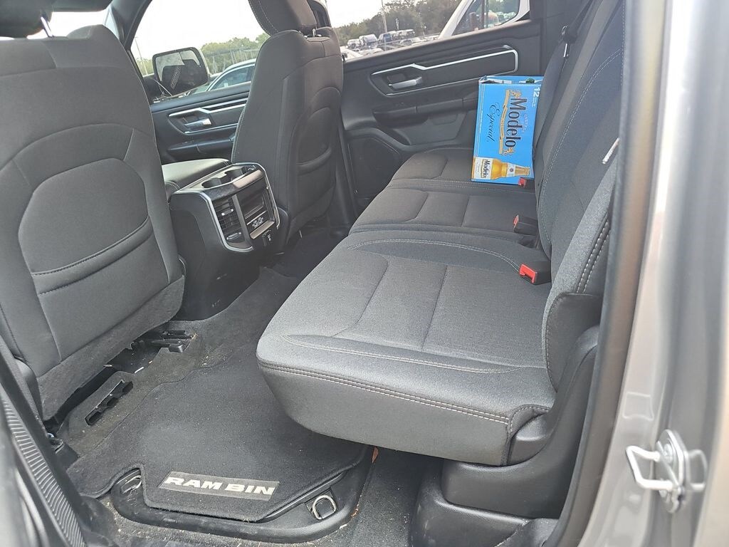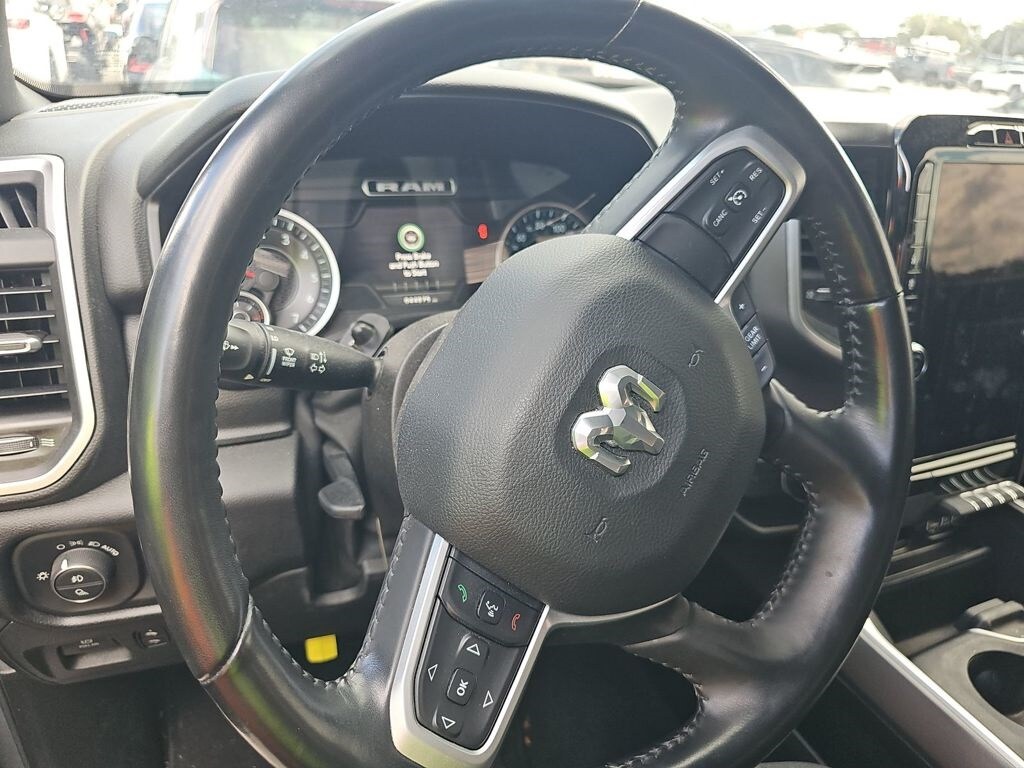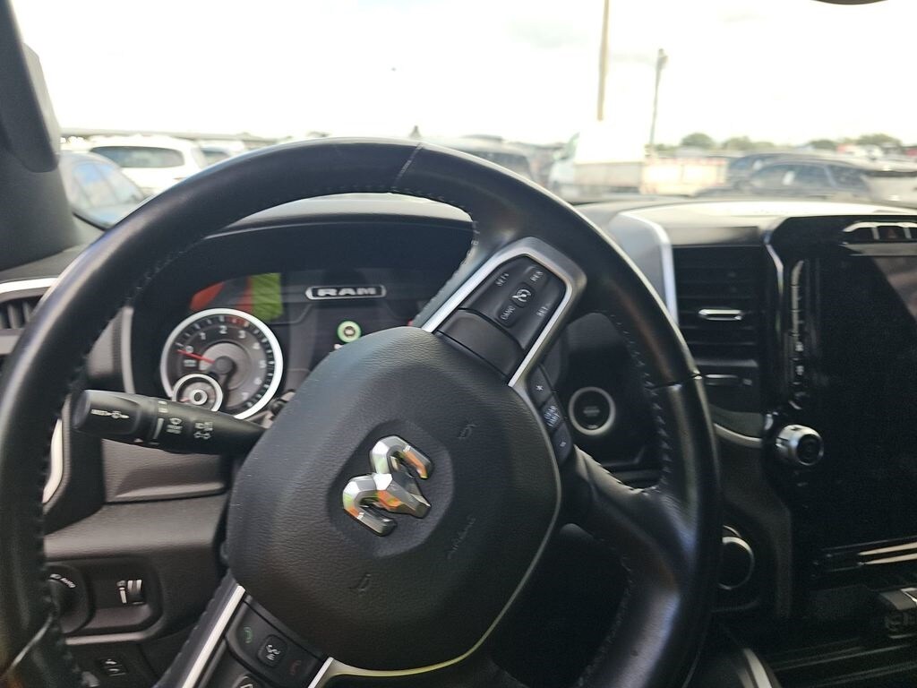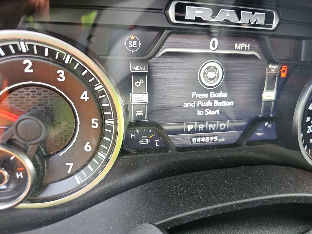 This 1500 is well equipped with Big Horn Level 2 Equipment Group (115V Auxiliary Power Outlet, Black Exterior Mirrors, Convex Wide-Angle Mirror Insert, Exterior Mirrors w/Heating Element, Global Telematics Box Module (TBM), GPS Antenna Input, Integrated Center Stack Radio, ParkSense Front/Rear Park Assist w/Stop, Remote Start System, and SiriusXM Radio Service), Night Edition (3 Rear Seat Head Restraints, 4 Way Front Headrests, Anti-Spin Differential Rear Axle, Black Exterior Truck Badging, Black Headlamp Bezels, Black Interior Accents, Body Color Rear Bumper w/Step Pads, Deluxe Cloth Bucket Seats, Front Seat Back Map Pockets, Full Length Floor Console, Rear 60/40 Folding Seat, Rear Center Armrest, and Wheels: 20" x 9.0" Premium Paint/Polished), Night Edition (DISC), Quick Order Package 25Z Big Horn (Big Horn Badge), 3.21 Rear Axle Ratio, 4-Wheel Disc Brakes, 48V Belt Starter Generator, 6 Speakers, 9 Amplified Speakers w/Subwoofer, ABS brakes, Air Conditioning, Alloy wheels, AM/FM radio, Brake assist, Bumpers: chrome, Cloth Bench Seat, Compass, Connected Travel & Traffic Services, Delay-off headlights, Disassociated Touchscreen Display, Driver door bin, Dual front impact airbags, Dual front side impact airbags, Electronic Stability Control, Emergency communication system: SiriusXM Guardian, Exterior Parking Camera Rear, Front anti-roll bar, Front Center Armrest w/Storage, Front fog lights, Front reading lights, Front wheel independent suspension, Fully automatic headlights, Heated door mirrors, Illuminated entry, Integrated Voice Command w/Bluetooth, Leather steering wheel, Low tire pressure warning, Occupant sensing airbag, Outside temperature display, Overhead airbag, Overhead console, Panic alarm, Passenger door bin, Passenger vanity mirror, Power door mirrors, Power steering, Power windows, Radio data system, Radio: Uconnect 3 w/5" Display, Radio: Uconnect 5 Nav w/12.0" Display, Rear anti-roll bar, Rear seat center armrest, Rear step bumper, Remote keyless entry, Speed control, Split folding rear seat, Steering wheel mounted audio controls, Tachometer, Telescoping steering wheel, Tilt steering wheel, Traction control, Trip computer, Variably intermittent wipers, Voltmeter, and Wheels: 18" x 8" Cast-Aluminum Painted.