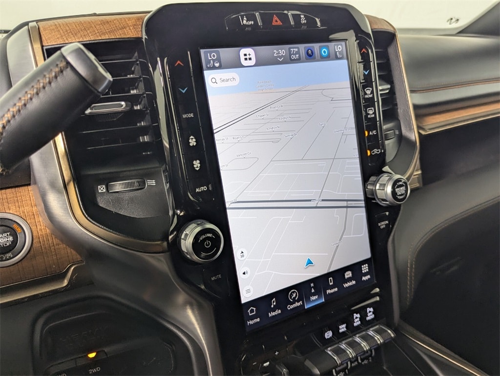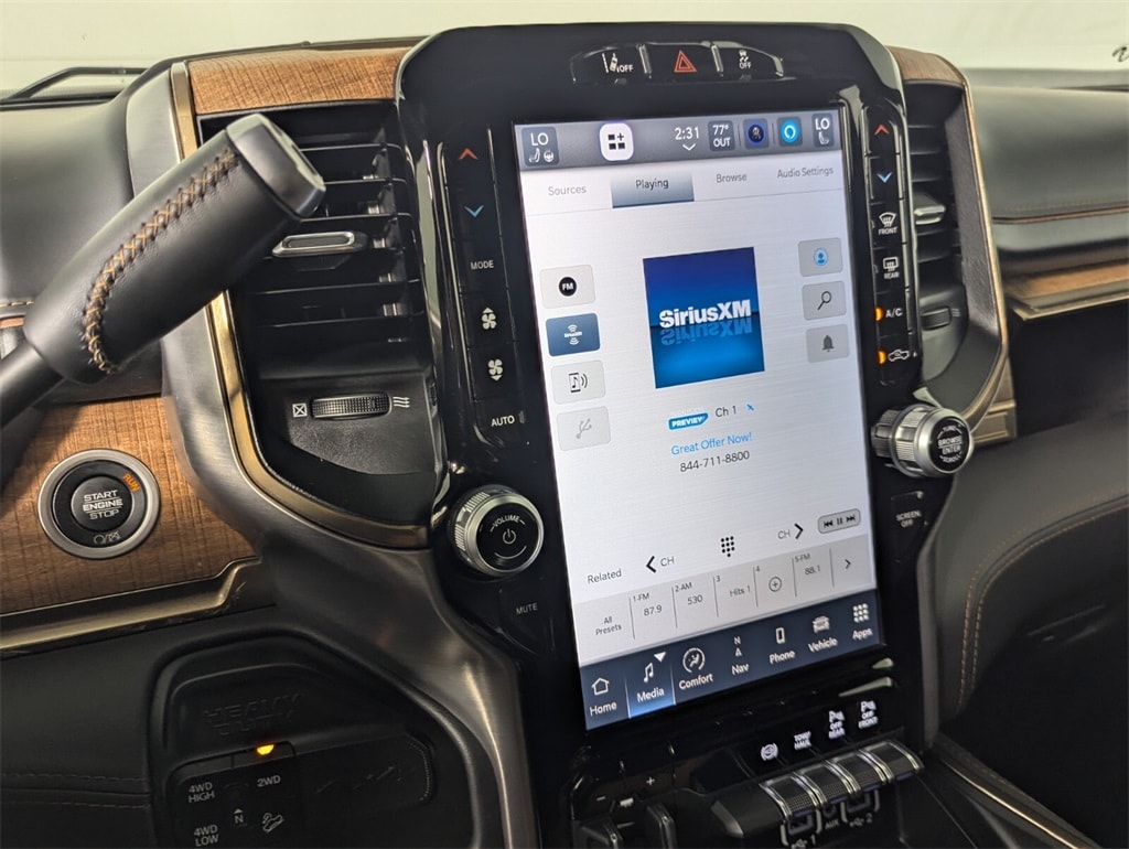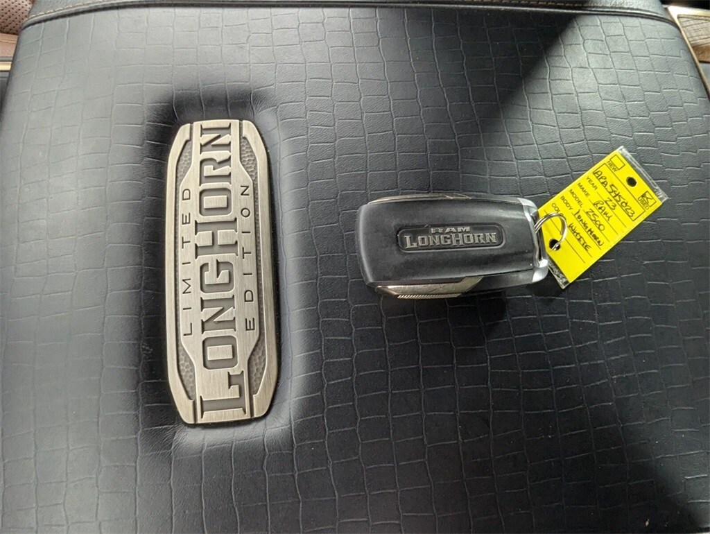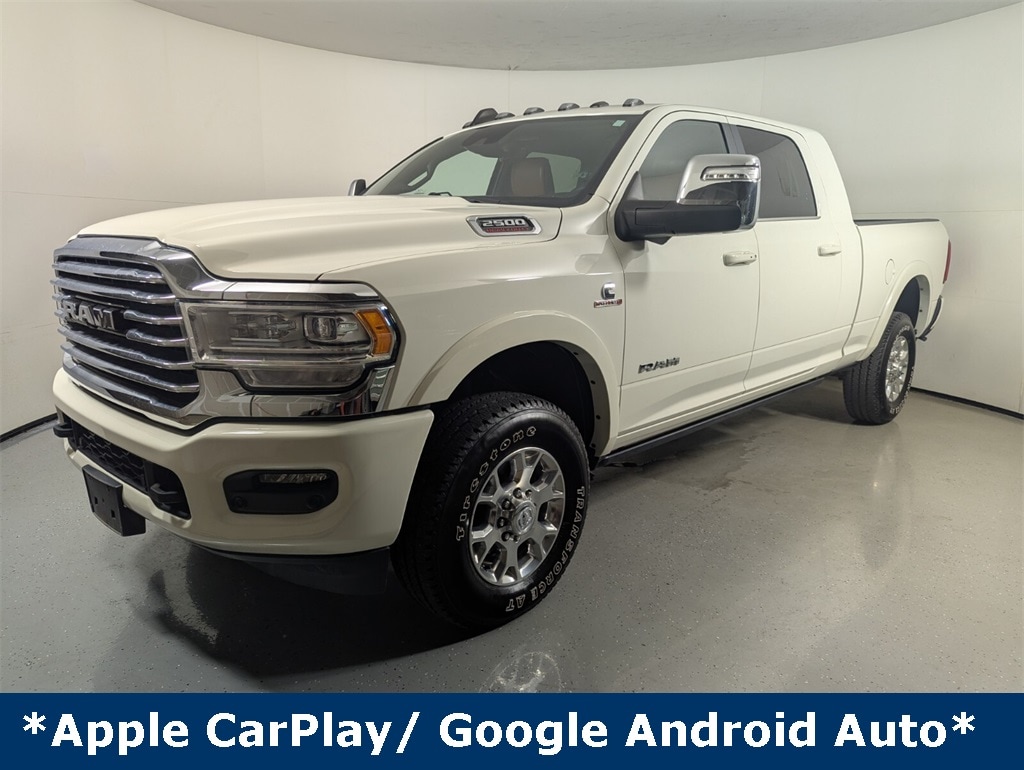 This 2500 is well equipped with Cold Weather Group (Engine Block Heater and MOPAR Winter Front Grille Cover), Longhorn Level 1 Equipment Group (17 Speaker harman/kardon Premium Sound, 4G LTE Wi-Fi Hot Spot, Alexa Built-In, Apple CarPlay, Blind Spot & Cross Path Detection, Connected Travel & Traffic Services, Connectivity - US/Canada, Disassociated Touchscreen Display, For Details, Visit DriveUconnect.com, For More Info, Call 800-643-2112, Global Telematics Box Module (TBM), Google Android Auto, GPS Antenna Input, GPS Navigation, HD Radio, Integrated Voice Command w/Bluetooth, LED Bed Lighting, Off-Road Information Pages, Power Deployable Running Boards, Radio: Uconnect 5 Nav w/12.0" Display, Ramcharger Wireless Charging Pad, Selectable Tire Fill Alert, SiriusXM Radio Service, SiriusXM w/360L, and Trailer Tow Pages), Off Road Package (Front Performance Tuned Shock Absorbers, Hill Descent Control, and Rear Performance Tuned Shock Absorbers), Quick Order Package 2HK Longhorn, Safety Group (Adaptive Cruise Control w/Stop, Adaptive Steering System, and Lane Keep Assist), Towing Technology Group (Center Stop Lamp w/Cargo View Camera and Surround View Camera System), FCA US LLC Certified Pre-Owned Certified, 10 Speakers, 115V Auxiliary Rear Power Outlet, 2 Way Rear Headrest Seat, 220 Amp Alternator, 3.73 Axle Ratio, 4 Way Front Headrests, 4-Wheel Disc Brakes, ABS brakes, Active Noise Control System, Air Conditioning, Alloy wheels, AM/FM radio: SiriusXM with 360L, Anti-Spin Differential Rear Axle, Apple CarPlay/Android Auto, Audio memory, Auto High-beam Headlights, Auto-dimming door mirrors, Auto-dimming Rear-View mirror, Automatic temperature control, Brake assist, Bucket Seats, Bumpers: body-color, Center Hub, Clearance Lamps, Compass, Delay-off headlights, Driver door bin, Driver vanity mirror, Dual front impact airbags, Dual front side impact airbags, Electronic Stability Control, Electronically Controlled Throttle, Front anti-roll bar, Front Bucket Seats, Front Center Armrest w/Storage, Front dual zone A/C, Front fog lights, Front License Plate Bracket, Front reading lights, Front Seat Back Map Pockets, Full Length Premium Upgraded Floor Console, Fully automatic headlights, Garage door transmitter, Genuine wood console insert, Genuine wood dashboard insert, Genuine wood door panel insert, Heated door mirrors, Heated Front Seats, Heated front seats, Heated rear seats, Heated Second Row Seats, Heated Steering Wheel, Heated steering wheel, High Back Seats, Illuminated entry, Leather steering wheel, Low tire pressure warning, Memory seat, MOPAR Deployable Bed Step, Navigation System/ GPS, Occupant sensing airbag, Outside temperature display, Overhead airbag, Overhead console, Panic alarm, ParkView Rear Back-Up Camera, Passenger door bin, Passenger vanity mirror, Power 2-Way Driver Lumbar Adjust, Power 2-Way Passenger Lumbar Adjust, Power Adjust 8-Way Driver Seat, Power Adjust 8-Way Front Passenger Seat, Power door mirrors, Power driver seat, Power passenger seat, Power steering, Power windows, Premium Filigree Leather Seats, Radio data