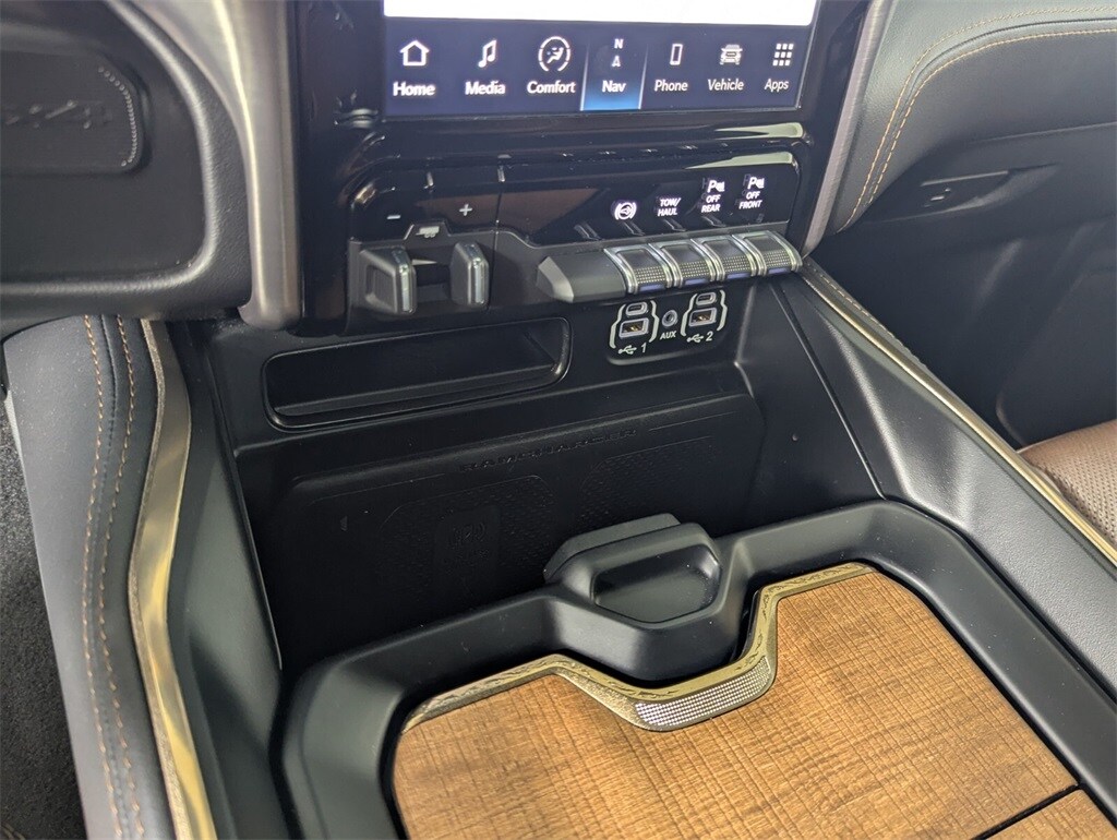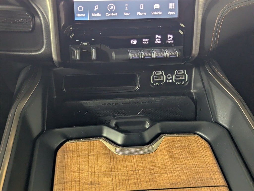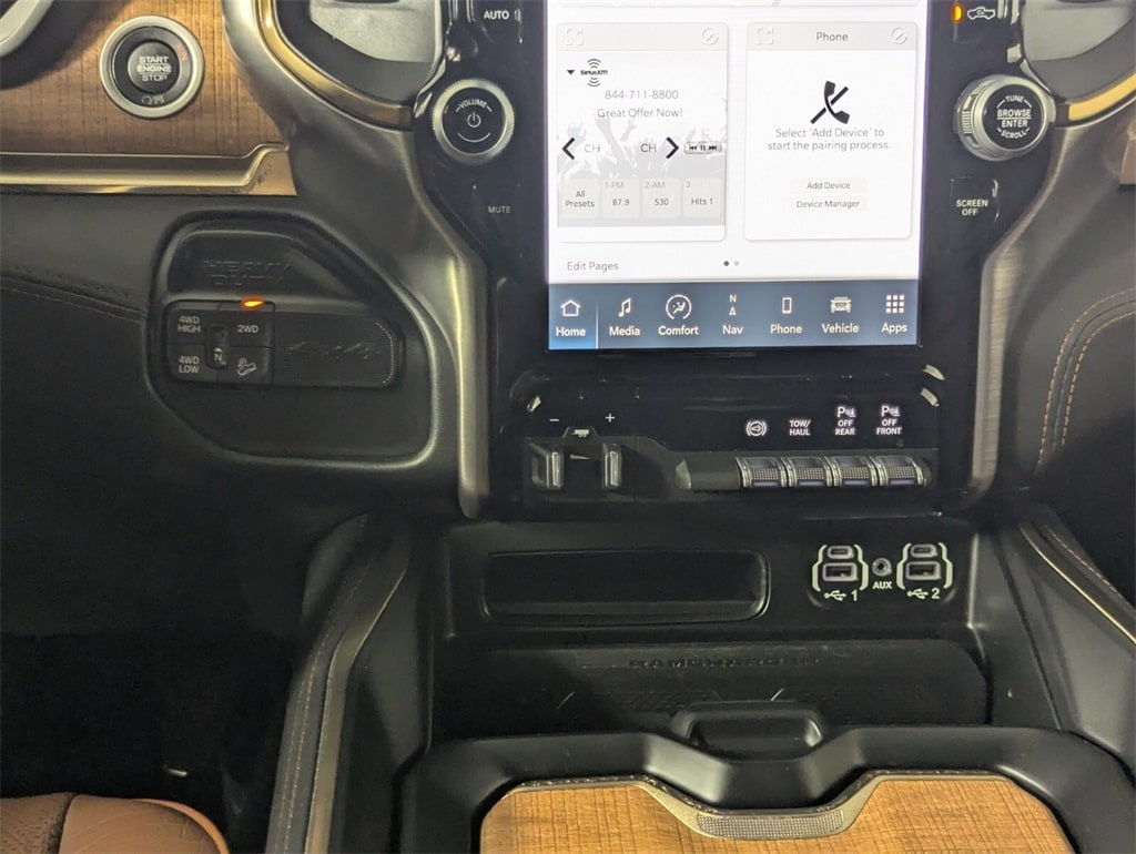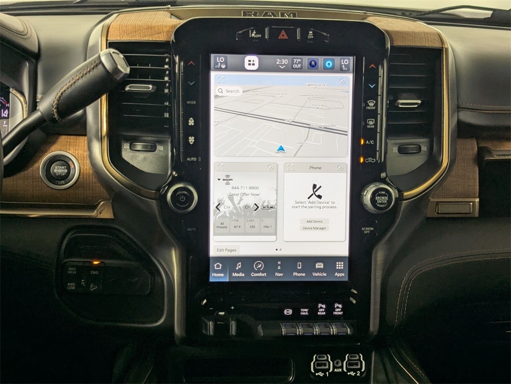 This 2500 is well equipped with Cold Weather Group (Engine Block Heater and MOPAR Winter Front Grille Cover), Longhorn Level 1 Equipment Group (17 Speaker harman/kardon Premium Sound, 4G LTE Wi-Fi Hot Spot, Alexa Built-In, Apple CarPlay, Blind Spot & Cross Path Detection, Connected Travel & Traffic Services, Connectivity - US/Canada, Disassociated Touchscreen Display, For Details, Visit DriveUconnect.com, For More Info, Call 800-643-2112, Global Telematics Box Module (TBM), Google Android Auto, GPS Antenna Input, GPS Navigation, HD Radio, Integrated Voice Command w/Bluetooth, LED Bed Lighting, Off-Road Information Pages, Power Deployable Running Boards, Radio: Uconnect 5 Nav w/12.0" Display, Ramcharger Wireless Charging Pad, Selectable Tire Fill Alert, SiriusXM Radio Service, SiriusXM w/360L, and Trailer Tow Pages), Off Road Package (Front Performance Tuned Shock Absorbers, Hill Descent Control, and Rear Performance Tuned Shock Absorbers), Quick Order Package 2HK Longhorn, Safety Group (Adaptive Cruise Control w/Stop, Adaptive Steering System, and Lane Keep Assist), Towing Technology Group (Center Stop Lamp w/Cargo View Camera and Surround View Camera System), FCA US LLC Certified Pre-Owned Certified, 10 Speakers, 115V Auxiliary Rear Power Outlet, 2 Way Rear Headrest Seat, 220 Amp Alternator, 3.73 Axle Ratio, 4 Way Front Headrests, 4-Wheel Disc Brakes, ABS brakes, Active Noise Control System, Air Conditioning, Alloy wheels, AM/FM radio: SiriusXM with 360L, Anti-Spin Differential Rear Axle, Apple CarPlay/Android Auto, Audio memory, Auto High-beam Headlights, Auto-dimming door mirrors, Auto-dimming Rear-View mirror, Automatic temperature control, Brake assist, Bucket Seats, Bumpers: body-color, Center Hub, Clearance Lamps, Compass, Delay-off headlights, Driver door bin, Driver vanity mirror, Dual front impact airbags, Dual front side impact airbags, Electronic Stability Control, Electronically Controlled Throttle, Front anti-roll bar, Front Bucket Seats, Front Center Armrest w/Storage, Front dual zone A/C, Front fog lights, Front License Plate Bracket, Front reading lights, Front Seat Back Map Pockets, Full Length Premium Upgraded Floor Console, Fully automatic headlights, Garage door transmitter, Genuine wood console insert, Genuine wood dashboard insert, Genuine wood door panel insert, Heated door mirrors, Heated Front Seats, Heated front seats, Heated rear seats, Heated Second Row Seats, Heated Steering Wheel, Heated steering wheel, High Back Seats, Illuminated entry, Leather steering wheel, Low tire pressure warning, Memory seat, MOPAR Deployable Bed Step, Navigation System/ GPS, Occupant sensing airbag, Outside temperature display, Overhead airbag, Overhead console, Panic alarm, ParkView Rear Back-Up Camera, Passenger door bin, Passenger vanity mirror, Power 2-Way Driver Lumbar Adjust, Power 2-Way Passenger Lumbar Adjust, Power Adjust 8-Way Driver Seat, Power Adjust 8-Way Front Passenger Seat, Power door mirrors, Power driver seat, Power passenger seat, Power steering, Power windows, Premium Filigree Leather Seats, Radio data