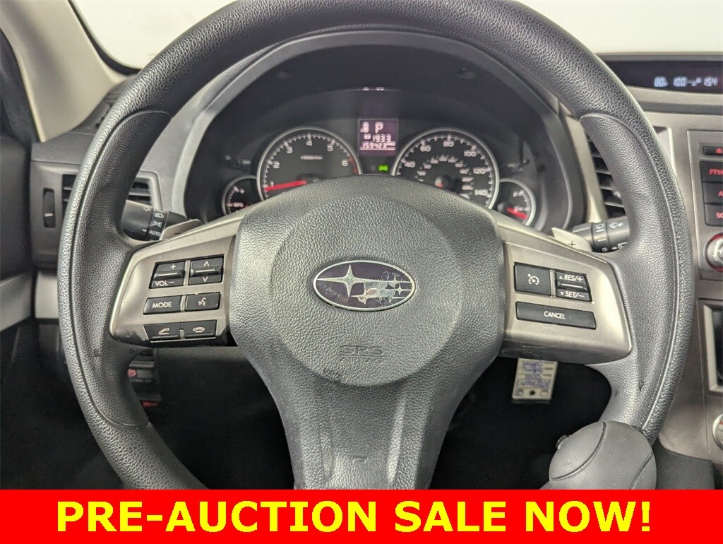 2014 Subaru Outback 2.5i Beautifully finished in Ice Silver Metallic with Black Cloth interior. 2.5L 4-Cylinder DOHC 16V 4D Sport Utility AWD CVT Lineartronic 16" x 6.5" Steel Wheels w/Full Wheel Covers, 17" Alloy Wheels, 3.90 Axle Ratio, 4 Speakers, 4-Wheel Disc Brakes, ABS brakes, Air Conditioning, Alloy Wheel Lock Kit, Alloy Wheel Package, AM/FM radio, AM/FM Stereo w/Single-Disc CD Player, Anti-whiplash front head restraints, Brake assist, Bumpers: body-color, CD player, Cloth Upholstery, Driver door bin, Driver vanity mirror, Dual front impact airbags, Dual front side impact airbags, Electronic Stability Control, Fog Lamps, Four wheel independent suspension, Front anti-roll bar, Front Bucket Seats, Front Center Armrest w/Storage, Front reading lights, Fully automatic headlights, Illuminated entry, Leather Shift Knob, Low tire pressure warning, Occupant sensing airbag, Outside temperature display, Overhead airbag, Overhead console, Panic alarm, Passenger door bin, Passenger vanity mirror, Popular Package #1B, Power door mirrors, Power steering, Power windows, Radio data system, Rear anti-roll bar, Rear seat center armrest, Rear window defroster, Rear window wiper, Remote keyless entry, Roof rack, Security system, Speed control, Speed-sensing steering, Split folding rear seat, Spoiler, Steering wheel mounted audio controls, Steering-Wheel Paddle-Shift Control Switches, Tachometer, Telescoping steering wheel, Tilt steering wheel, Traction control, Trip computer, Variably intermittent wipers. Clean CARFAX. Priced below KBB Fair Purchase Price! 24/30 City/Highway MPG