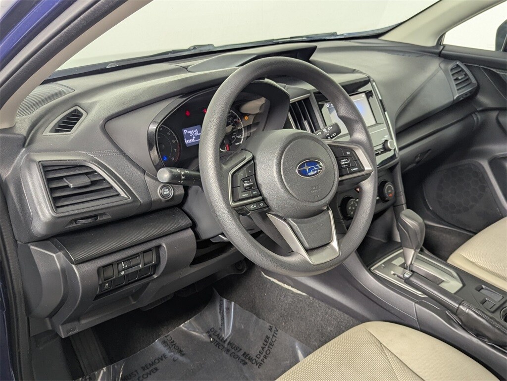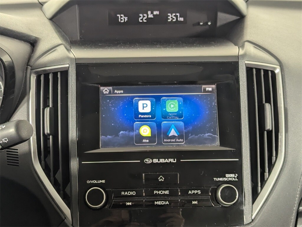 This Impreza is well equipped with 16" x 6.5J Steel w/Full Wheel Covers Wheels, 4 Speakers, 4-Wheel Disc Brakes, ABS brakes, Air Conditioning, AM/FM radio, Apple CarPlay/Android Auto, Brake assist, Bumpers: body-color, Cloth Upholstery, Driver door bin, Driver vanity mirror, Dual front impact airbags, Dual front side impact airbags, Electronic Stability Control, Exterior Parking Camera Rear, Four wheel independent suspension, Front anti-roll bar, Front Bucket Seats, Front Center Armrest, Front reading lights, Illuminated entry, Knee airbag, Low tire pressure warning, Occupant sensing airbag, Outside temperature display, Overhead airbag, Panic alarm, Passenger door bin, Passenger vanity mirror, Power door mirrors, Power steering, Power windows, Radio data system, Radio: Subaru Starlink 6.5" Multimedia System, Rear window defroster, Rear window wiper, Reclining Front Bucket Seats, Remote keyless entry, Security system, Speed control, Speed-sensing steering, Split folding rear seat, Spoiler, Steering wheel mounted audio controls, Tachometer, Telescoping steering wheel, Tilt steering wheel, Traction control, Trip computer, and Variably intermittent wipers.