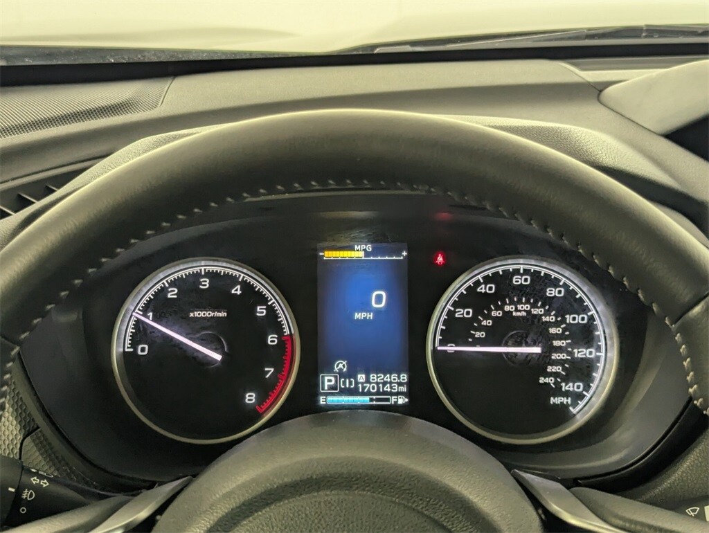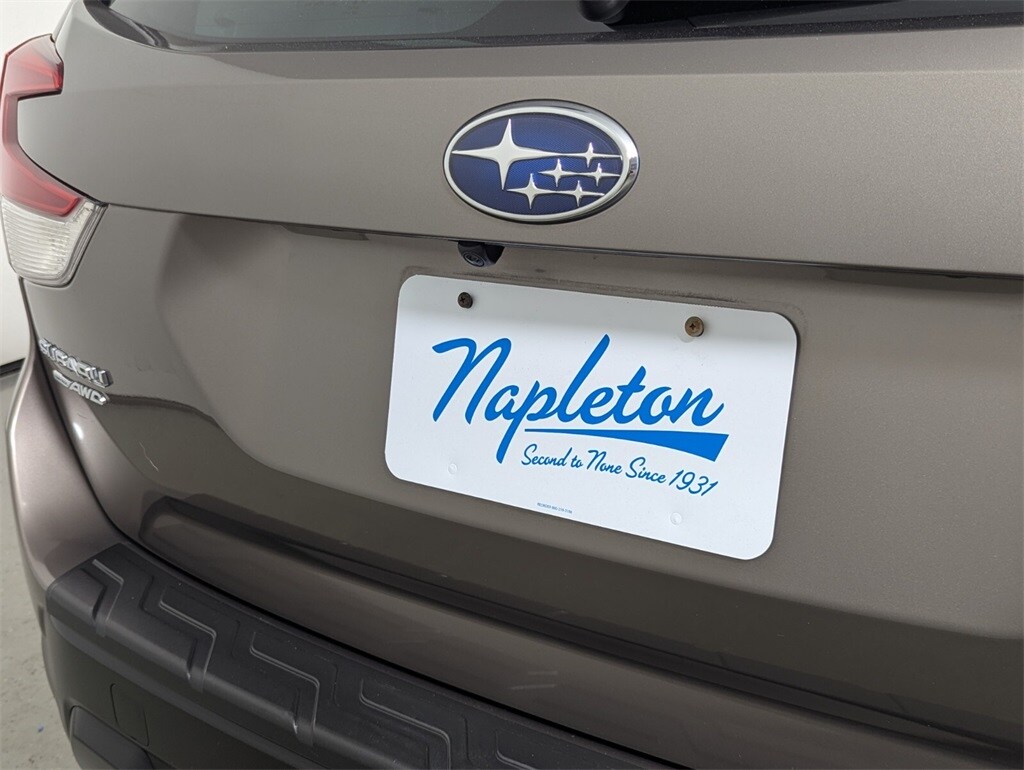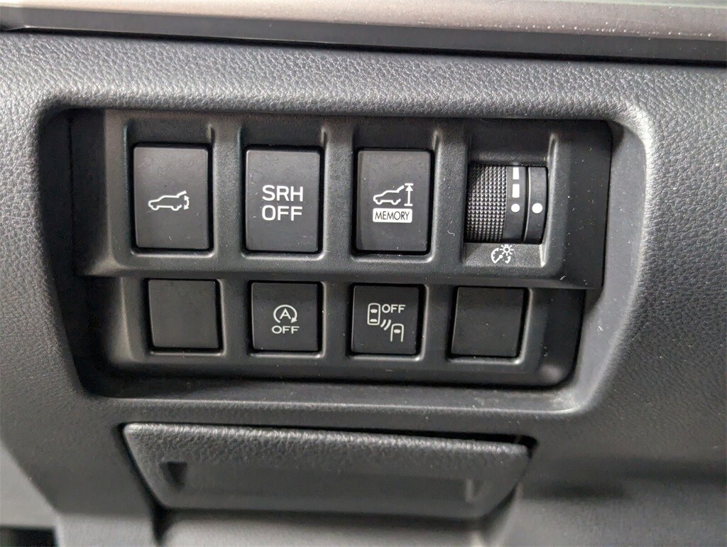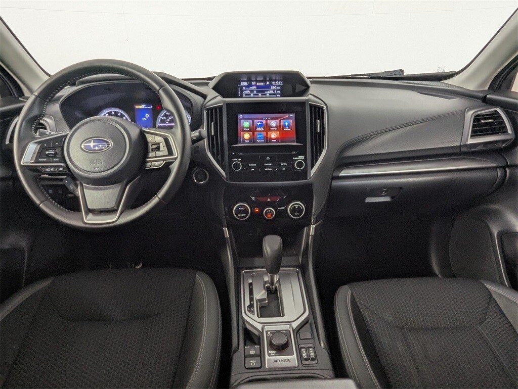 This Forester is well equipped with 3.70 Axle Ratio, 4-Wheel Disc Brakes, 6 Speakers, ABS brakes, Air Conditioning, Alloy wheels, AM/FM radio: SiriusXM, Anti-whiplash front head restraints, Auto High-beam Headlights, Automatic temperature control, Brake assist, Bumpers: body-color, CD player, Driver door bin, Driver vanity mirror, Dual front impact airbags, Dual front side impact airbags, Electronic Stability Control, Emergency communication system: STARLINK Safety and Security (Subscription Required), Exterior Parking Camera Rear, Four wheel independent suspension, Front anti-roll bar, Front Bucket Seats, Front Center Armrest, Front fog lights, Front reading lights, Fully automatic headlights, Heated door mirrors, Heated Front Bucket Seats, Heated front seats, Illuminated entry, Knee airbag, Low tire pressure warning, Occupant sensing airbag, Outside temperature display, Overhead airbag, Overhead console, Panic alarm, Passenger door bin, Passenger vanity mirror, Power door mirrors, Power driver seat, Power moonroof: Panoramic, Power steering, Power windows, Premium Cloth Upholstery, Radio data system, Radio: Subaru Starlink 6.5" Multimedia Plus System, Rear anti-roll bar, Rear seat center armrest, Rear window defroster, Rear window wiper, Remote keyless entry, Roof rack: rails only, Security system, Speed control, Speed-sensing steering, Split folding rear seat, Spoiler, STARLINK/Apple CarPlay/Android Auto, Steering wheel mounted audio controls, Tachometer, Telescoping steering wheel, Tilt steering wheel, Traction control, Trip computer, Variably intermittent wipers, and Wheels: 17" x 7.0 J Black Machine Finish Alloy.