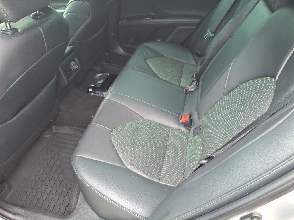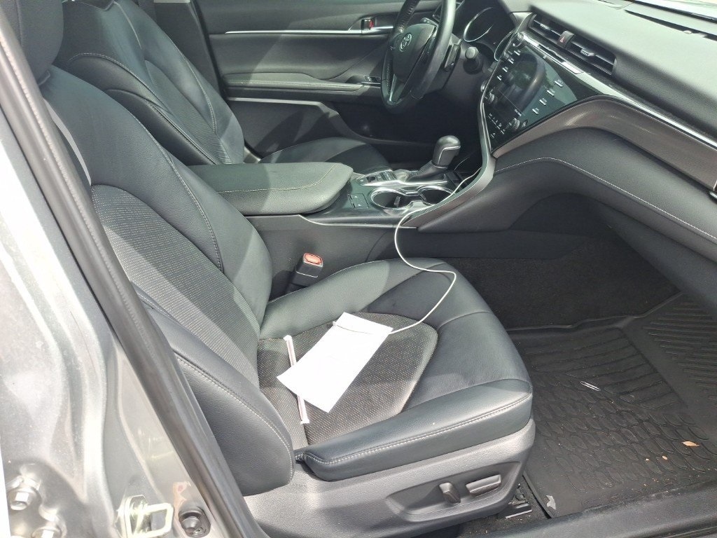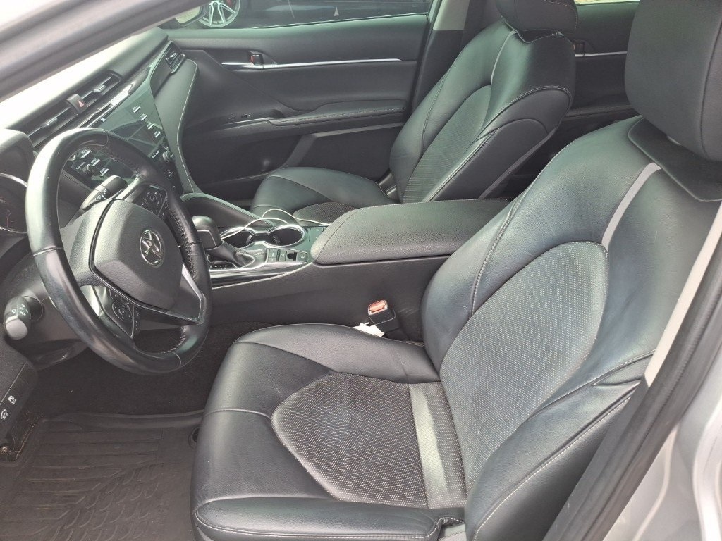 This Camry is well equipped with Leather, 4-Wheel Disc Brakes, 9 Speakers, ABS brakes, Air Conditioning, Alloy wheels, AM/FM radio: SiriusXM, Apple CarPlay, Auto High-beam Headlights, Auto-dimming Rear-View mirror, Automatic temperature control, Brake assist, Bumpers: body-color, CD player, Compass, Delay-off headlights, Driver door bin, Driver vanity mirror, Dual front impact airbags, Dual front side impact airbags, Electronic Stability Control, Emergency communication system: Safety Connect, Exterior Parking Camera Rear, Four wheel independent suspension, Front anti-roll bar, Front Bucket Seats, Front Center Armrest, Front dual zone A/C, Front reading lights, Fully automatic headlights, Garage door transmitter: HomeLink, Heads-Up Display, Heated door mirrors, Heated front seats, Illuminated entry, Knee airbag, Leather Shift Knob, Low tire pressure warning, Multi-Stage Heated Front Bucket Seats, Occupant sensing airbag, Outside temperature display, Overhead airbag, Overhead console, Panic alarm, Passenger door bin, Passenger vanity mirror, Perforated Leather Seat Trim, Power door mirrors, Power driver seat, Power moonroof, Power passenger seat, Power steering, Power windows, Radio data system, Radio: Entune 3.0 Audio Plus w/JBL w/Clari-Fi, Rear anti-roll bar, Rear reading lights, Rear seat center armrest, Rear side impact airbag, Rear window defroster, Remote keyless entry, Security system, Speed control, Speed-sensing steering, Split folding rear seat, Spoiler, Sport steering wheel, Steering wheel mounted audio controls, Tachometer, Telescoping steering wheel, Tilt steering wheel, Traction control, Trip computer, Turn signal indicator mirrors, Variably intermittent wipers, and Wheels: 8.0J x 19" Black Machined-Finish Alloy.