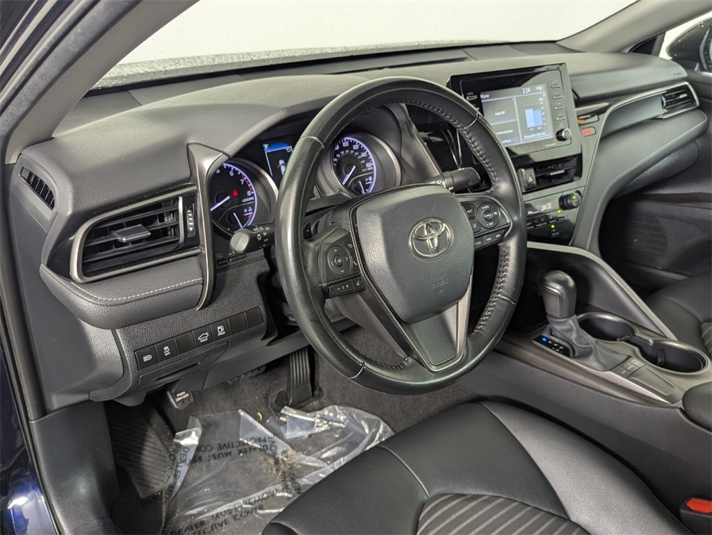 2022 Toyota Camry SE Beautifully finished in Cavalry Blue/Midnight Black Metallic with Black Cloth interior. 2.5L I4 DOHC 16V 4D Sedan FWD 8-Speed Automatic **ONE OWNER**, **CLEAN CARFAX**, **MUST SEE TO APPRECIATE**, **EXTRA CLEAN**, Black w/Fabric Seat Trim w/Sport SofTex, ABS brakes, Active Cruise Control, Alloy wheels, Electronic Stability Control, Front dual zone A/C, Heated door mirrors, Illuminated entry, Low tire pressure warning, Remote keyless entry, Traction control. CARFAX One-Owner. Clean CARFAX. Priced below KBB Fair Purchase Price! 28/39 City/Highway MPG