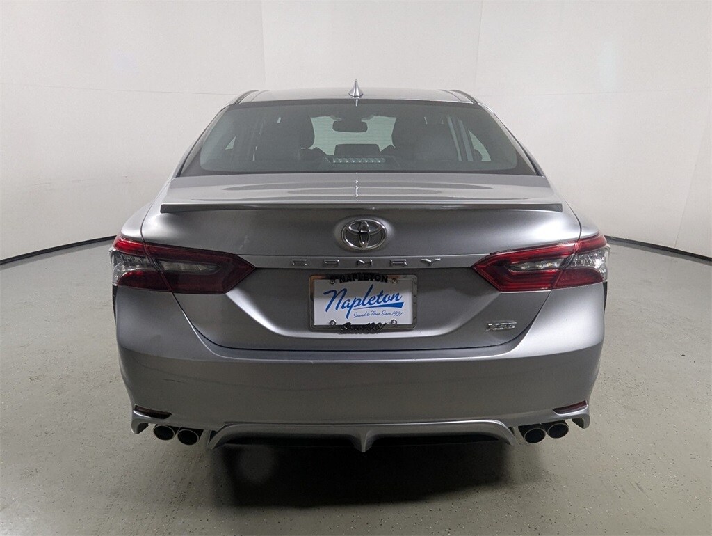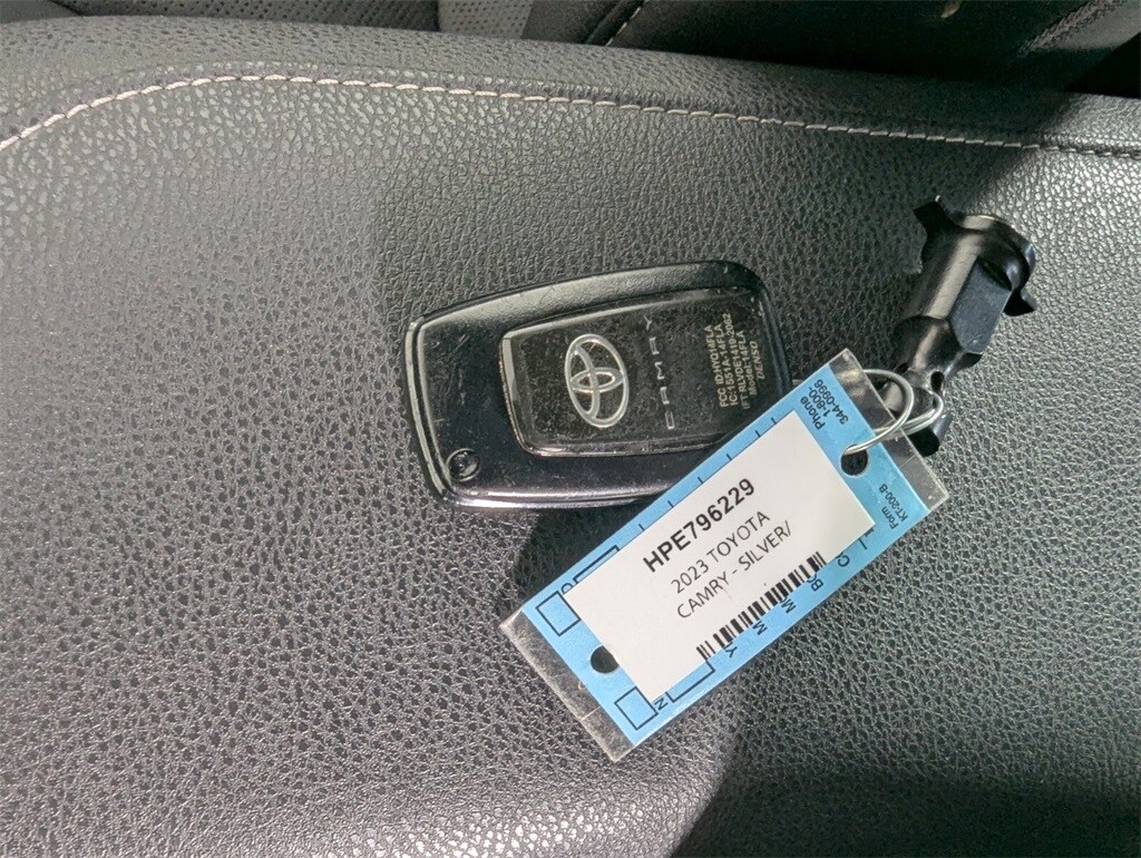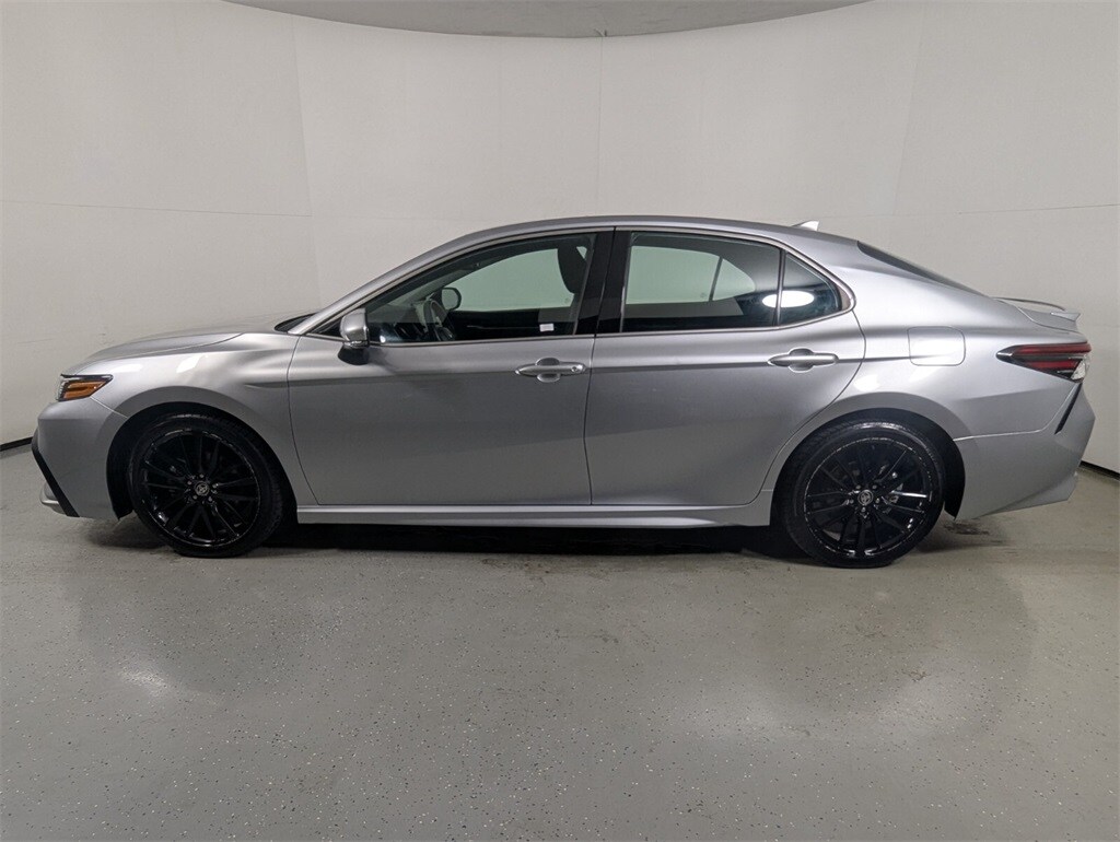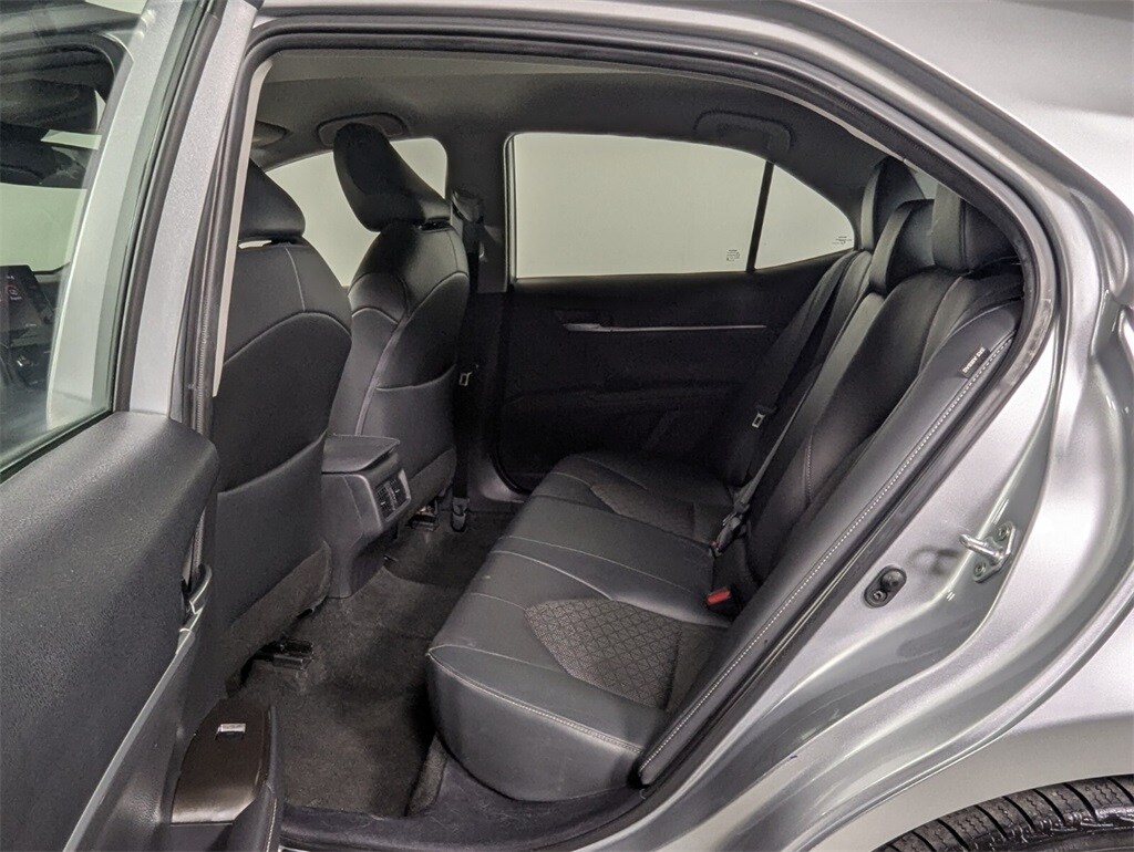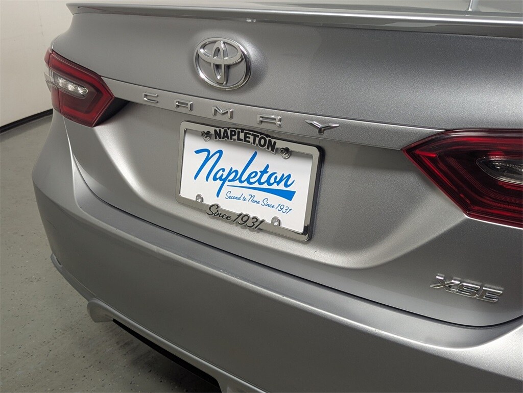 Features: Camry XSE, 4D Sedan, 2.5L I4 DOHC 16V, 8-Speed Automatic, FWD, Celestial Silver Metallic, Black w/Perforated Leather Seat Trim, 4-Wheel Disc Brakes, 6 Speakers, ABS brakes, Air Conditioning, Alloy wheels, AM/FM radio: SiriusXM, Apple CarPlay/Android Auto, Auto High-beam Headlights, Auto-dimming Rear-View mirror, Automatic temperature control, Brake assist, Bumpers: body-color, Delay-off headlights, Driver door bin, Driver vanity mirror, Dual front impact airbags, Dual front side impact airbags, Electronic Stability Control, Emergency communication system: Safety Connect (1-year trial), Exterior Parking Camera Rear, Four wheel independent suspension, Front anti-roll bar, Front Bucket Seats, Front Center Armrest, Front dual zone A/C, Front reading lights, Fully automatic headlights, Garage door transmitter: HomeLink, Heated door mirrors, Heated front seats, Illuminated entry, Knee airbag, Leather steering wheel, Low tire pressure warning, Multi-Stage Heated Front Bucket Seats, Occupant sensing airbag, Outside temperature display, Overhead airbag, Overhead console, Panic alarm, Passenger door bin, Passenger vanity mirror, Perforated Leather Seat Trim, Power door mirrors, Power driver seat, Power passenger seat, Power steering, Power windows, Radio data system, Radio: Audio Plus, Rear anti-roll bar, Rear reading lights, Rear seat center armrest, Rear side impact airbag, Rear window defroster, Remote keyless entry, Security system, Speed control, Speed-sensing steering, Split folding rear seat, Spoiler, Steering wheel mounted audio controls, Tachometer, Telescoping steering wheel, Tilt steering wheel, Traction control, Trip computer, Turn signal indicator mirrors, Variably intermittent wipers, and Wheels: 8.0J x 19" Alloy.