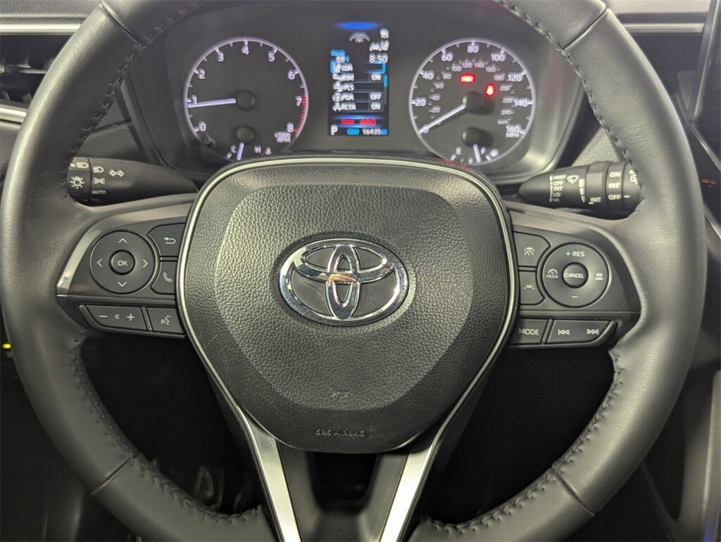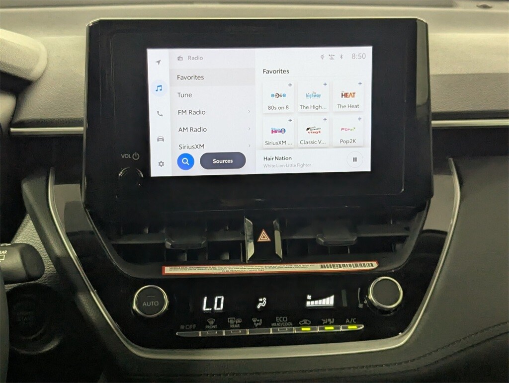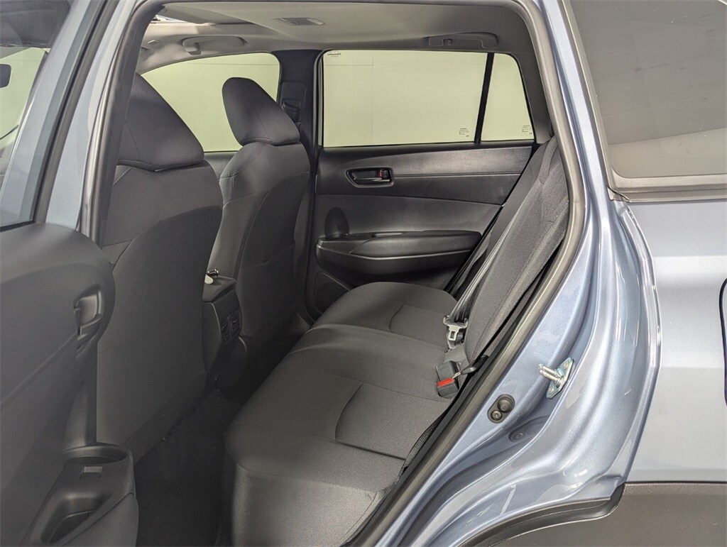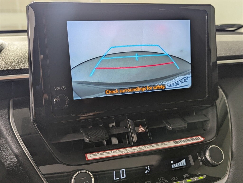 This Corolla Cross is well equipped with 17" Silver Alloy Wheels, 4-Wheel Disc Brakes, 4.014 Axle Ratio, 6 Speakers, ABS brakes, Air Conditioning, Alloy wheels, AM/FM radio: SiriusXM, Auto High-beam Headlights, Automatic temperature control, Brake assist, Bumpers: body-color, Delay-off headlights, Driver door bin, Driver vanity mirror, Dual front impact airbags, Dual front side impact airbags, Electronic Stability Control, Emergency communication system: Safety Connect (10-year trial), Exterior Parking Camera Rear, Fabric Seat Trim, Front anti-roll bar, Front Bucket Seats, Front Center Armrest, Front reading lights, Front wheel independent suspension, Fully automatic headlights, Heated door mirrors, Illuminated entry, Knee airbag, Leather steering wheel, Low tire pressure warning, Occupant sensing airbag, Outside temperature display, Overhead airbag, Panic alarm, Passenger door bin, Passenger vanity mirror, Power door mirrors, Power steering, Power windows, Radio data system, Radio: 8" Touch-Screen Display Audio, Rear anti-roll bar, Rear side impact airbag, Rear window defroster, Rear window wiper, Remote keyless entry, Speed control, Split folding rear seat, Spoiler, Steering wheel mounted audio controls, Tachometer, Telescoping steering wheel, Tilt steering wheel, Traction control, Trip computer, Turn signal indicator mirrors, and Variably intermittent wipers.
